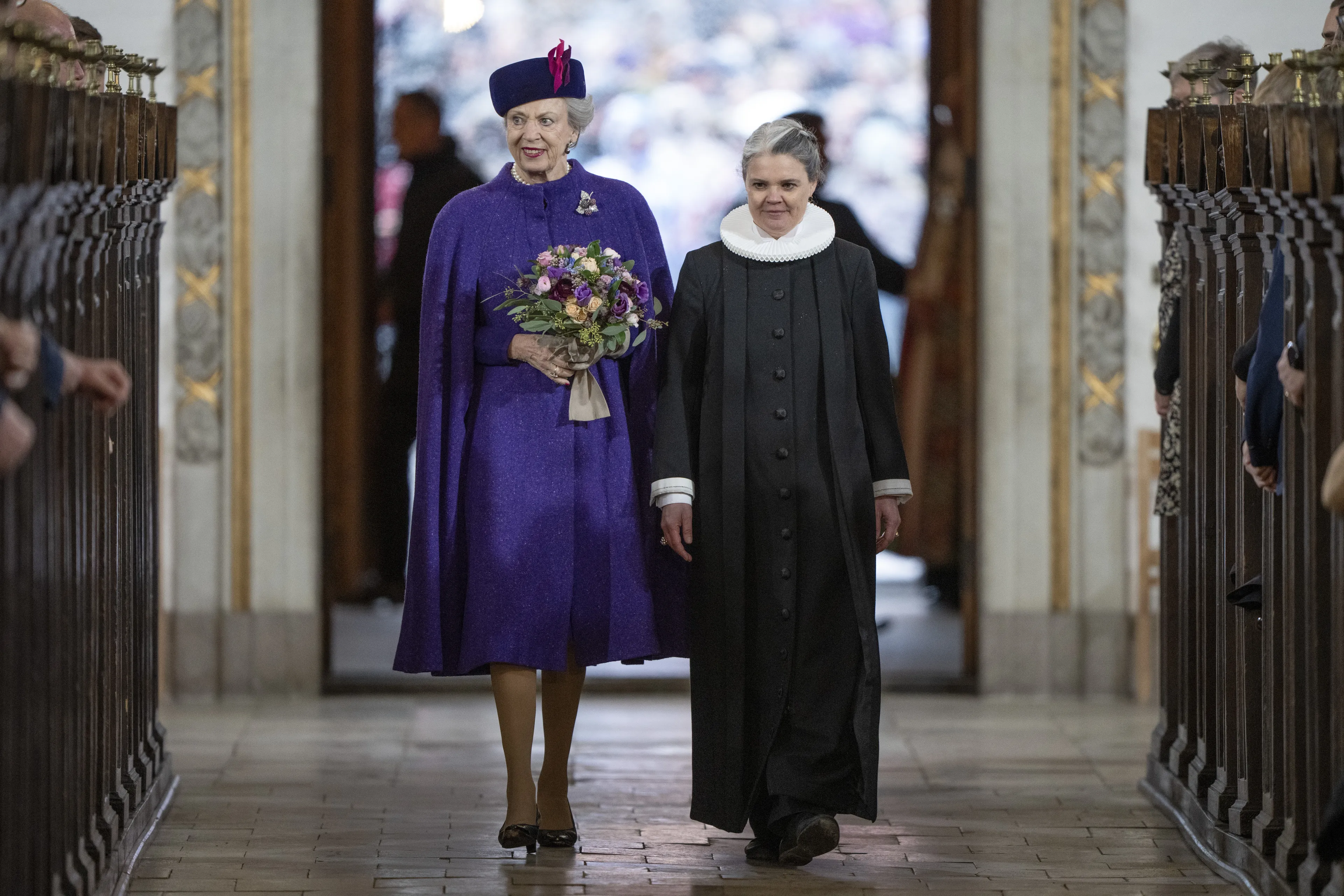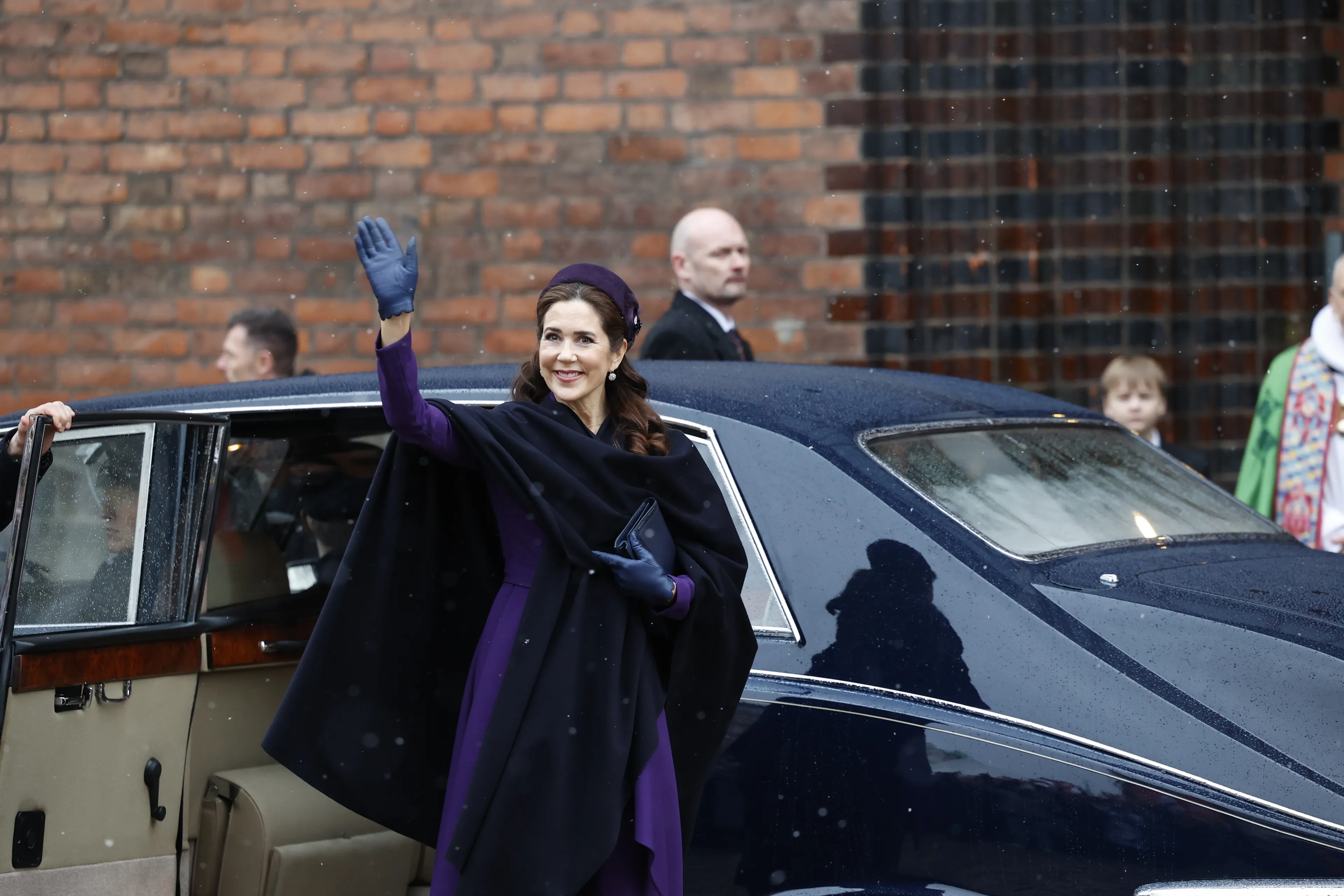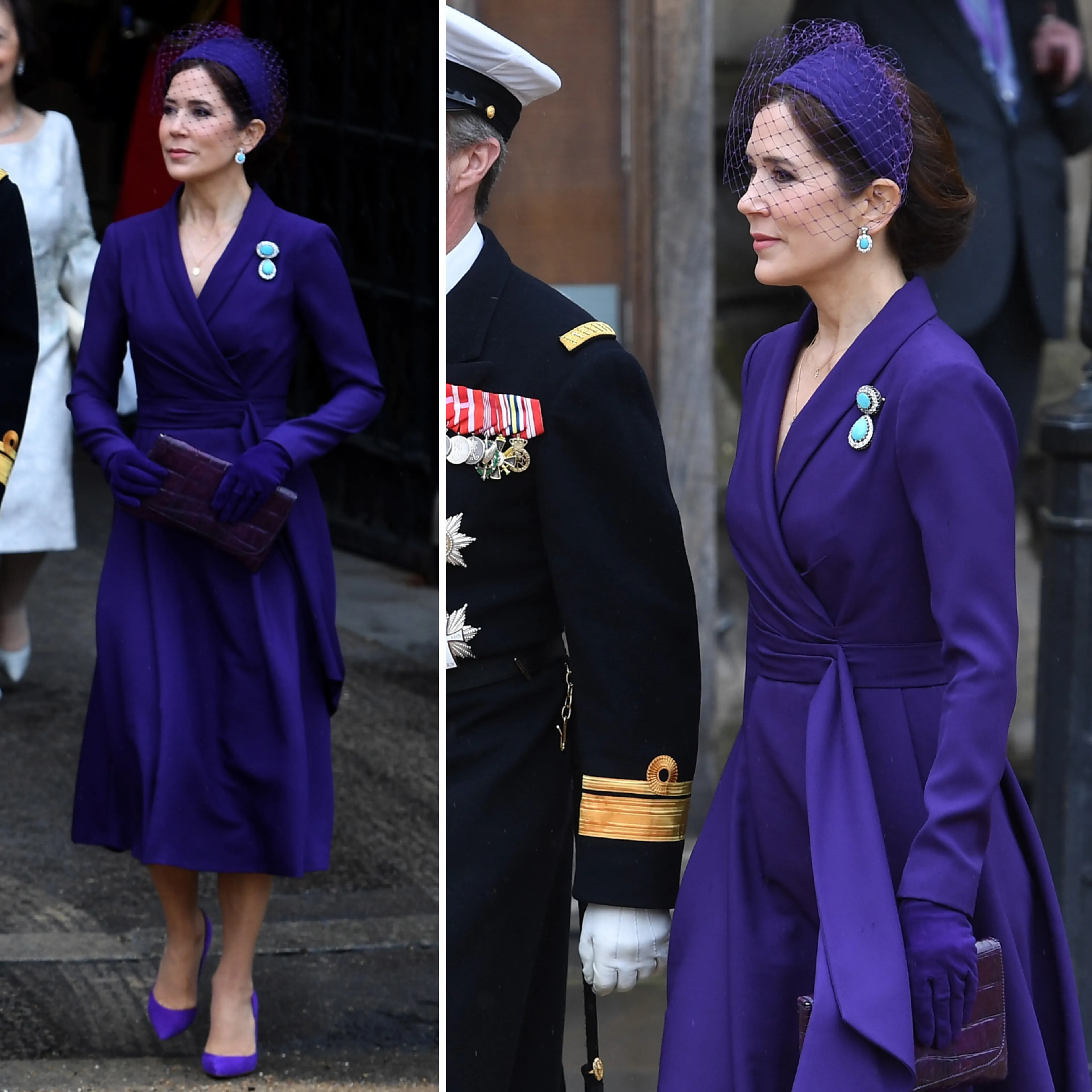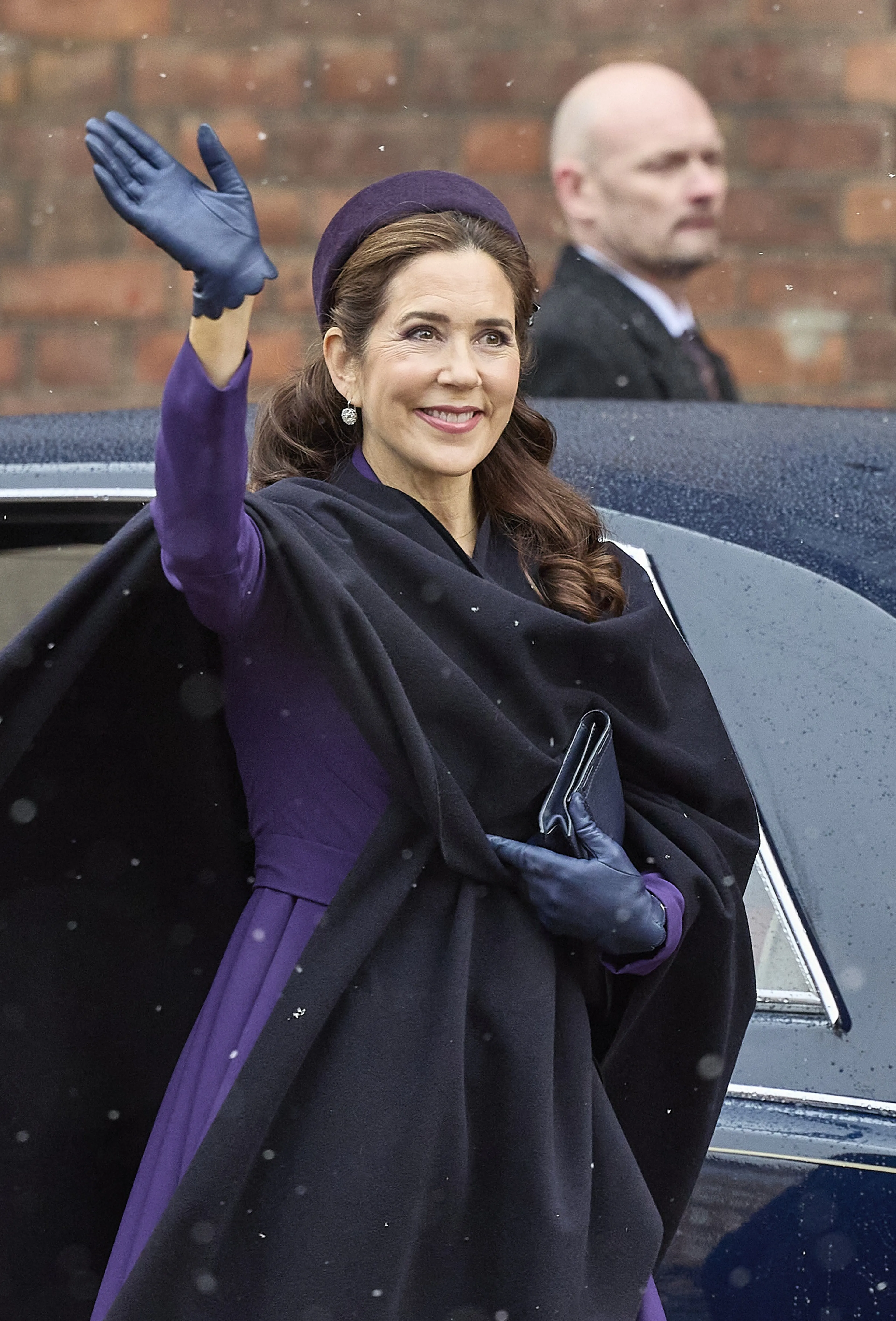 Voor de zondagse gelegenheid trok Mary een paarse manteljurk van Soeren Le Schmidt uit de kast. De kersverse koningin droeg het ontwerp eerder in mei 2023, tijdens de kroning van de Britse koning Charles.