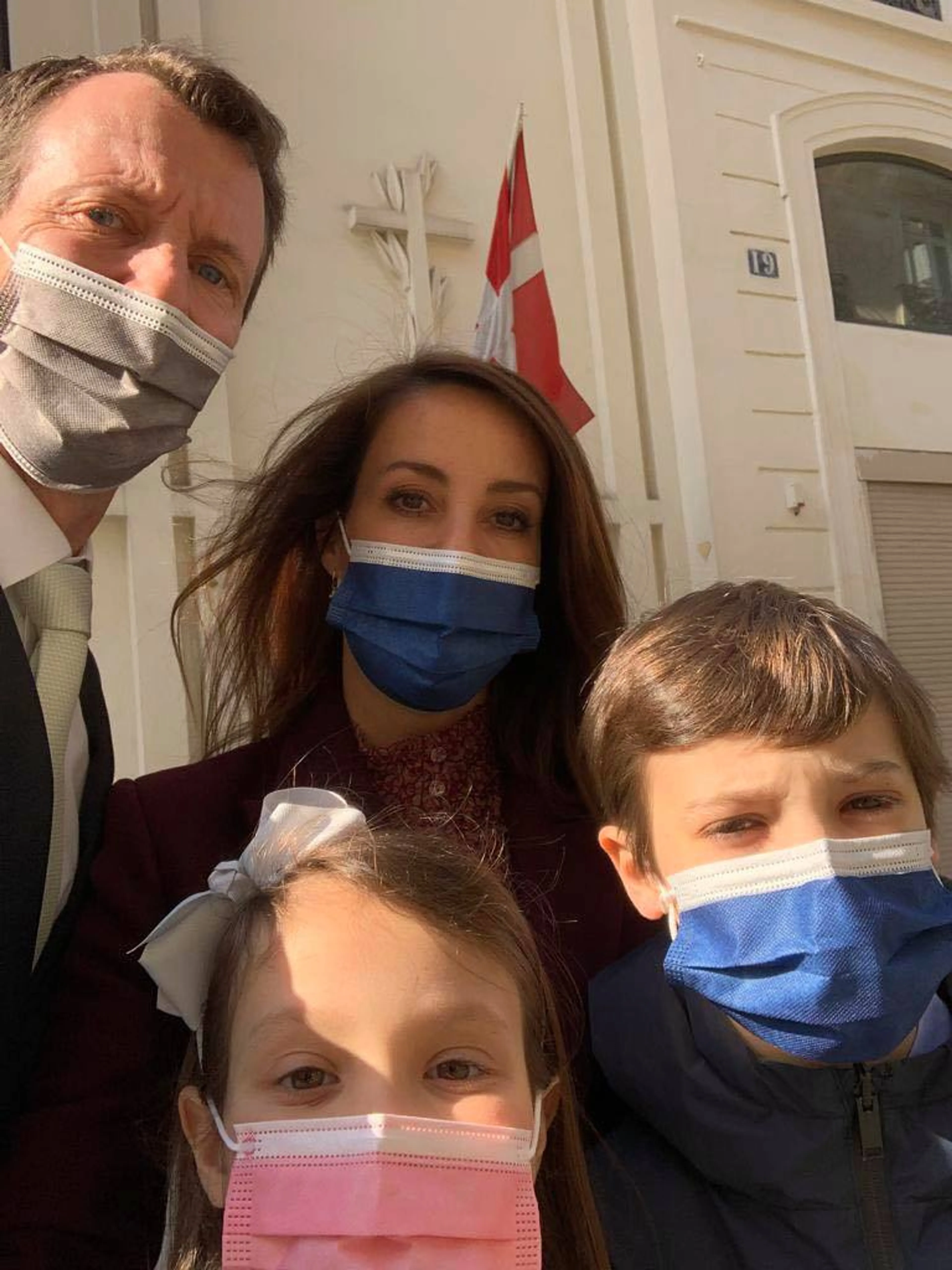 De zoon van koningin Margrethe prins Joachim ging met zijn vrouw prinses Marie en kinderen Henrik en Athena naar de kerk in Parijs. "Vrolijk Pasen hier vanuit Parijs, waar we vandaag naar de dienst zijn geweest in de Deense kerk Frederikskirken", schrijft Joachim bij de foto die het Deense hof deelde op Facebook.