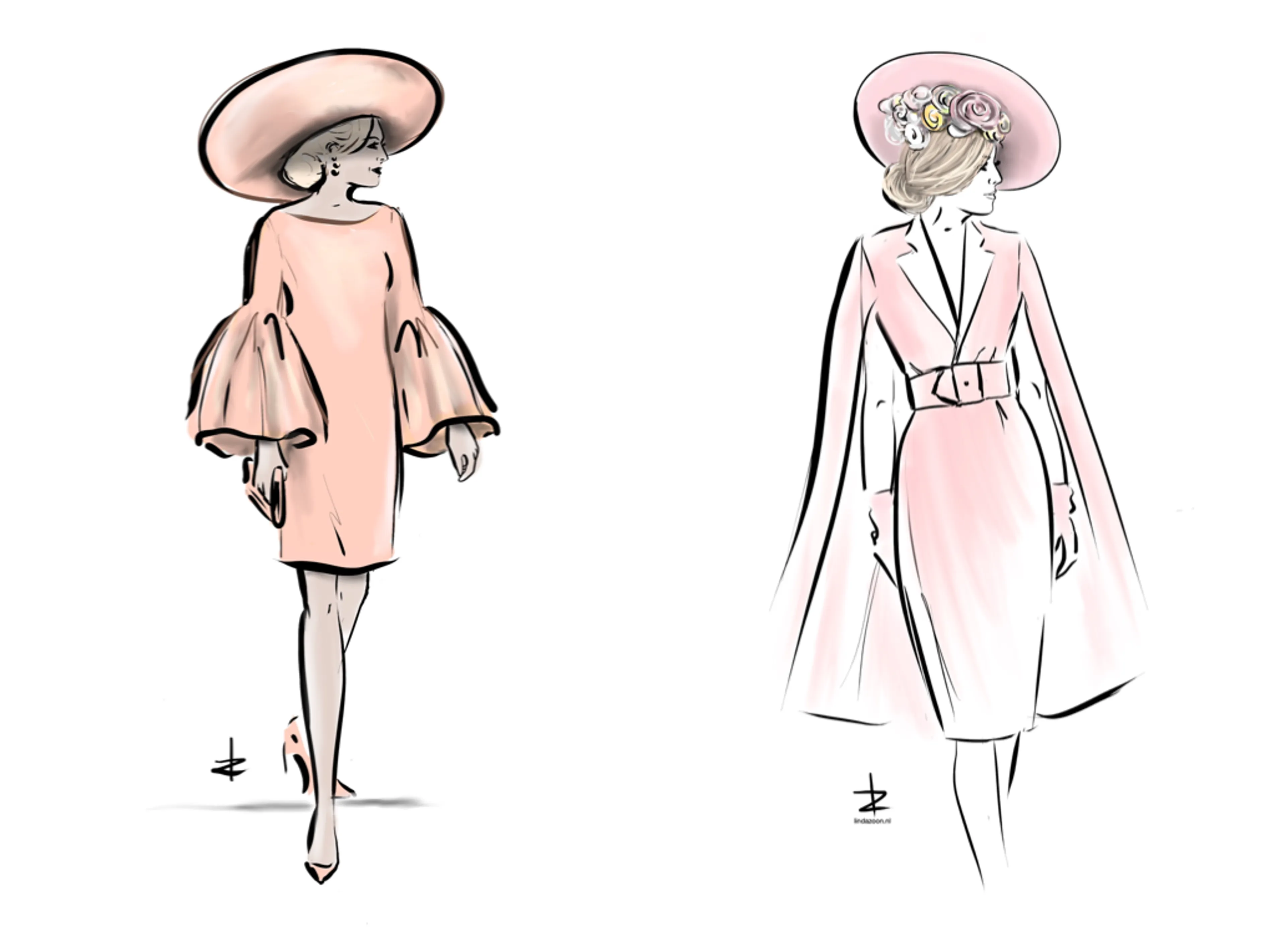 Linda vindt de ontwikkeling die Máxima heeft doorgemaakt in haar kledingkeuze fantastisch en is haar kleding daarom steeds vaker gaan tekenen. "Máxima heeft vaak hele herkenbare items aan, een van die items is een hoed", vertelde Linda ons in een eerder interview. "Ik teken dan in grote lijnen de hoed, daarna het haar eronder en dan de mooie cape of sjaal als ze die omheeft, dan heb je eigenlijk al bijna de hele outfit."