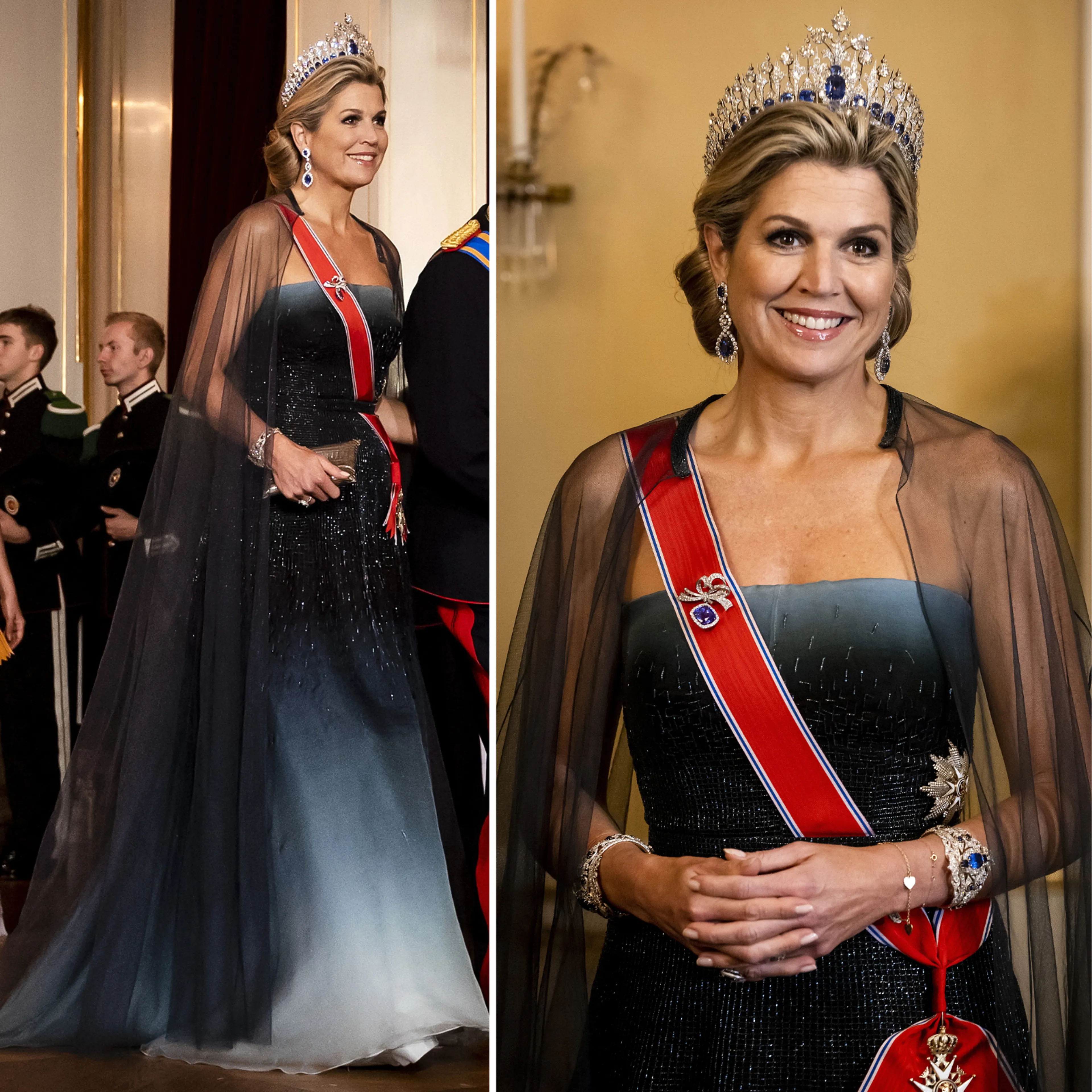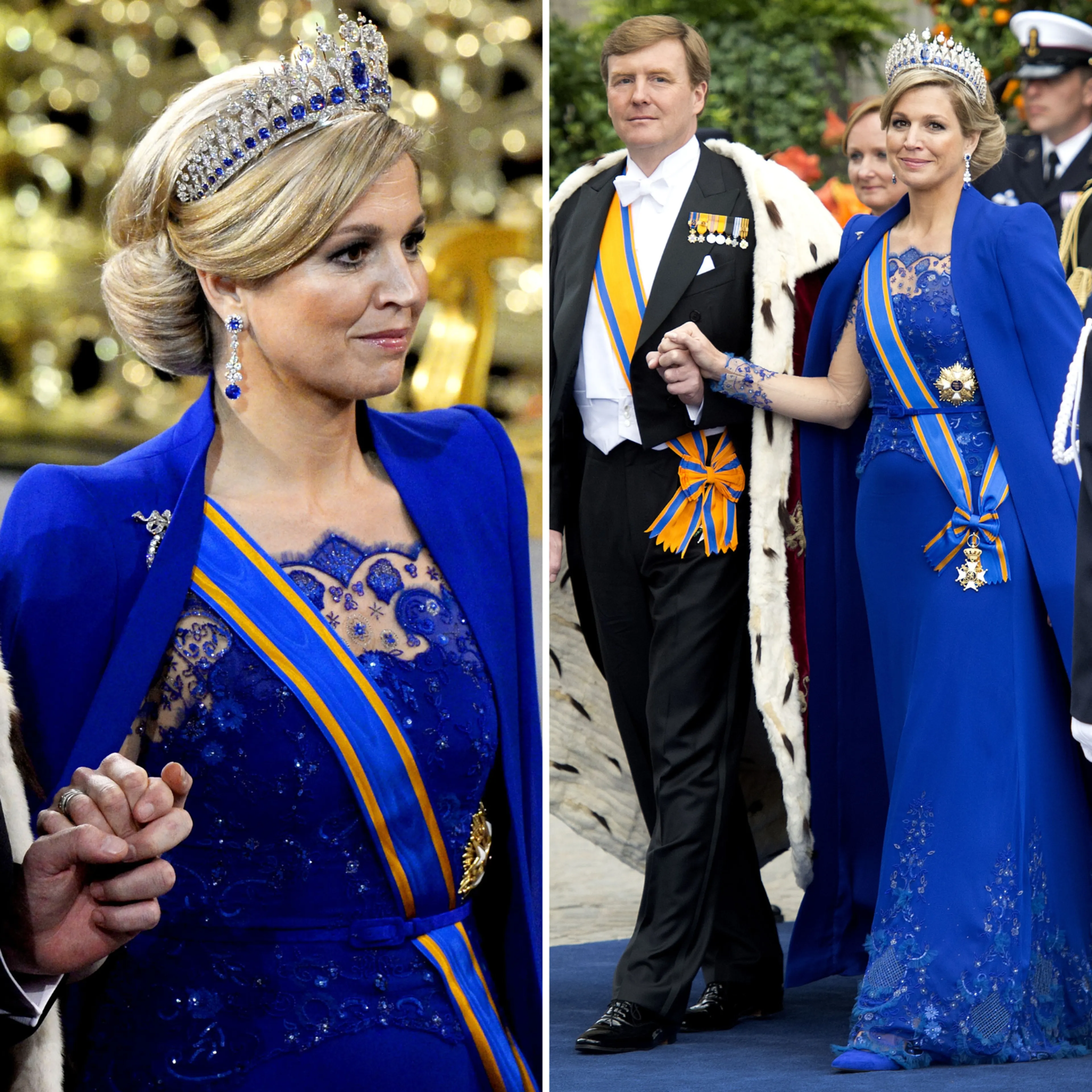 Deze koningsblauwe jurk en mantel vergeten we niet snel. Het geheel wordt speciaal ontworpen voor de inhuldiging van koning Willem-Alexander. In 2015 verschijnt de japon, tegen alle verwachtingen in, opnieuw in het openbaar. Koningin Máxima draagt het kledingstuk tijdens een staatsbezoek aan Denemarken.