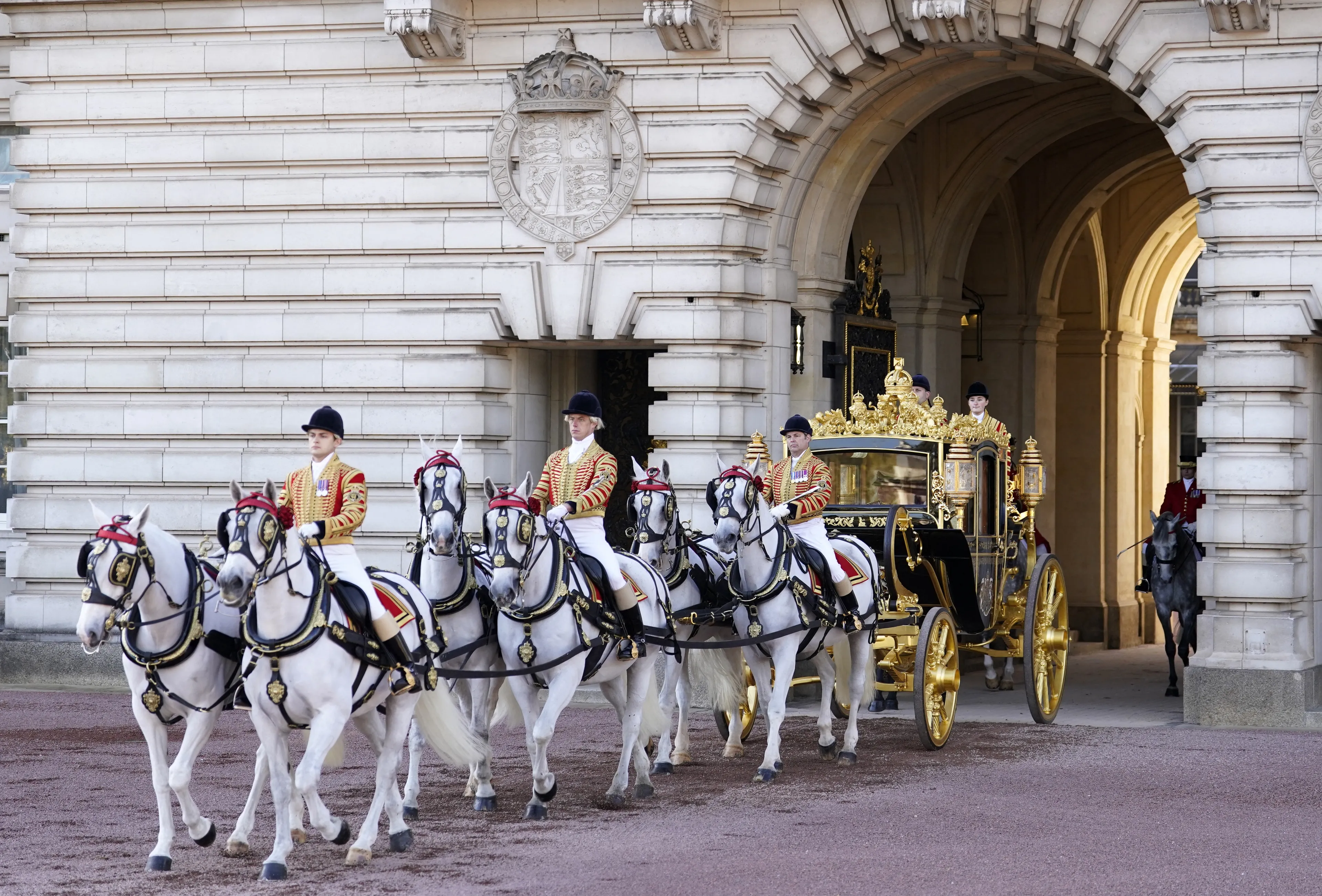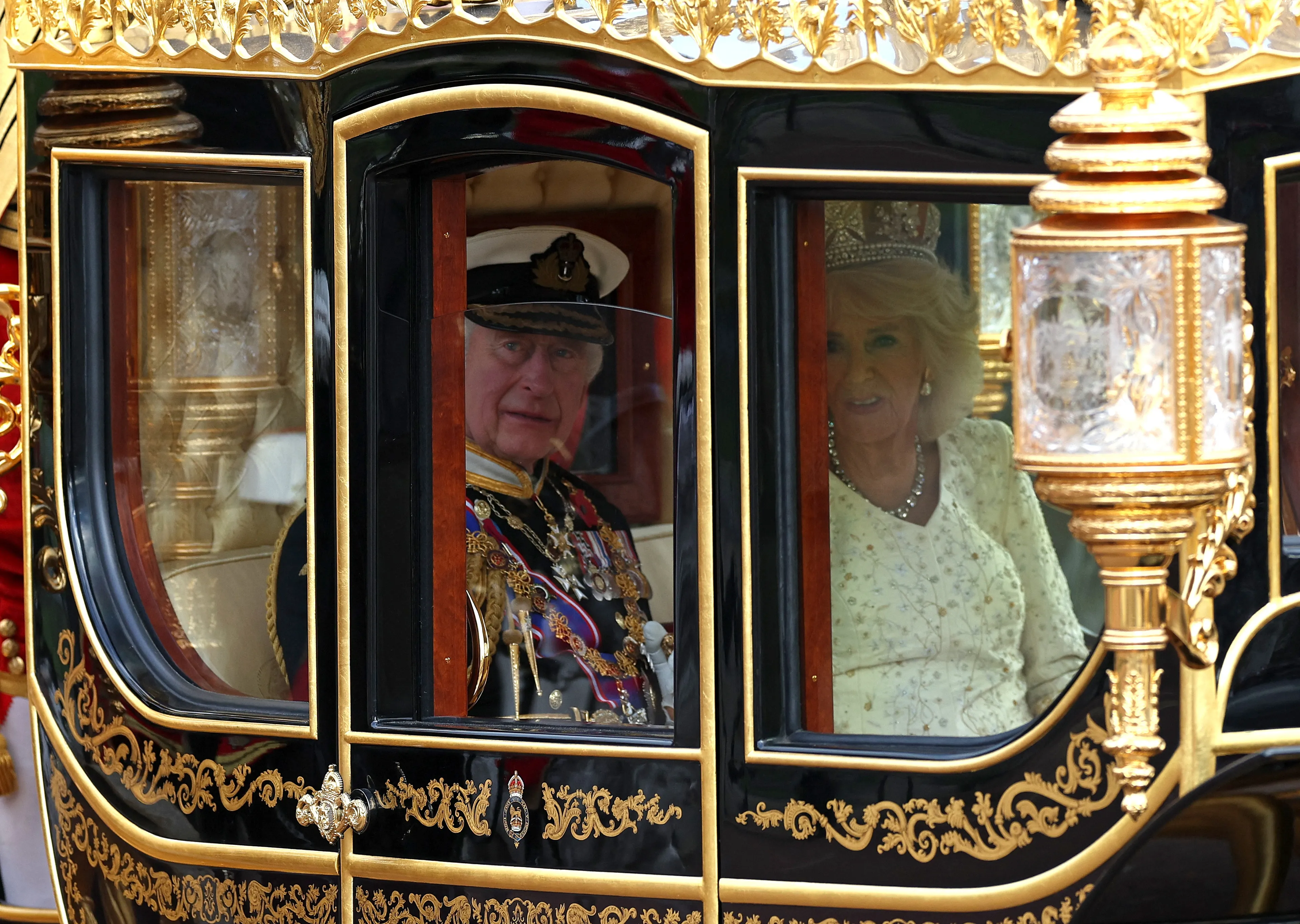 Het is niet de eerste keer dat koning Charles in zijn regeerperiode de Diamond Jubilee State-koets gebruikt. Hij reed ook in het rijtuig toen hij samen met koningin Camilla op weg was naar Westminster Abbey voor hun kroning.