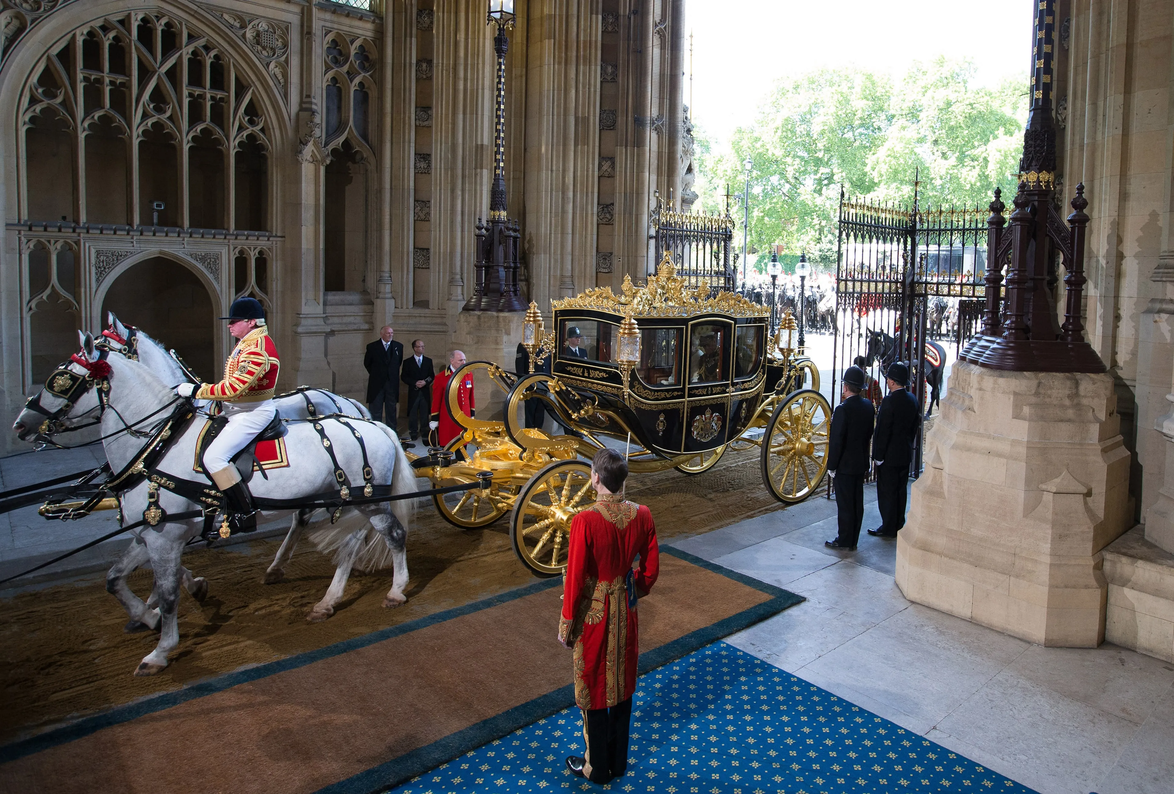 Van binnen bevat de koets allemaal referenties naar de geschiedenis van het Verenigd Koninkrijk. Zo is er een 200 jaar oude kogel van de Slag bij Waterloo te vinden en is veel van het hout afkomstig van belangrijke gebouwen, zoals 10 Downing Street (de woning van de Britse premier), Caernarfon Castle in Wales, de kathedralen van Durham en Canterbury en Scott's Hut op Antarctica.