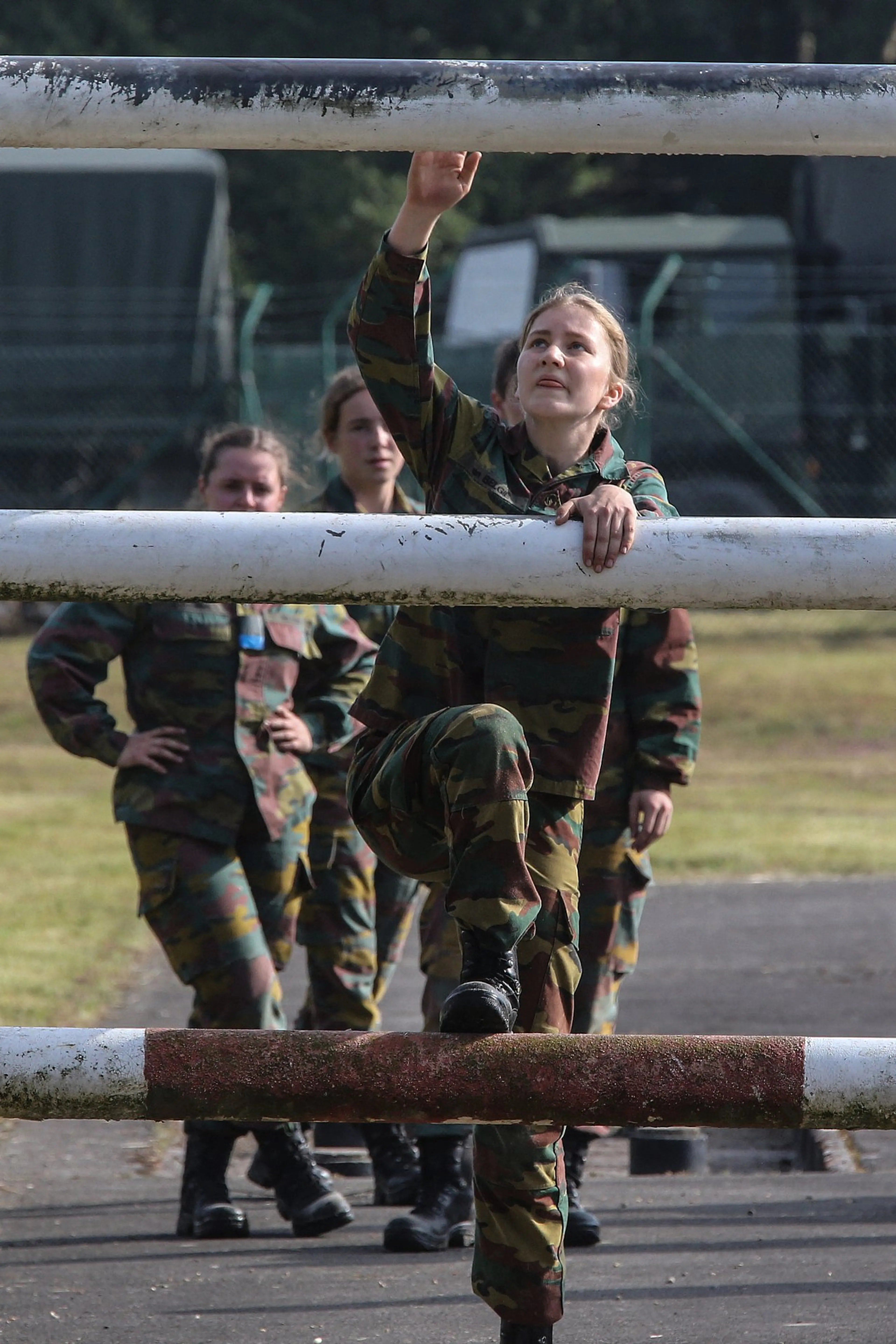 De Belgische prinses Elisabeth heeft voorlopig nog geen vakantie. De 19-jarige troonopvolgster neemt tot het einde van de maand deel aan een zomerkamp van de Koninklijke Militaire School, waar ze een jaar een opleiding volgt. De pers mocht haar vrijdagochtend volgen tijdens onder meer een hindernisparcours.