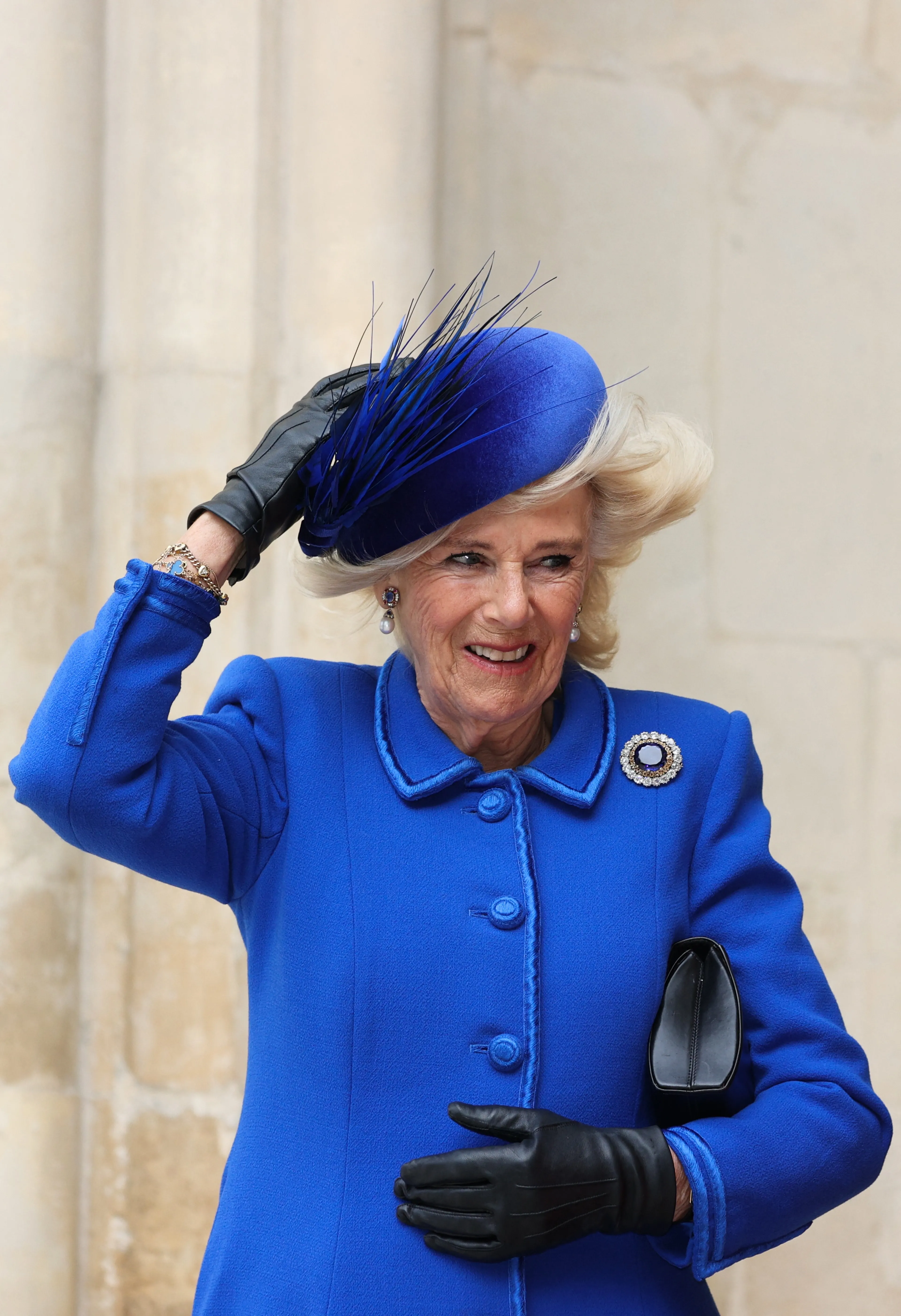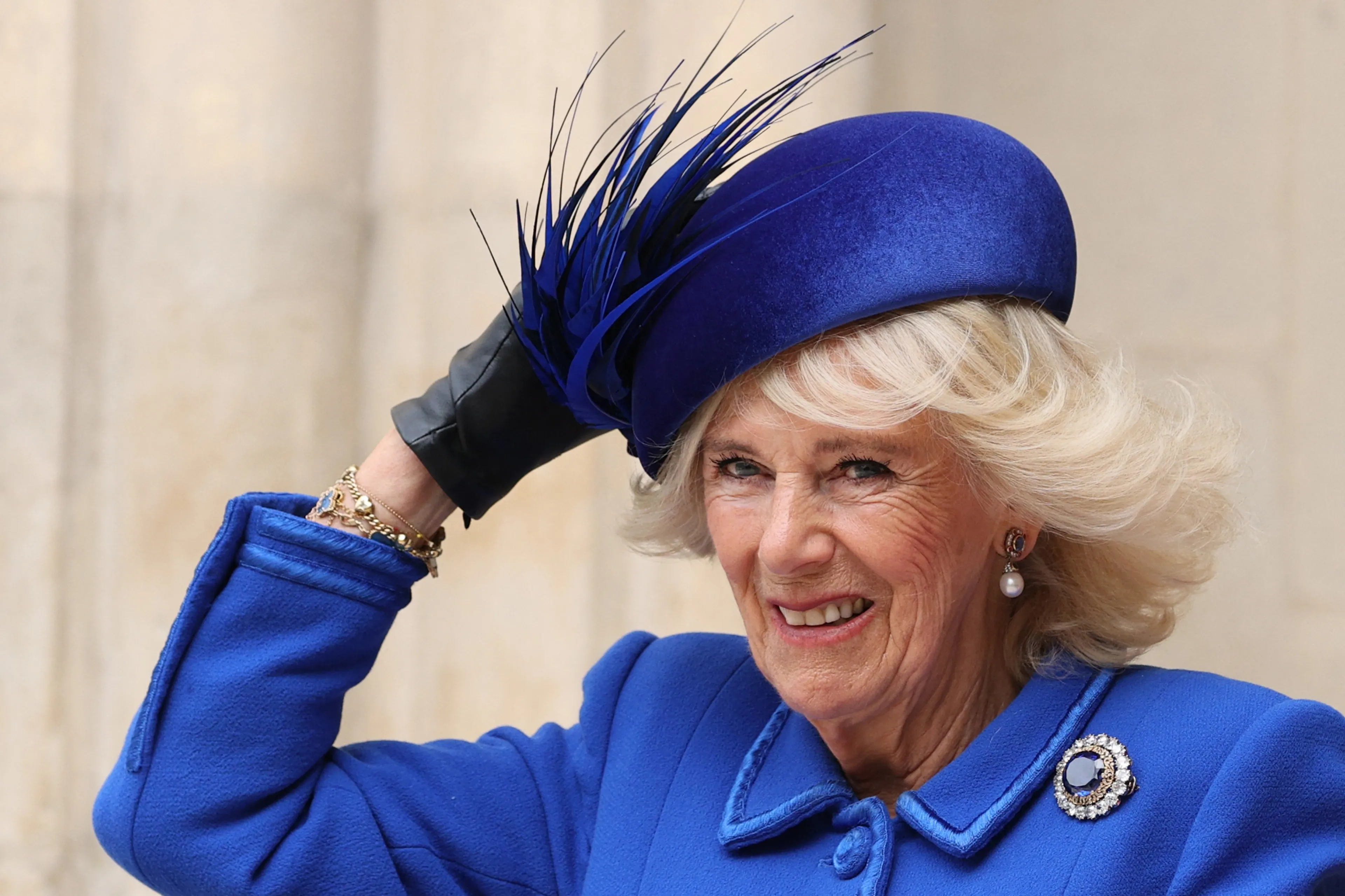 In Groot-Britannië was het gisteren ook stormachtig weer. Dit leverden grappige beelden op van koningin-gemalin Camilla en de prinses van Wales die met moeite hun hoed vast hielden.