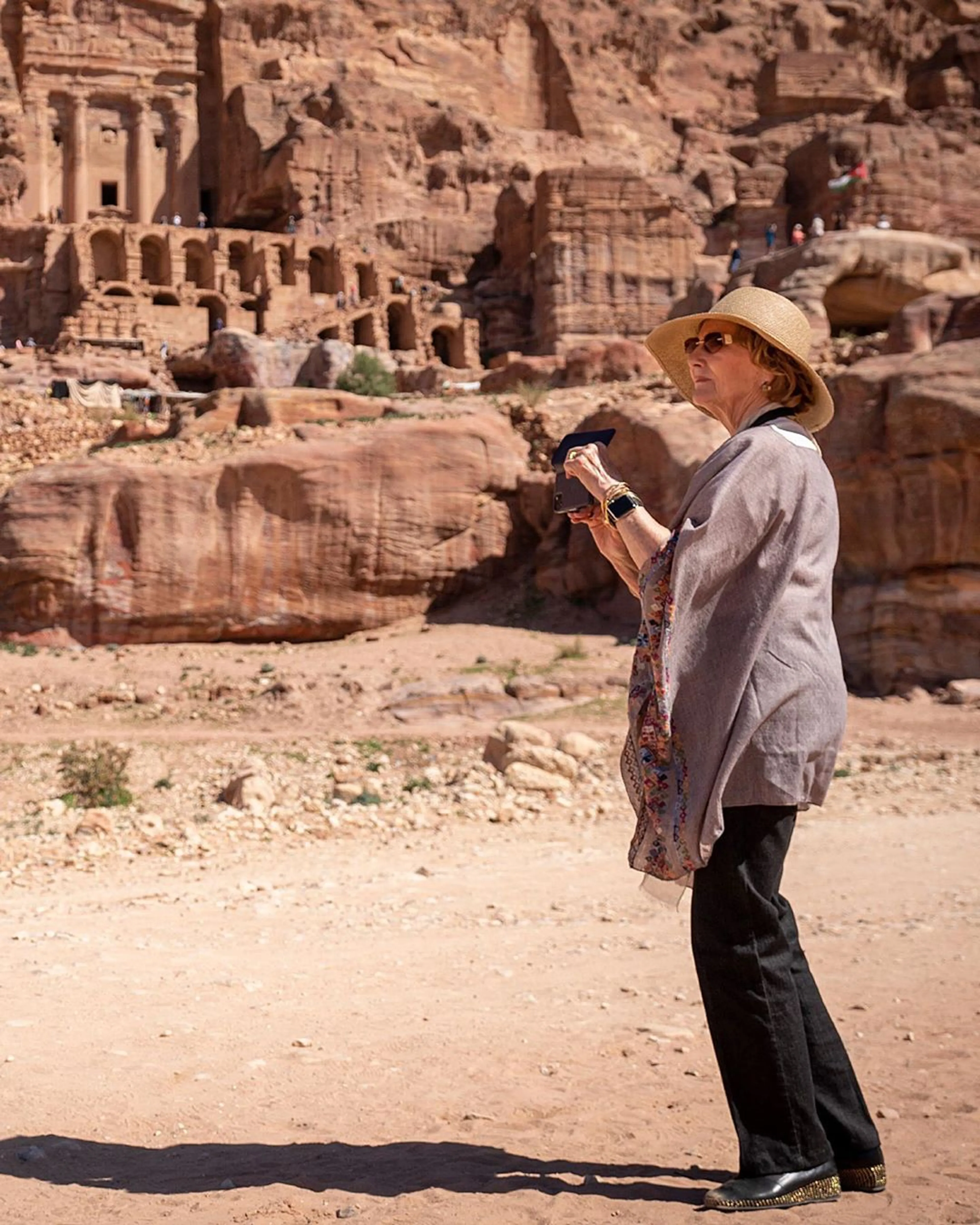 Als je naar zo’n mooi land als Jordanië gaat, levert dat eigenlijk automatisch al mooie beelden op. Het Noorse hof plaatste op Instagram verschillende foto’s van het koningspaar in de historische stad Petra (waarbij de koning zich met petje en zonnebril probeerde te beschermen tegen de felle zon). En koningin Sonja? Die liet de kans niet voorbijgaan een aantal mooie plaatjes te schieten met haar fototoestel.
