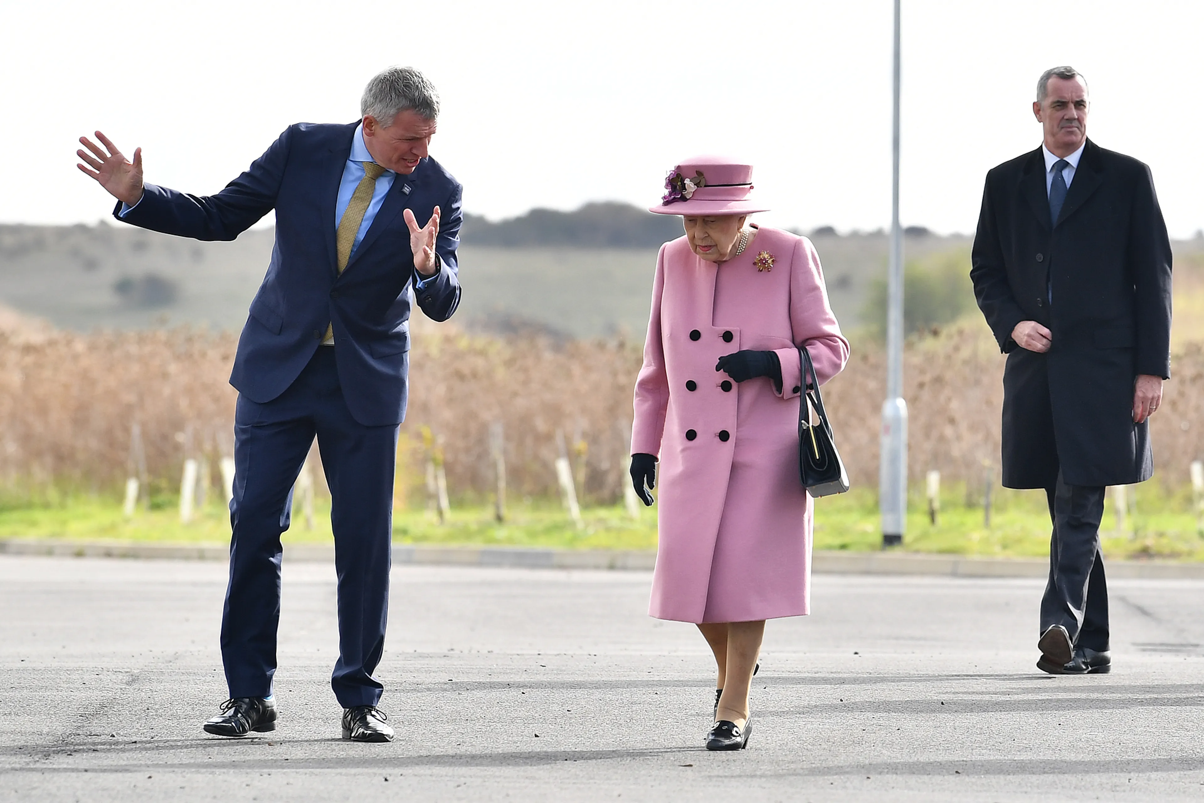Tot dusver voerde de 94-jarige koningin vanwege de coronamaatregelen al haar officiële werkzaamheden uit vanachter de computer en telefoon. Haar kleinzoon prins William vergezelde haar bij haar eerste officiële bezoek buiten het paleis aan Porton Down, gelegen in het zuidwesten van Engeland. De koningin en William droegen geen mondkapjes.