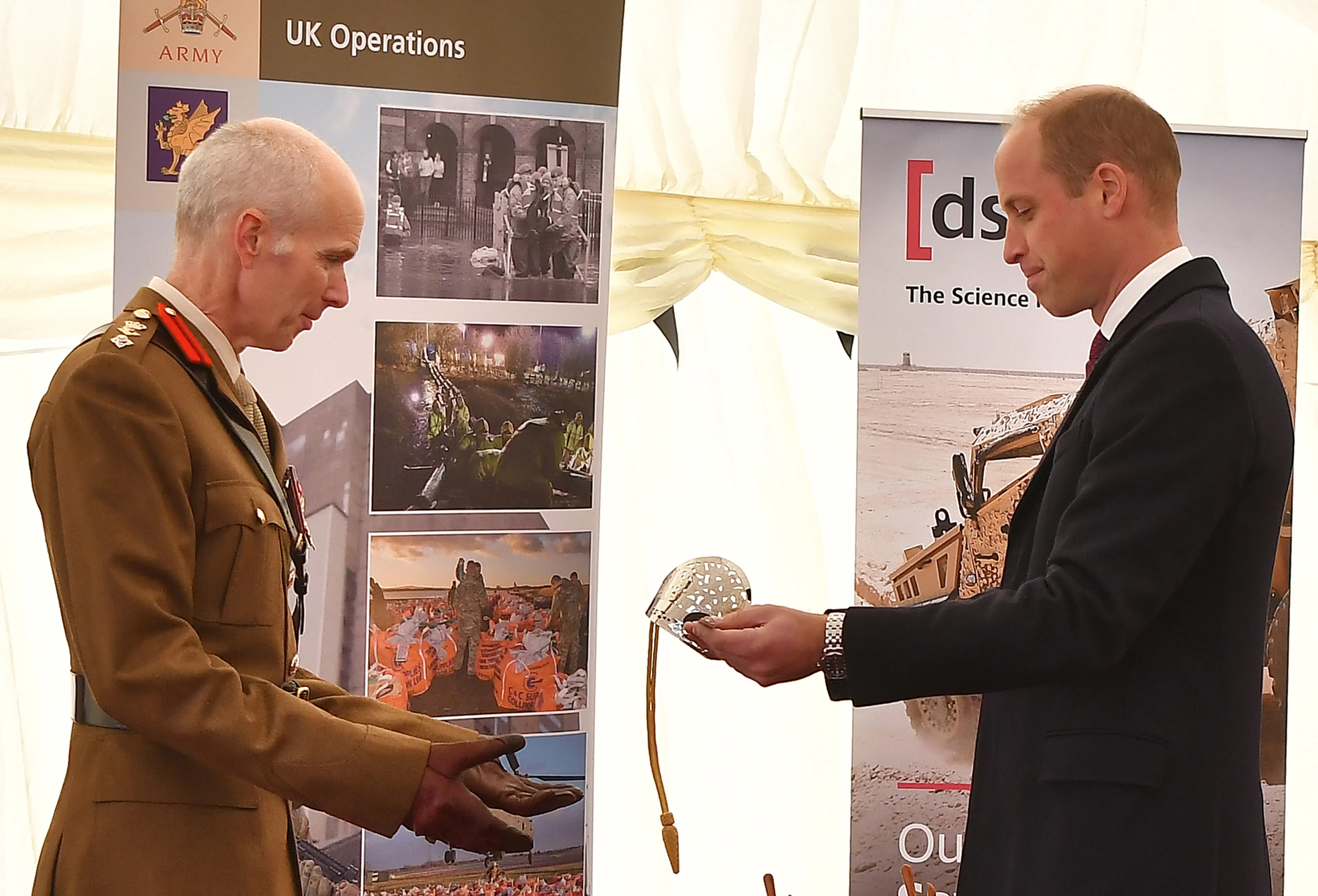Aan het einde van het bezoek presenteerde William het Firmin Sword of Peace aan vertegenwoordigers van de 102 Logistic Brigade: leden van het leger die direct betrokken waren bij het onderzoek naar het zenuwgas novitsjok.