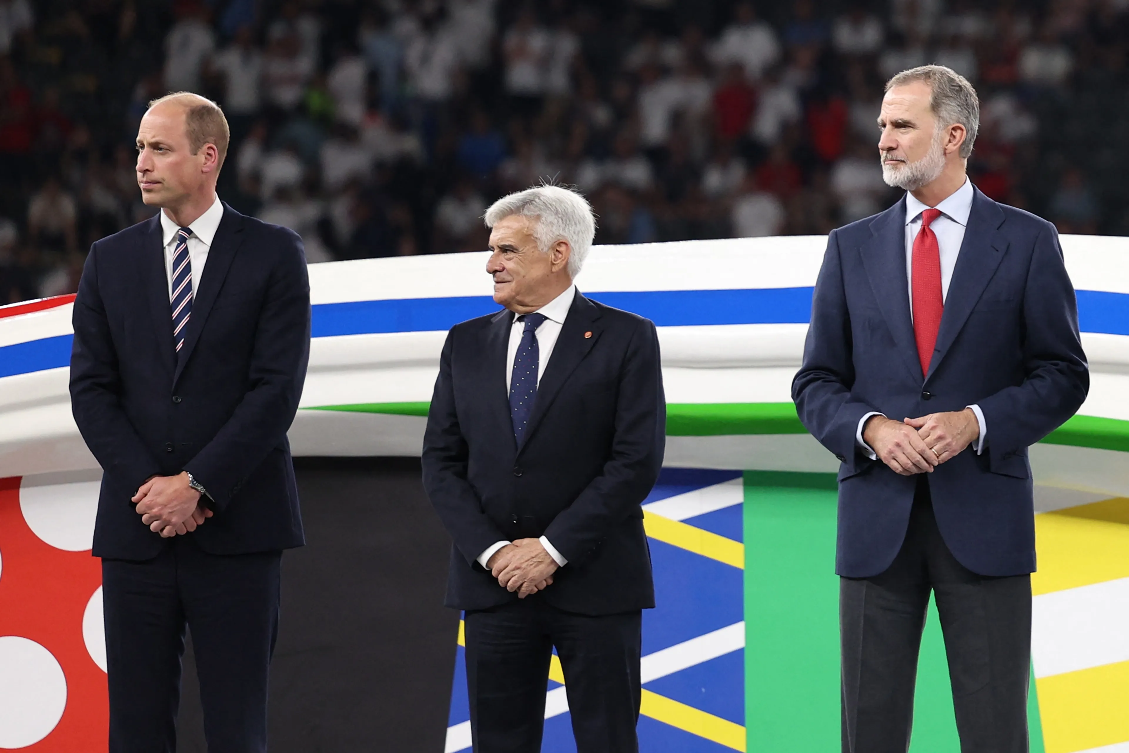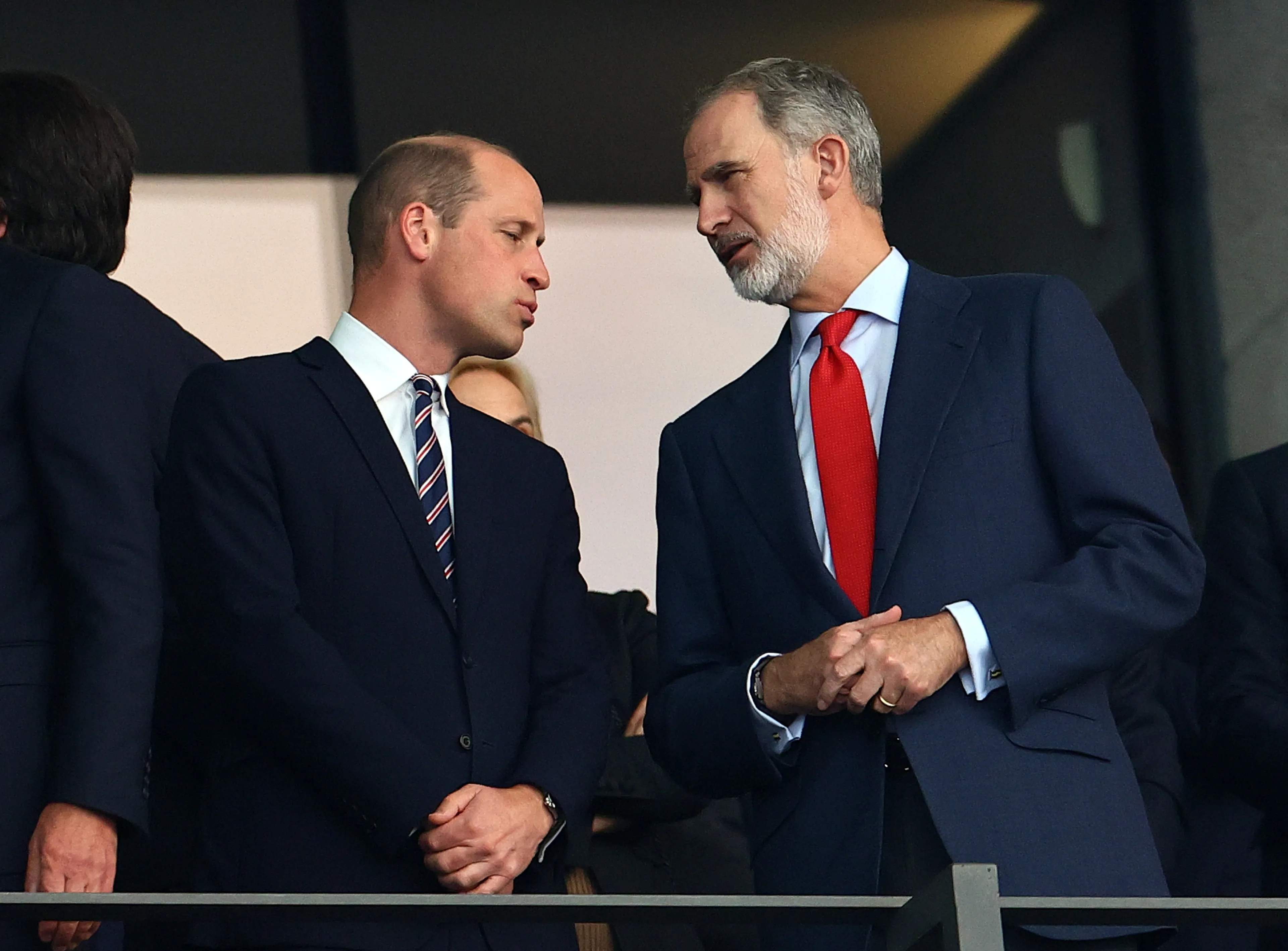 De koning van Spanje en de prins van Wales ontmoetten elkaar gisteravond in het Olympiastadion in Berlijn, waar ze elkaar ongetwijfeld een prettige wedstrijd zullen hebben gewenst. Het was een warm weerzien en de twee begroetten elkaar met een omhelzing.