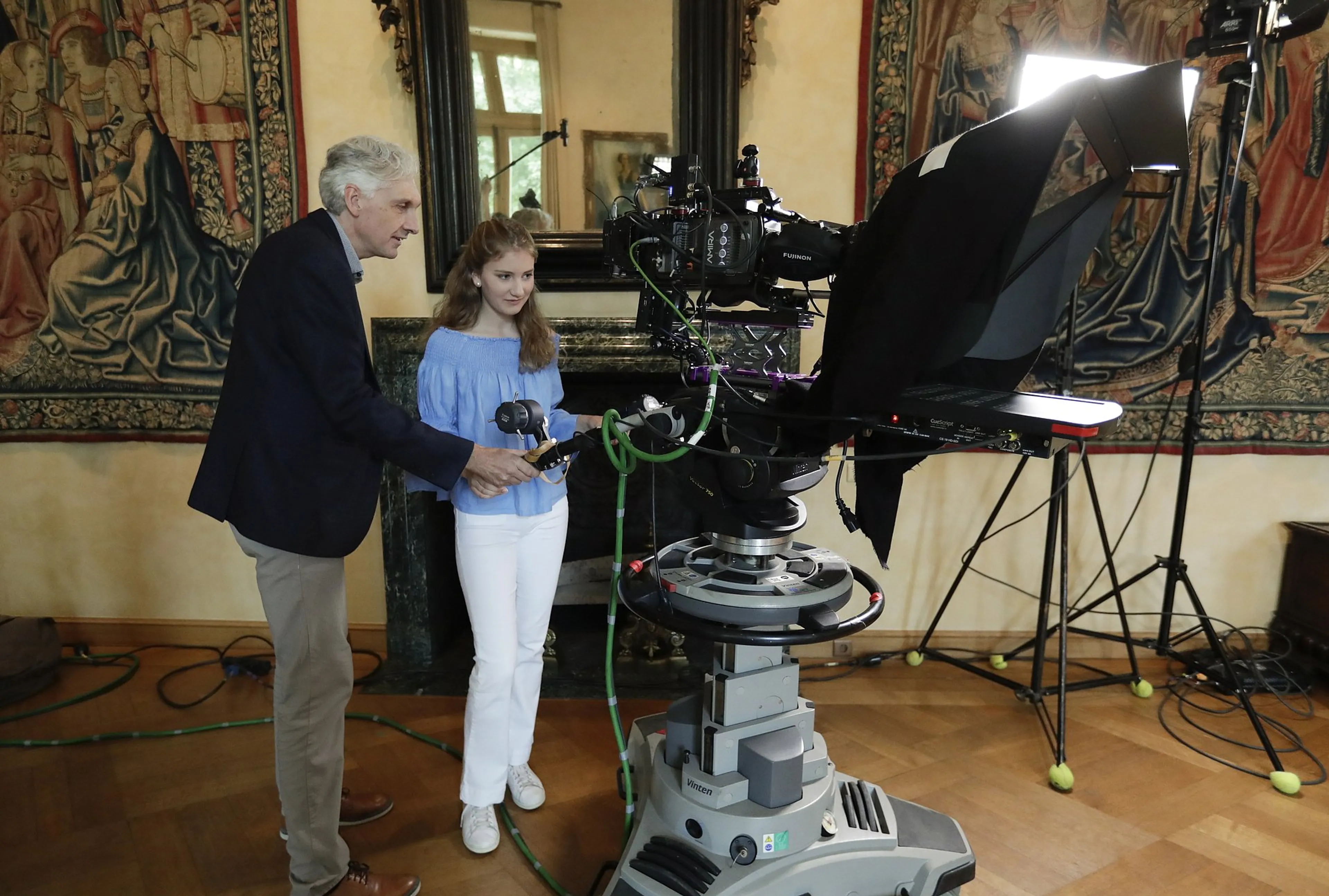 Prinses Elisabeth van België heeft de opnames van de tv-toespraak van haar vader koning Filip bijgewoond. Ze mocht zelfs achter de camera gaan staan en de autocue bedienen, blijkt uit journaalbeelden van de VRT.