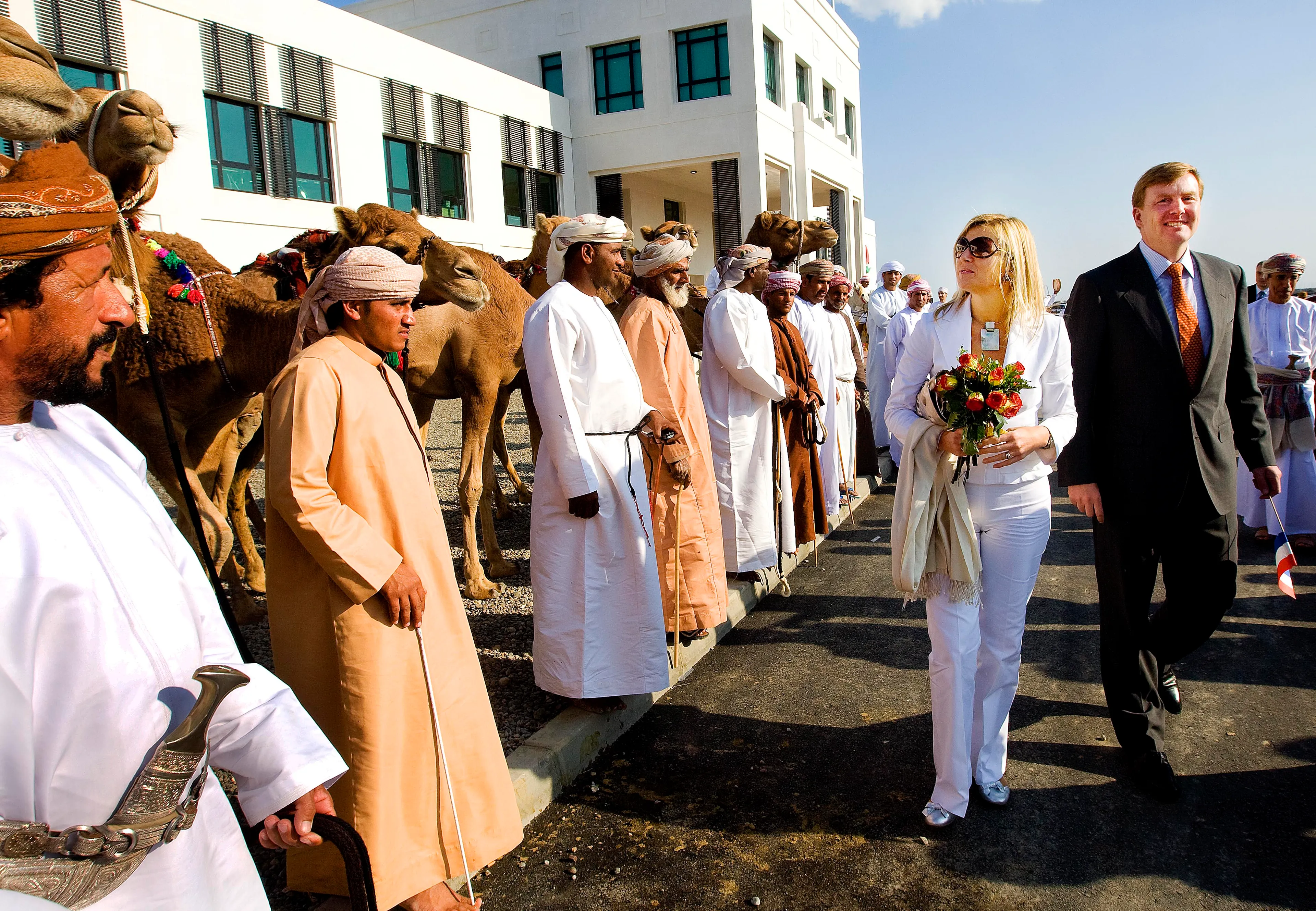 In 2009 zijn Willem-Alexander en Máxima in Oman. Wit is natuurlijk altijd een goede keuze bij warme temperaturen.