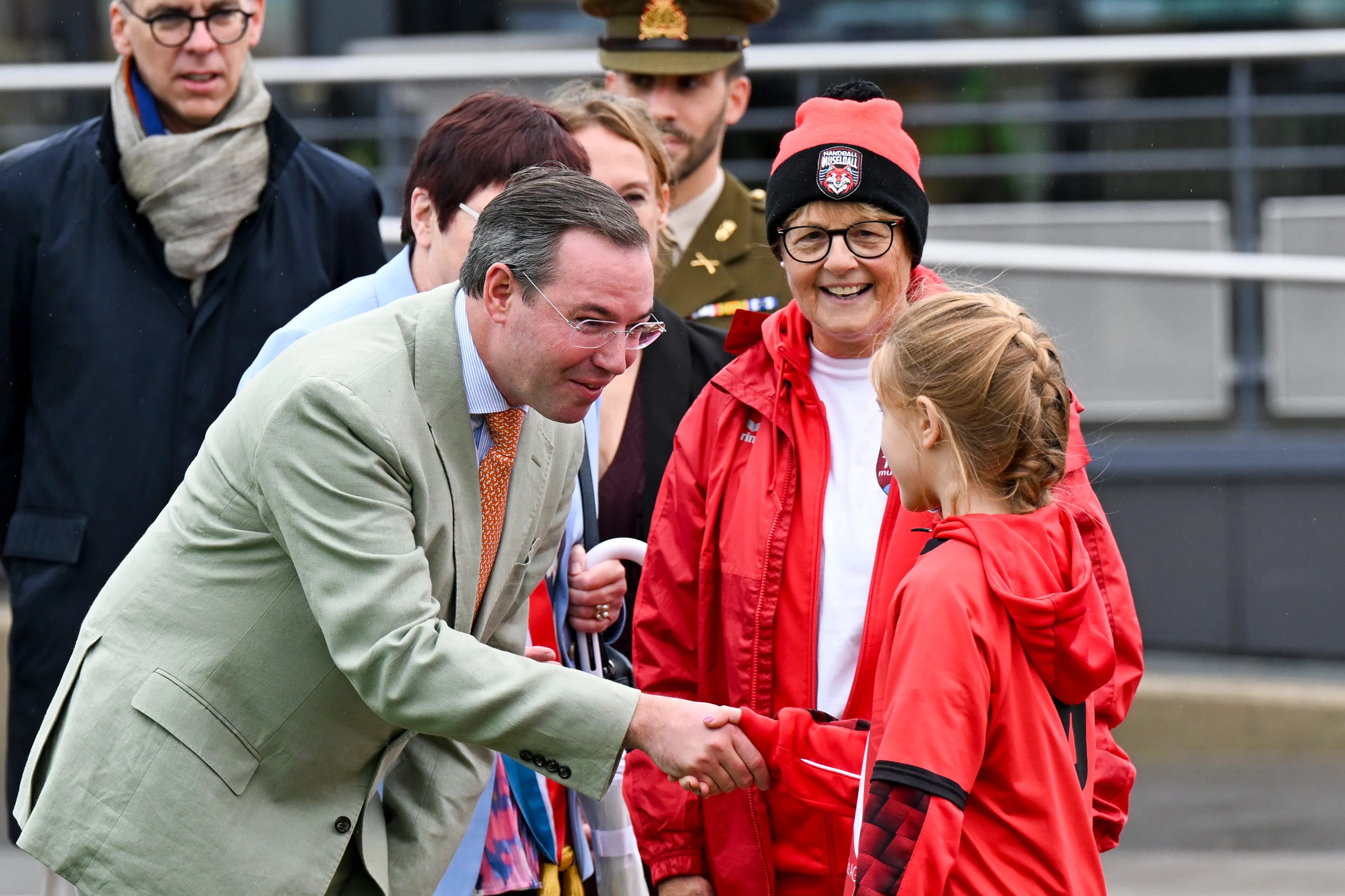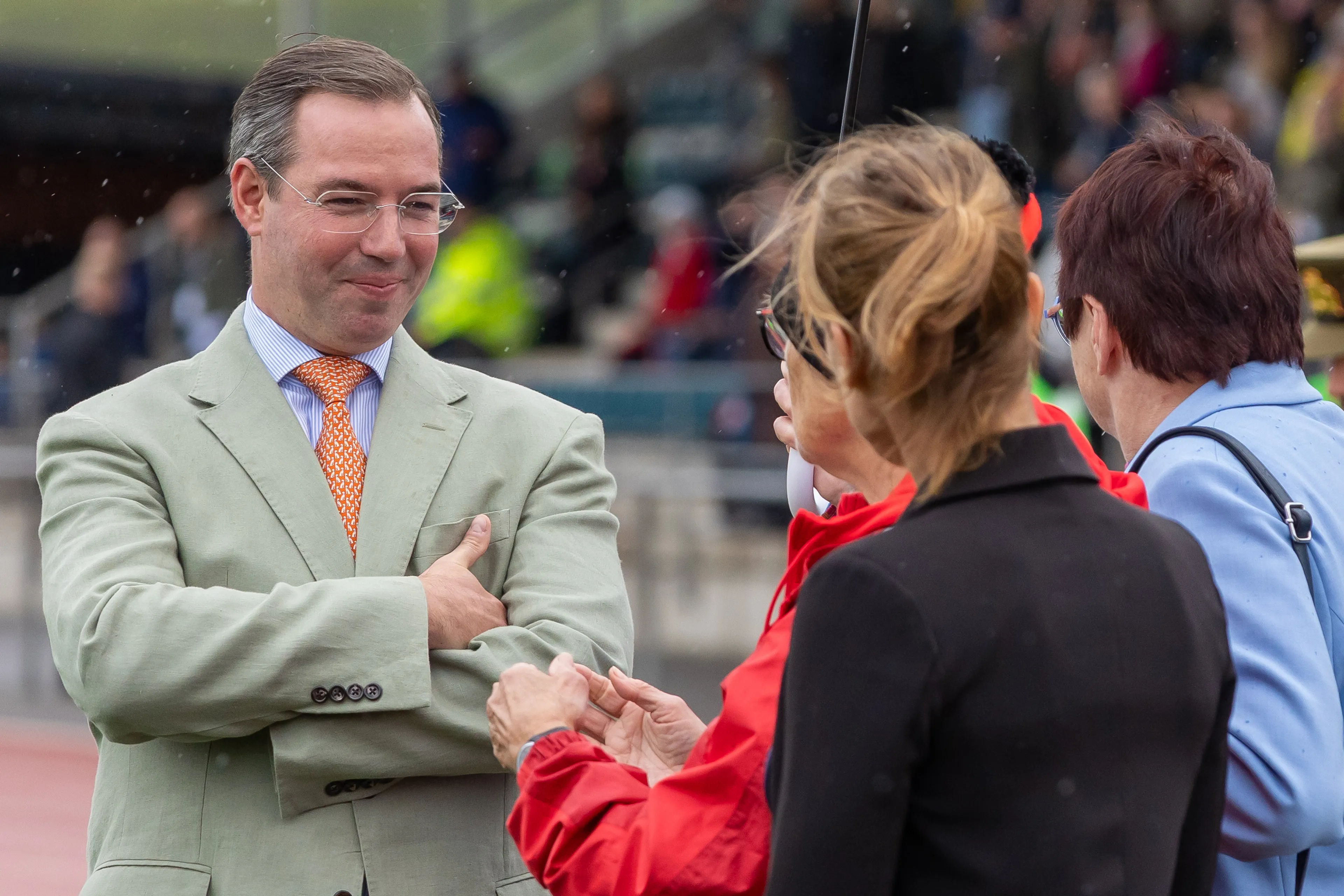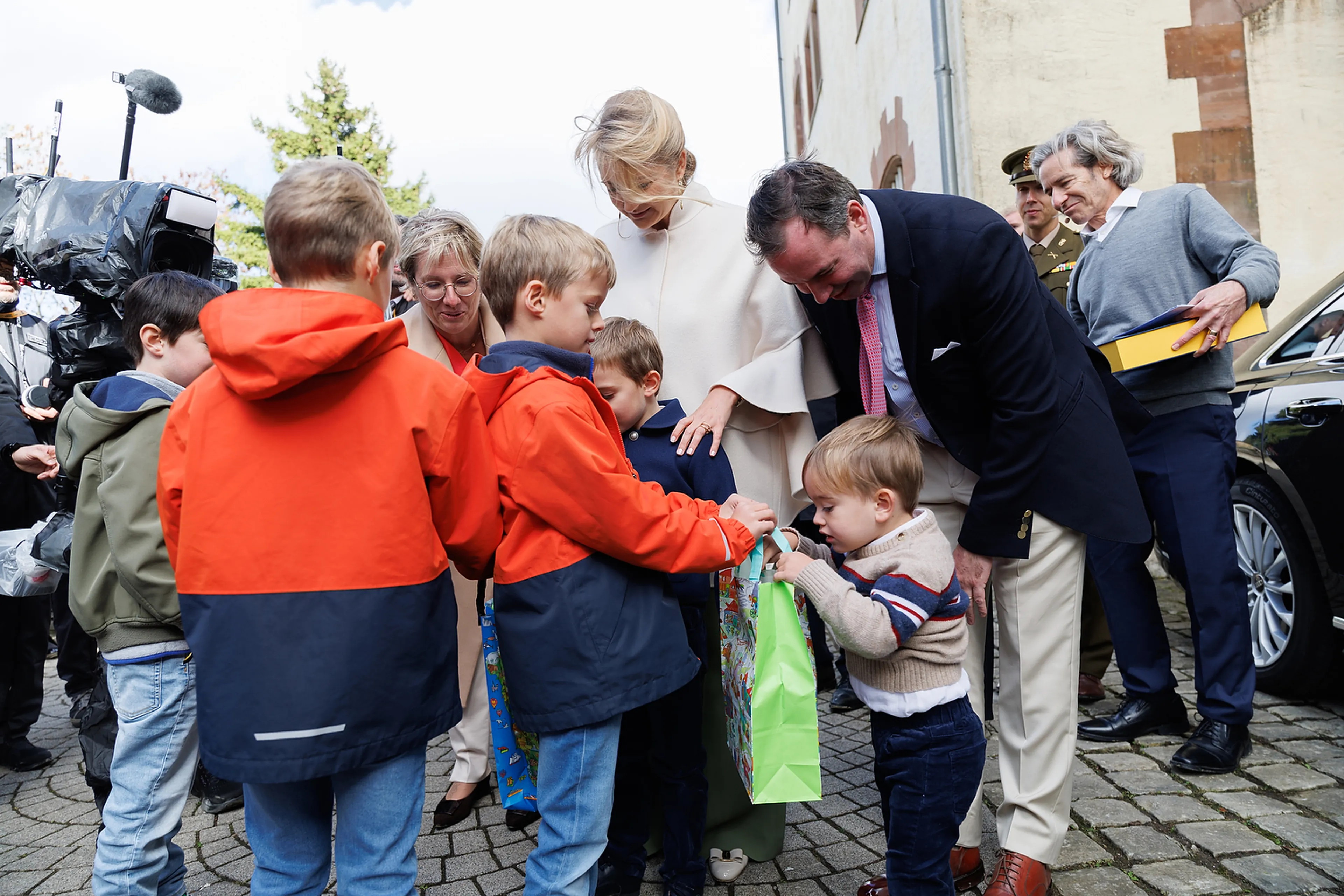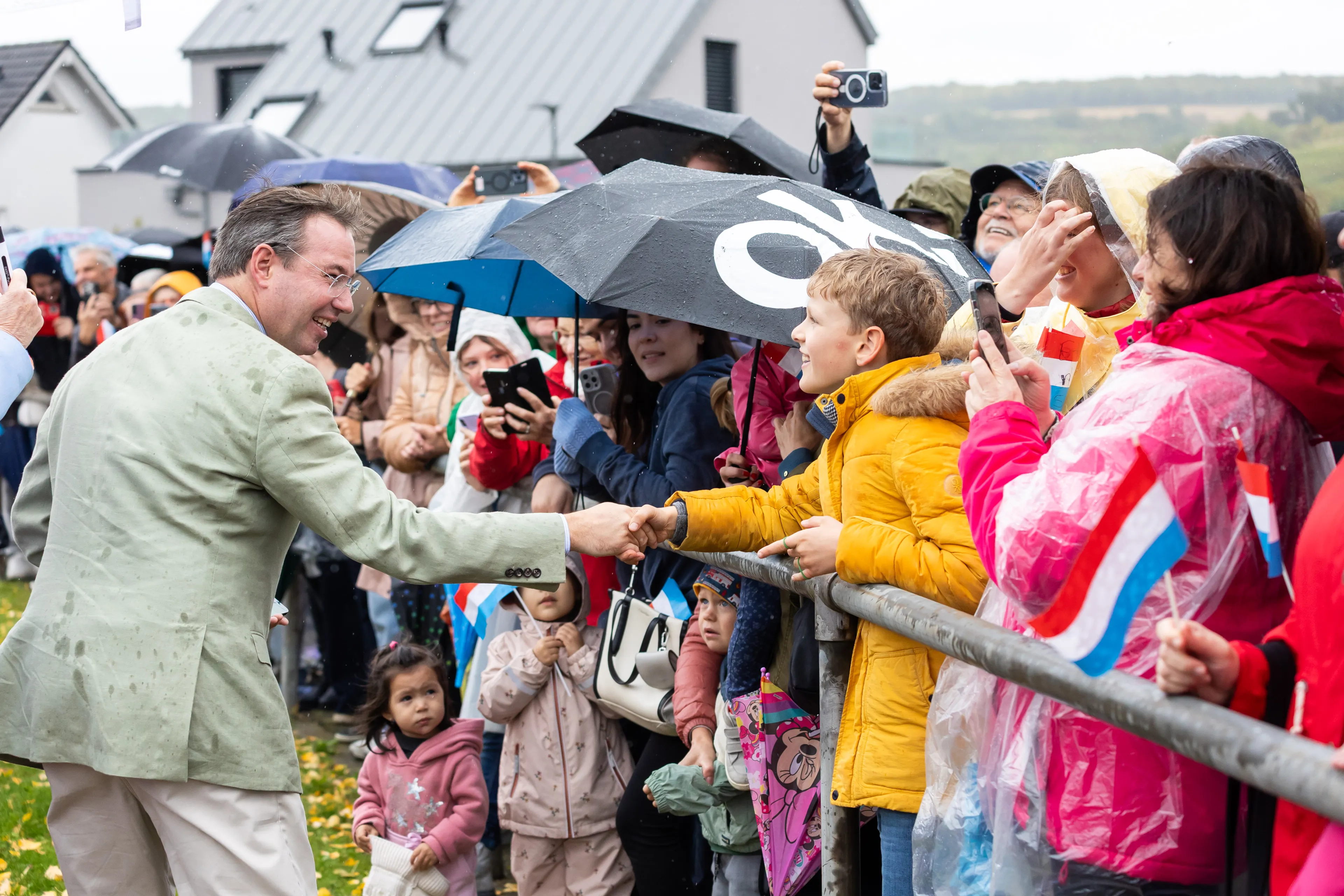 Er was voor het nieuwe groothertogelijke paar geen tijd om op hun lauweren te rusten, want het programma zat zaterdag bomvol activiteiten. Het begon regenachtig in Grevenmacher, waar sport en vrijwilligerswerk centraal stonden. Guillaume ontmoette jonge atleten en vrijwilligers die zich hiervoor inzetten.