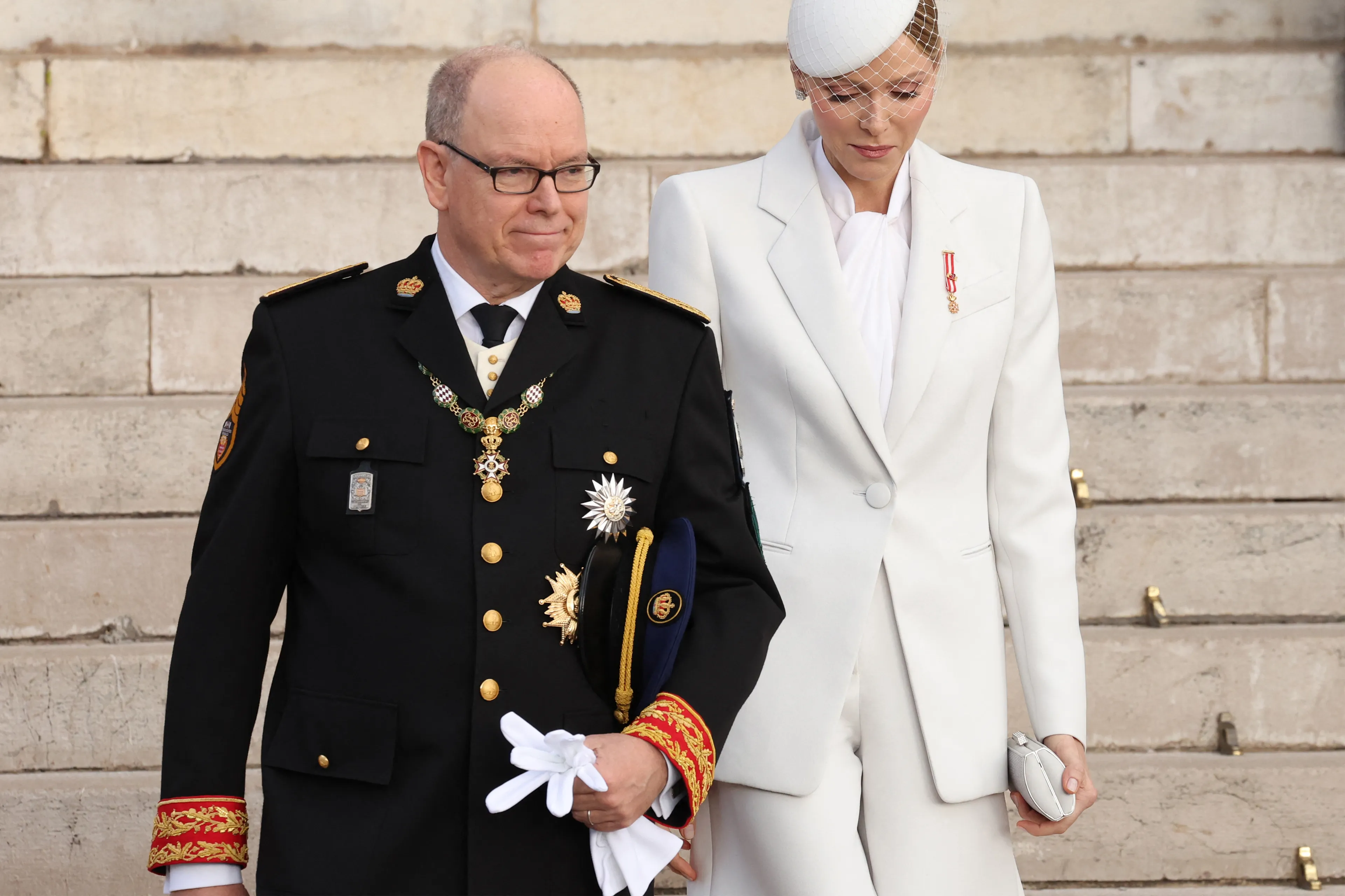 Prinses Charlène strak in 't pak op nationale feestdag Monaco