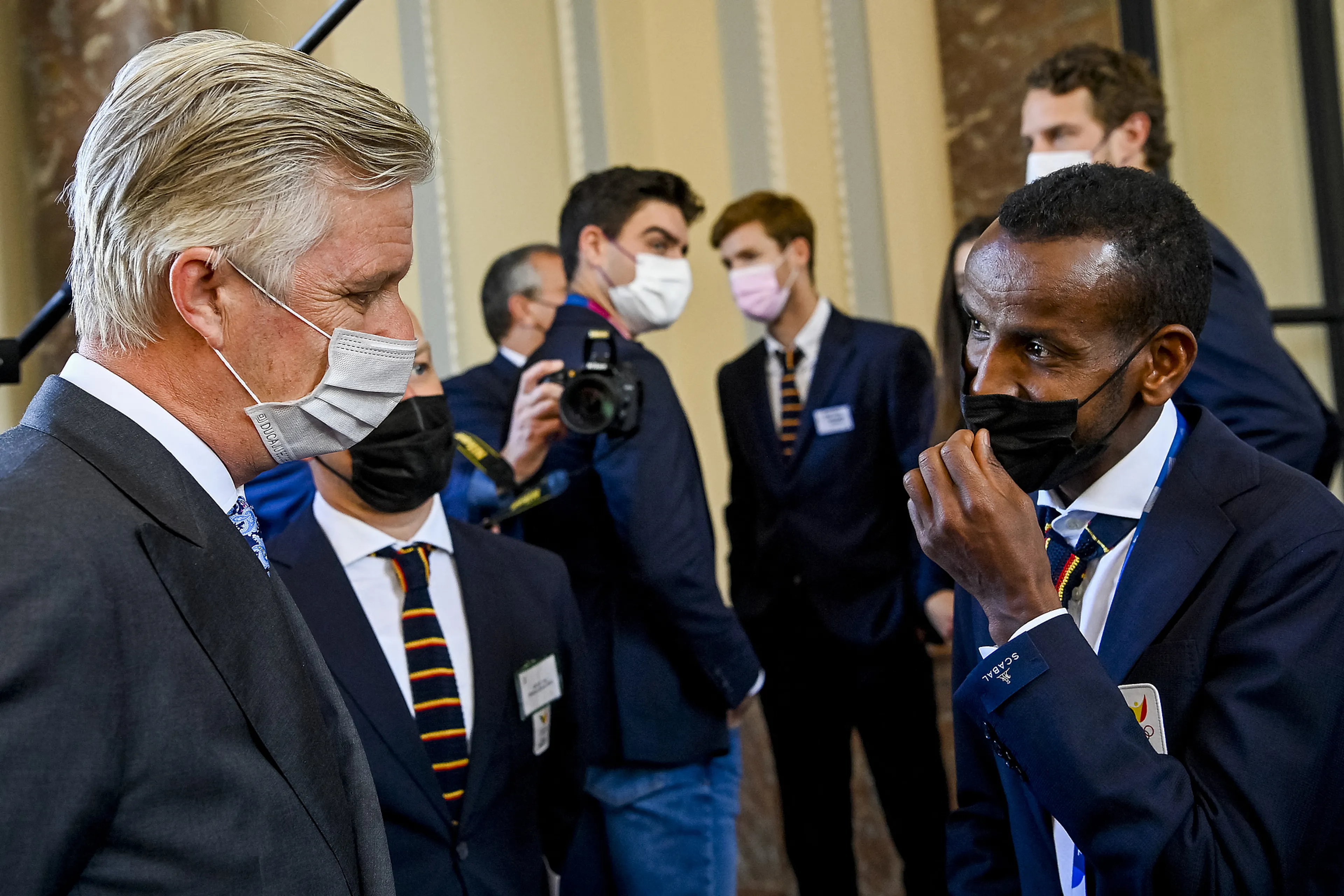 Koning Filip en koningin Mathilde gingen op de foto met de wel aanwezige olympische medaillewinnaars en maakten een praatje met alle atleten. Een van hen was marathonloper Bashir Abdi, die brons won in Tokio en afgelopen weekeinde nog als eerste over de finish kwam in Rotterdam.
