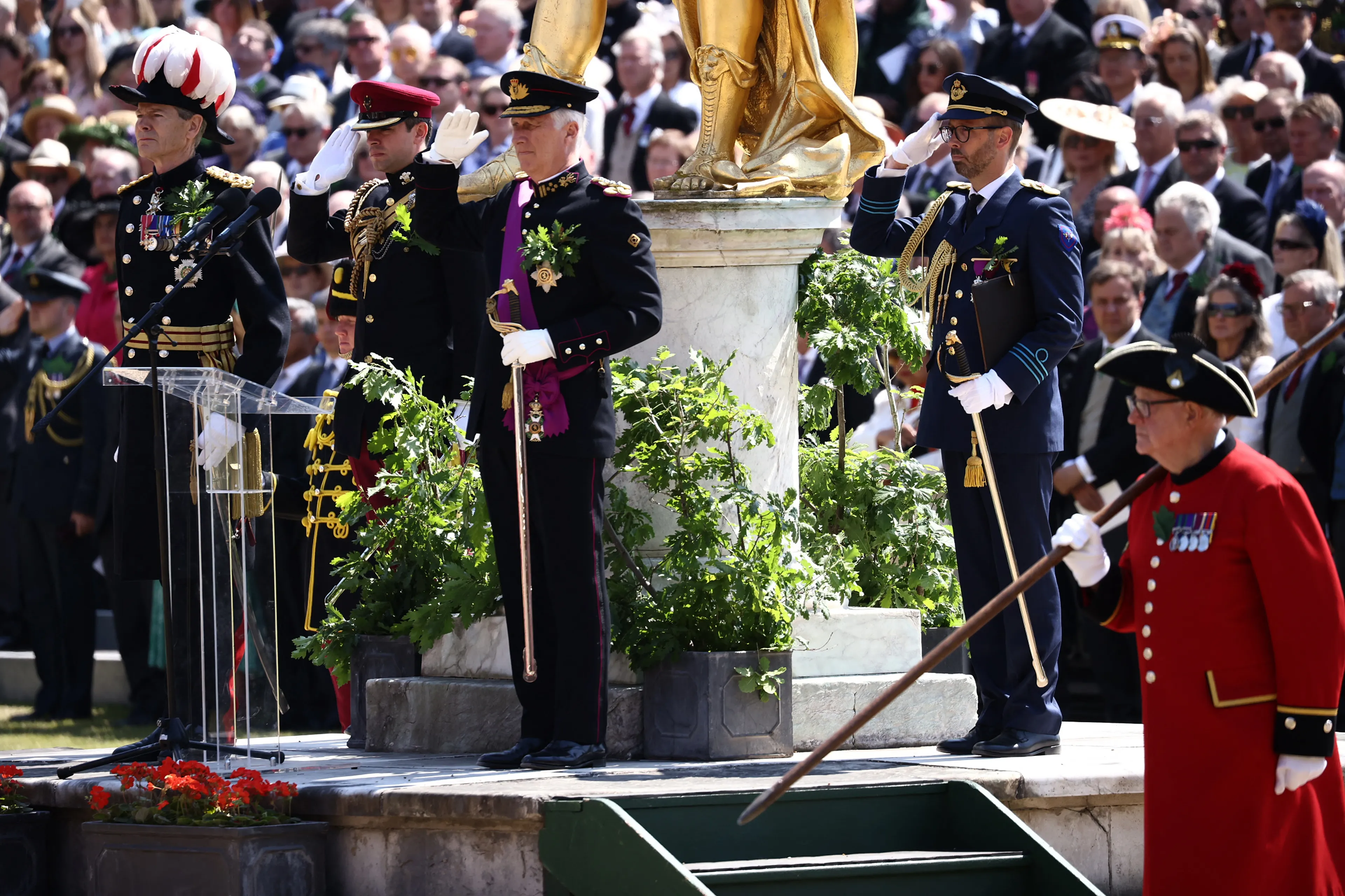 De Belgische koning was uitgenodigd om deel te nemen aan de ceremonie als "reviewing officer". In die rol inspecteerde hij de zogeheten 'pensioners parade'. "Vereerd om zijne majesteit de koning der Belgen bij ons te hebben op deze speciale dag", schreef het RHC op Twitter.