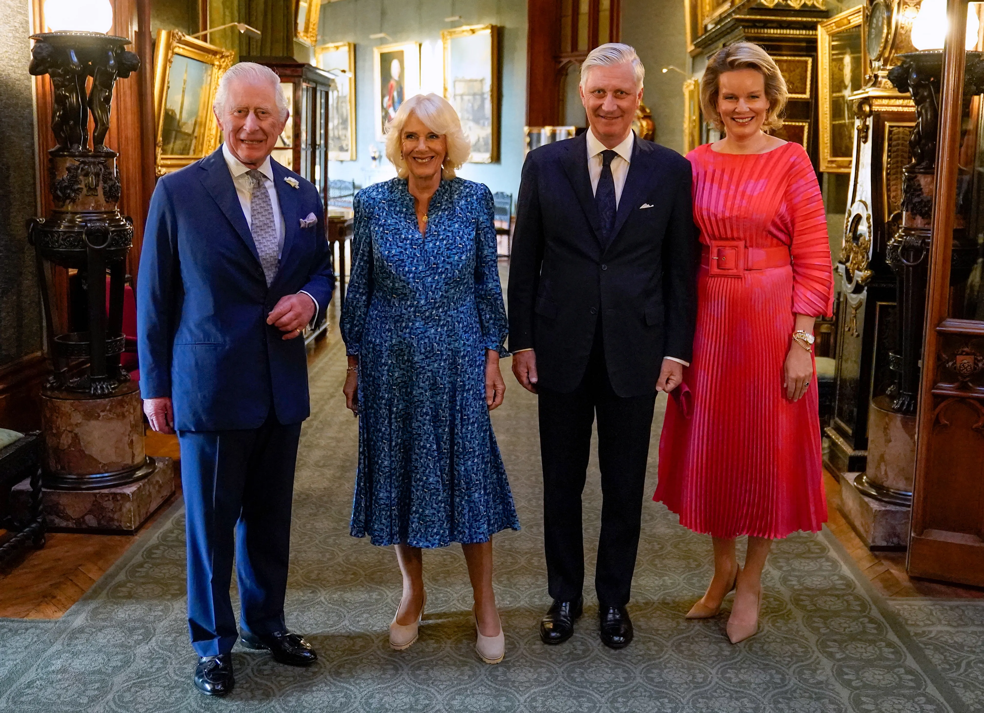 Koning Filip en koningin Mathilde van België hebben donderdag een bezoek gebracht aan het Britse koningspaar. Koning Charles en koningin Camilla ontvingen de twee op Windsor Castle. Op sociale media werd een foto van het viertal gedeeld.