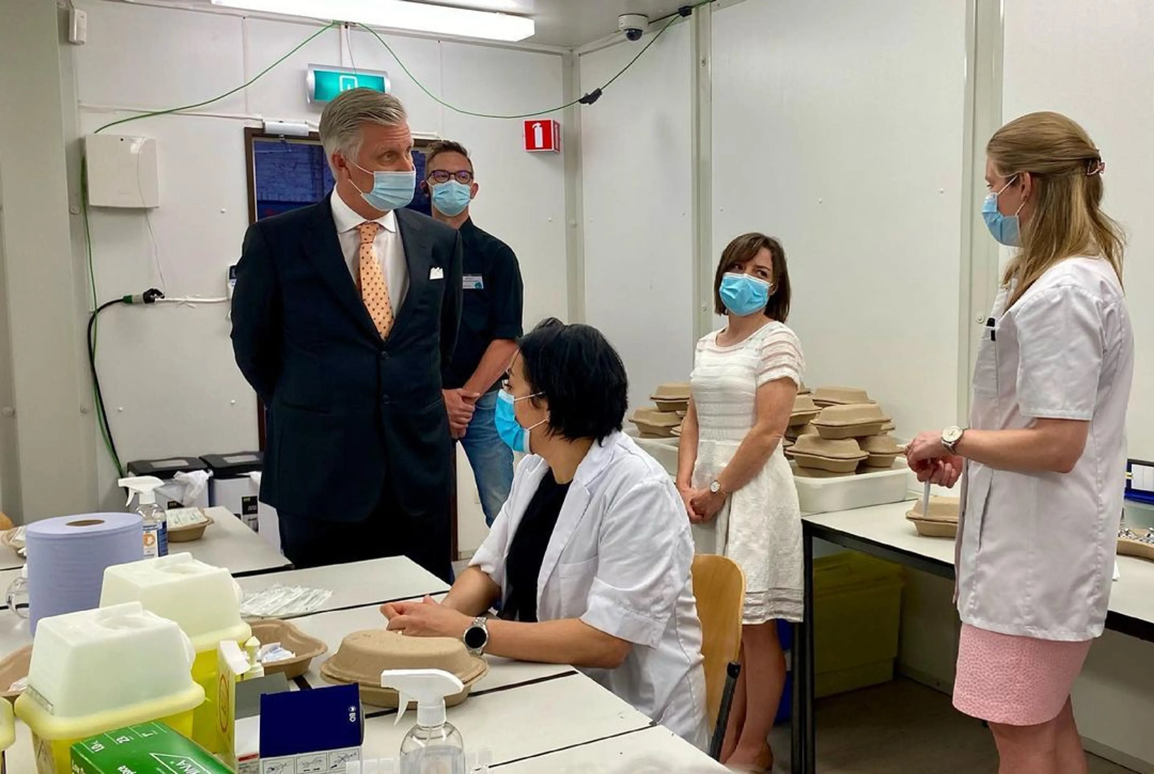 Daarna sprak Filip nog met gevaccineerden en verpleegkundigen. Zo vroeg de vorst aan een van de artsen of de grens voor groepsimmuniteit, in België de 70 procent-drempel genoemd, in juli gehaald wordt. Aan het eind van zijn bezoek stapte de koning ook nog even de apotheek binnen. Daar werd hem uitgelegd hoe de medewerkers het vaccin in de spuiten doen.