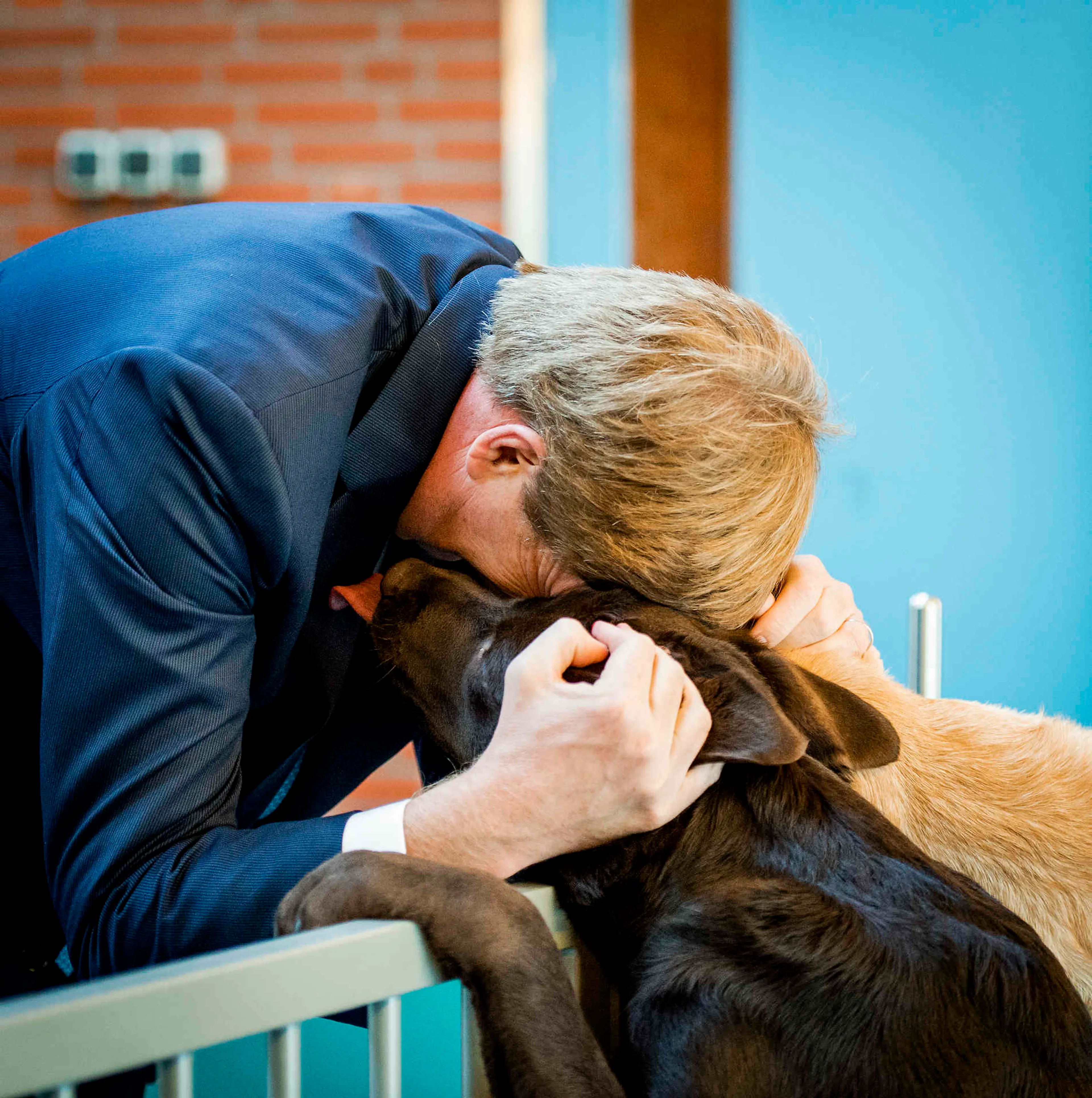 De koning is dol op honden. Zelf heeft hij twee zwarte Labradors: Skipper en Nala. Als de koning tijdens een bezoek aan het KNGF hoort dat de honden geaaid mogen worden laat hij zich even helemaal gaan.