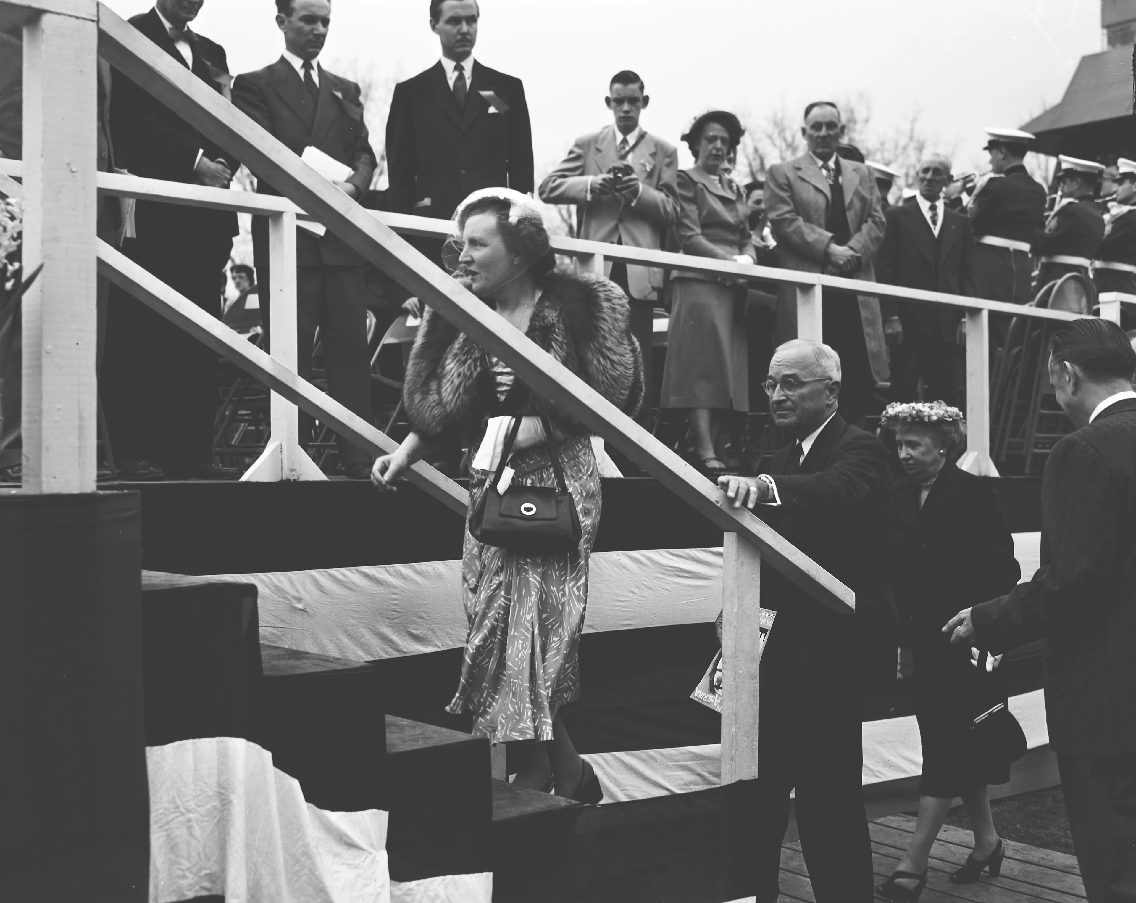 Twee jaar later bezoekt Juliana de Verenigde Staten. Hier is zij te zien samen met president Harry Truman.