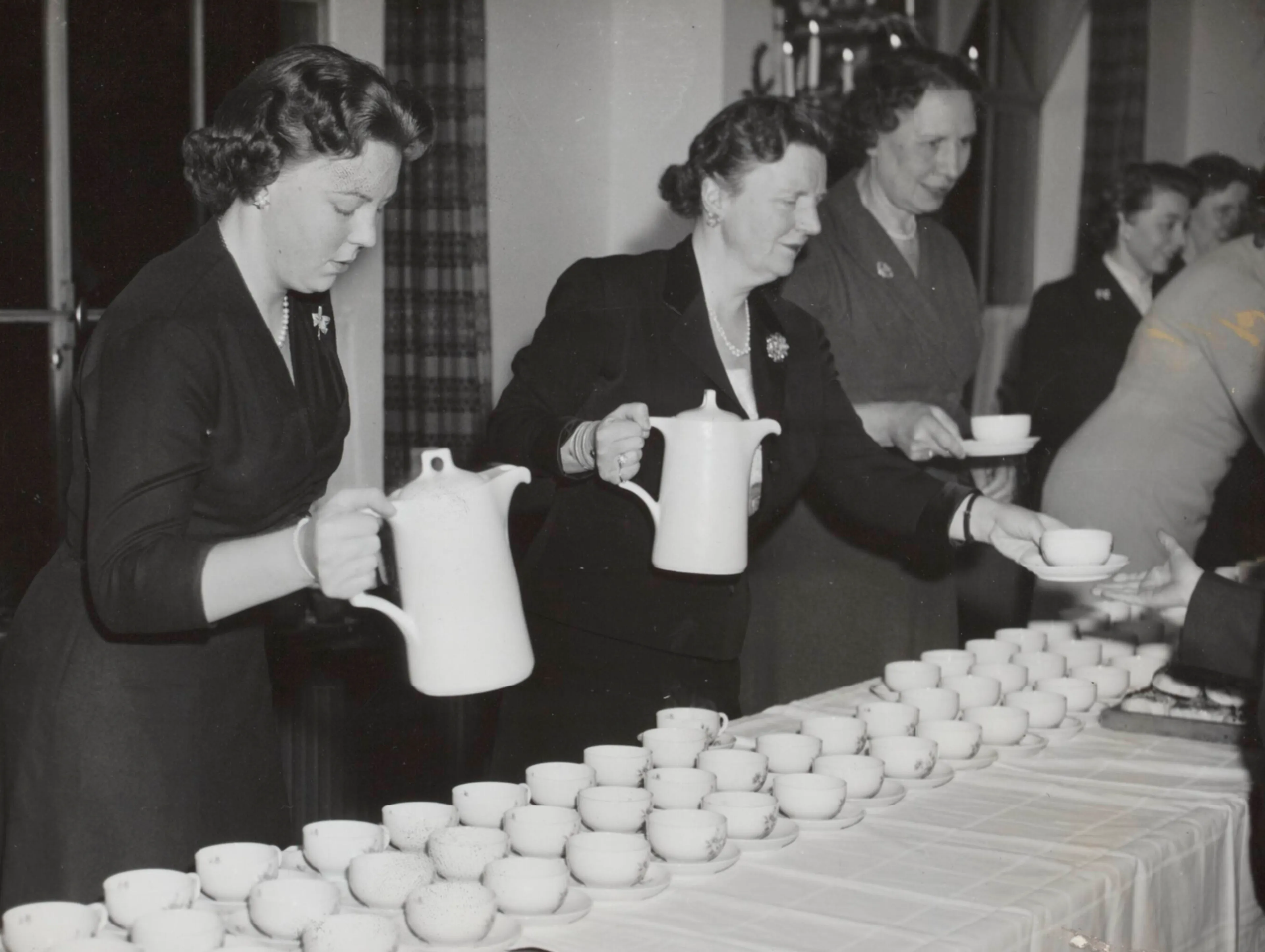 Met kerst wordt er aan het hof van koningin Juliana onder andere warme chocolademelk geschonken als bedankje aan het personeel. Zij helpt zelf met het inschenken en het bedienen van de kopjes, zoals hier te zien is!