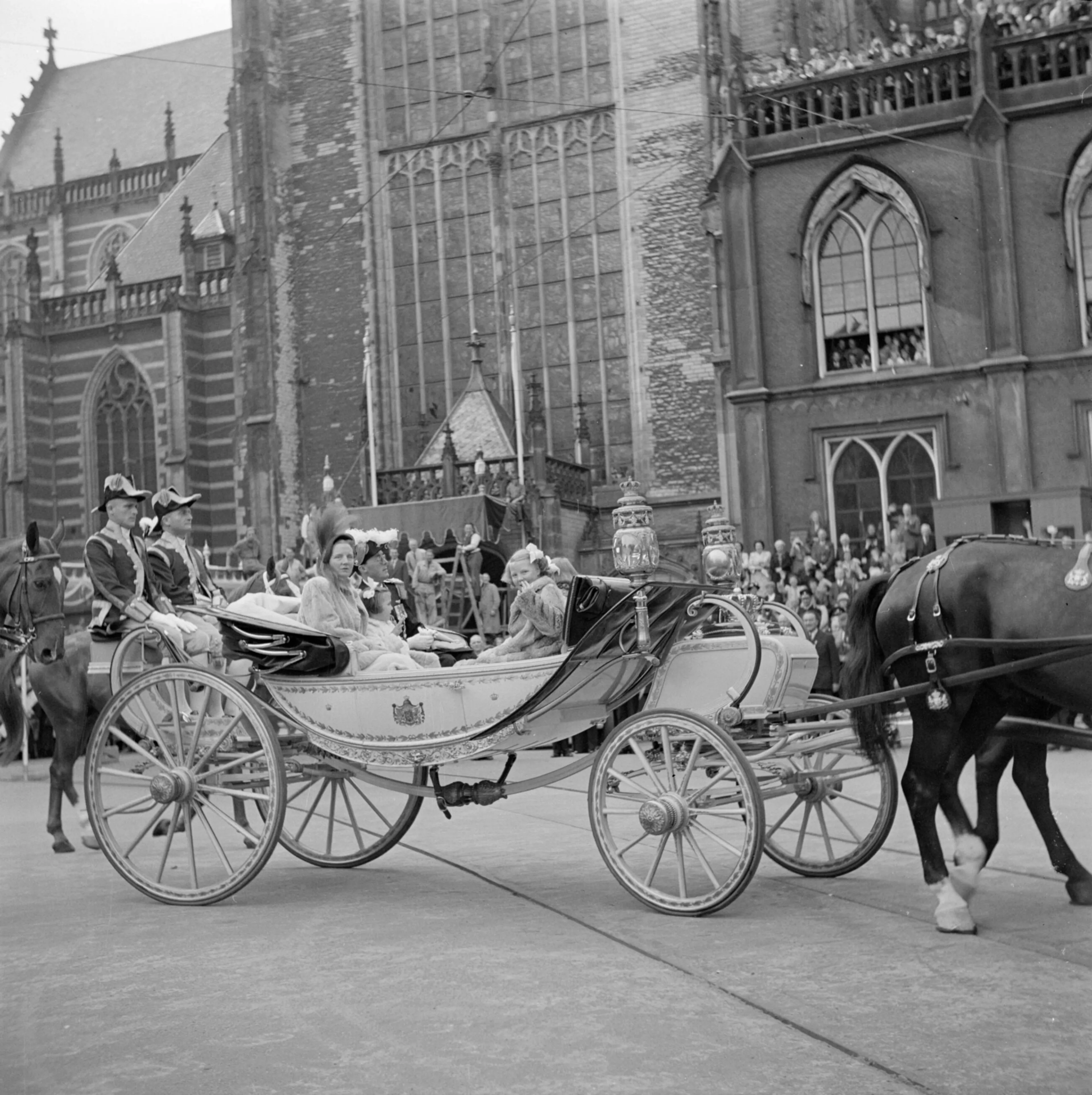 De gezondheid van Juliana's moeder laat na de terugkeer uit Engeland veel te wensen over. Ook haar leeftijd en andere tegenslagen belemmeren haar in het koninklijke werk. Juliana treedt in 1947 en 1948 twee keer op als regentes. Op 14 mei 1948 kondigt Wilhelmina via een radiotoespraak aan dat haar dochter Juliana het van haar over zal nemen. Enkele maanden later, om precies te zijn op 4 september, treedt Wilhelmina af en is Juliana Koningin der Nederlanden. Hier rijden ze nog op diezelfde dag voor de abdicatie in de crème calèche.