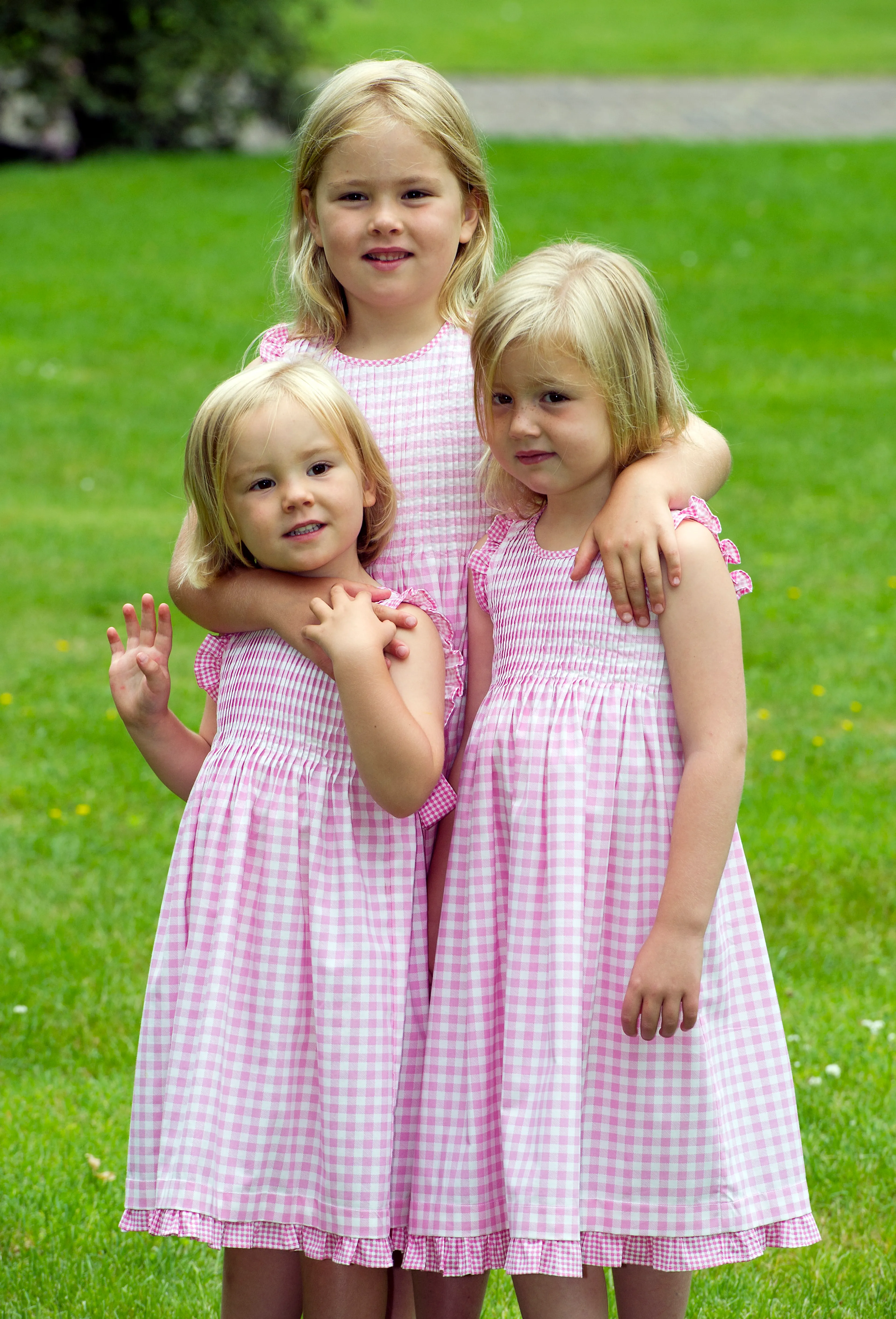 En als bonus nog een schattig kiekje uit het foto-archief. De drie oogappeltjes van Máxima in roze jurkjes tijdens de zomerfotosessie in 2010.