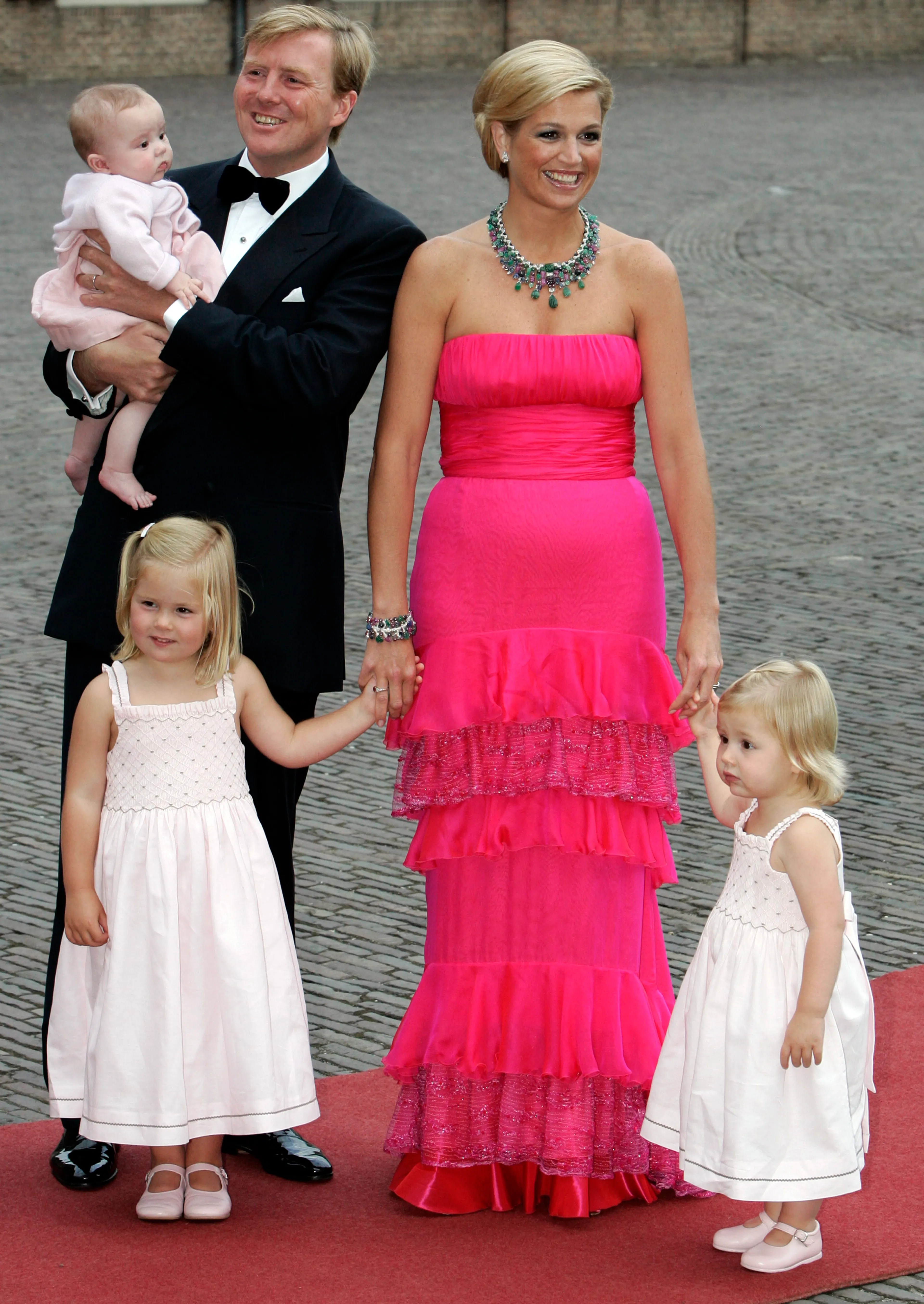 Deze leuke gezinsfoto mag niet ontbreken in dit foto-overzicht. Op het veertigste verjaardagsfeest van haar echtgenoot straalt Máxima in een knalroze avondjapon.