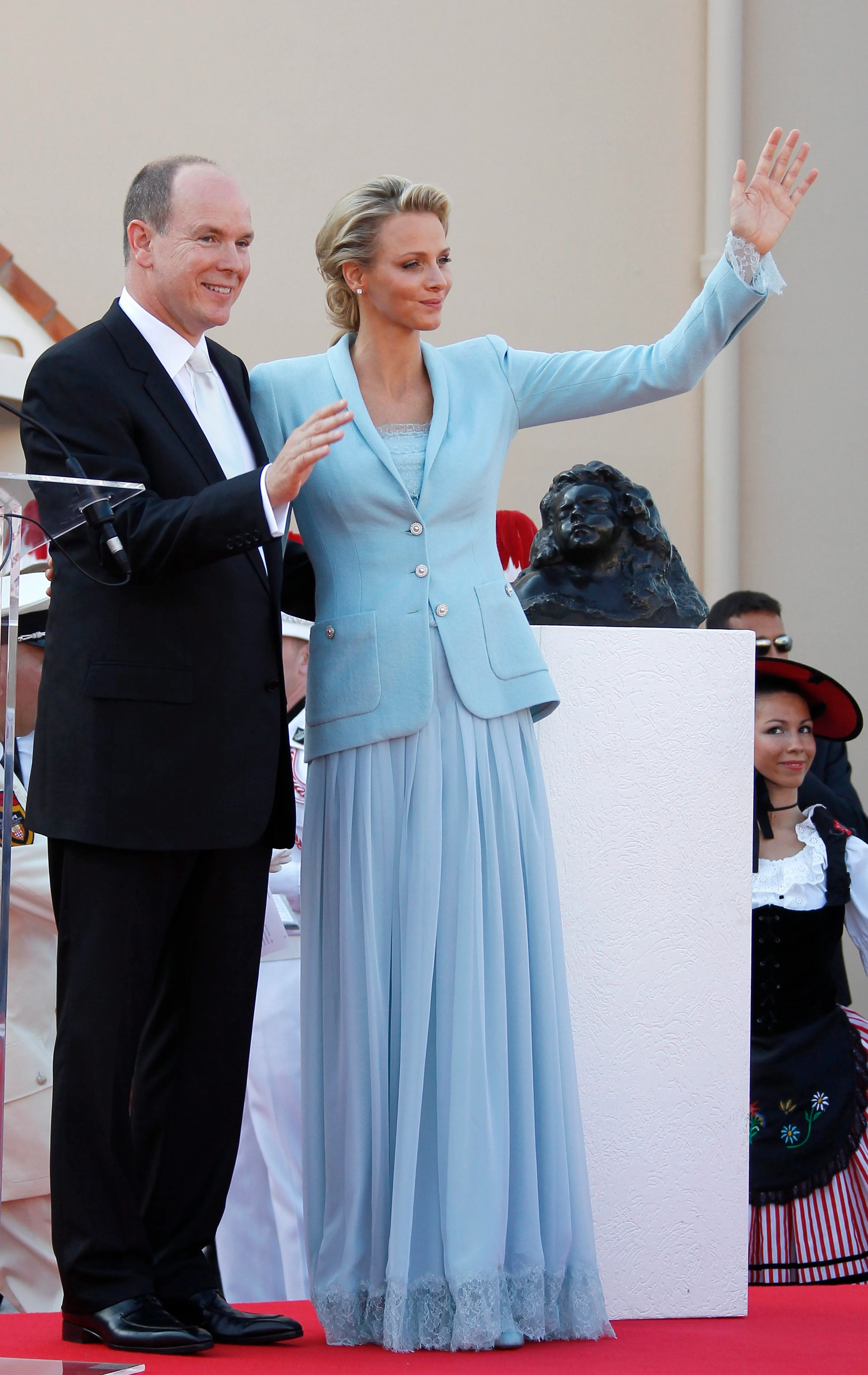Van 1983 tot aan zijn dood in 2019 was Karl Lagerfeld de ontwerper van Chanel. Hij had een goede band met veel royals, waaronder met prinses Charlène van Monaco. Hij ontwierp speciaal voor haar een ensemble voor haar burgerlijk huwelijk in 2011. In de kleur blauw, die hij later Charlène-bleu noemde, naar de oogkleur van de prinses. Het ensemble bestaat uit een blazer en een zwevende chiffon palazzo-broek, waarvan ze zei: "Het is een samenwerking tussen mij en Karl Lagerfeld. We wilden iets hebben dat overeenkomt met de kleur van mijn ogen. Het is mijn creatie en ik ben er trots op."