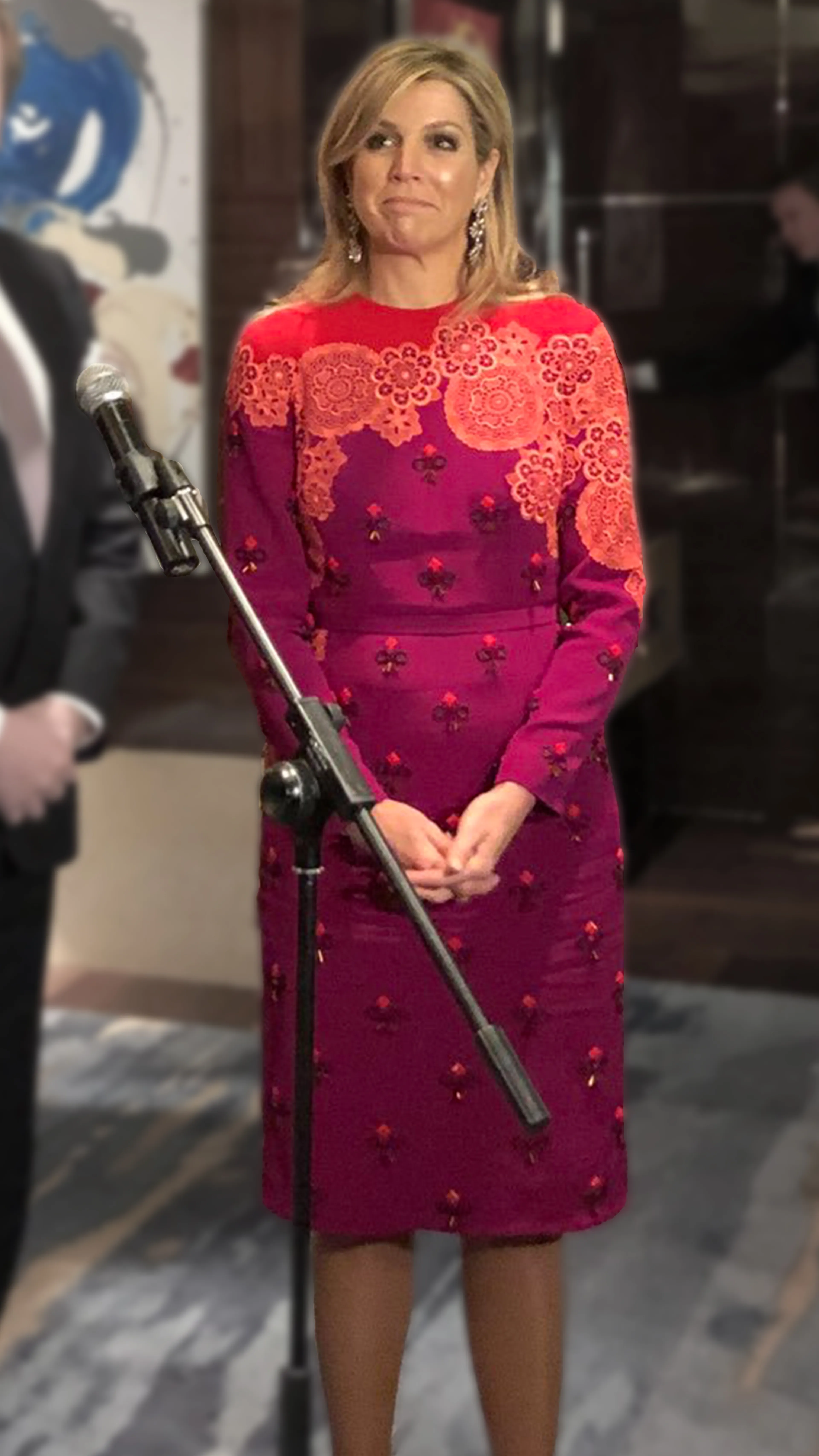 In China wist Máxima alle ogen naar zich toe te trekken dankzij een kleurrijke japon met kanten applicaties en broderie d’art. Een sterk ontwerp, dat verder weinig poespas nodig heeft. Een paar simpele pumps en een matchende clutch is al genoeg. Ideaal voor een drukke koningin met een heel afwisselend schema. Helaas zijn er maar weinig foto’s verschenen van de China-reis, dus ik hoop op een snelle herkansing voor deze mooie jurk van Claes Iversen.