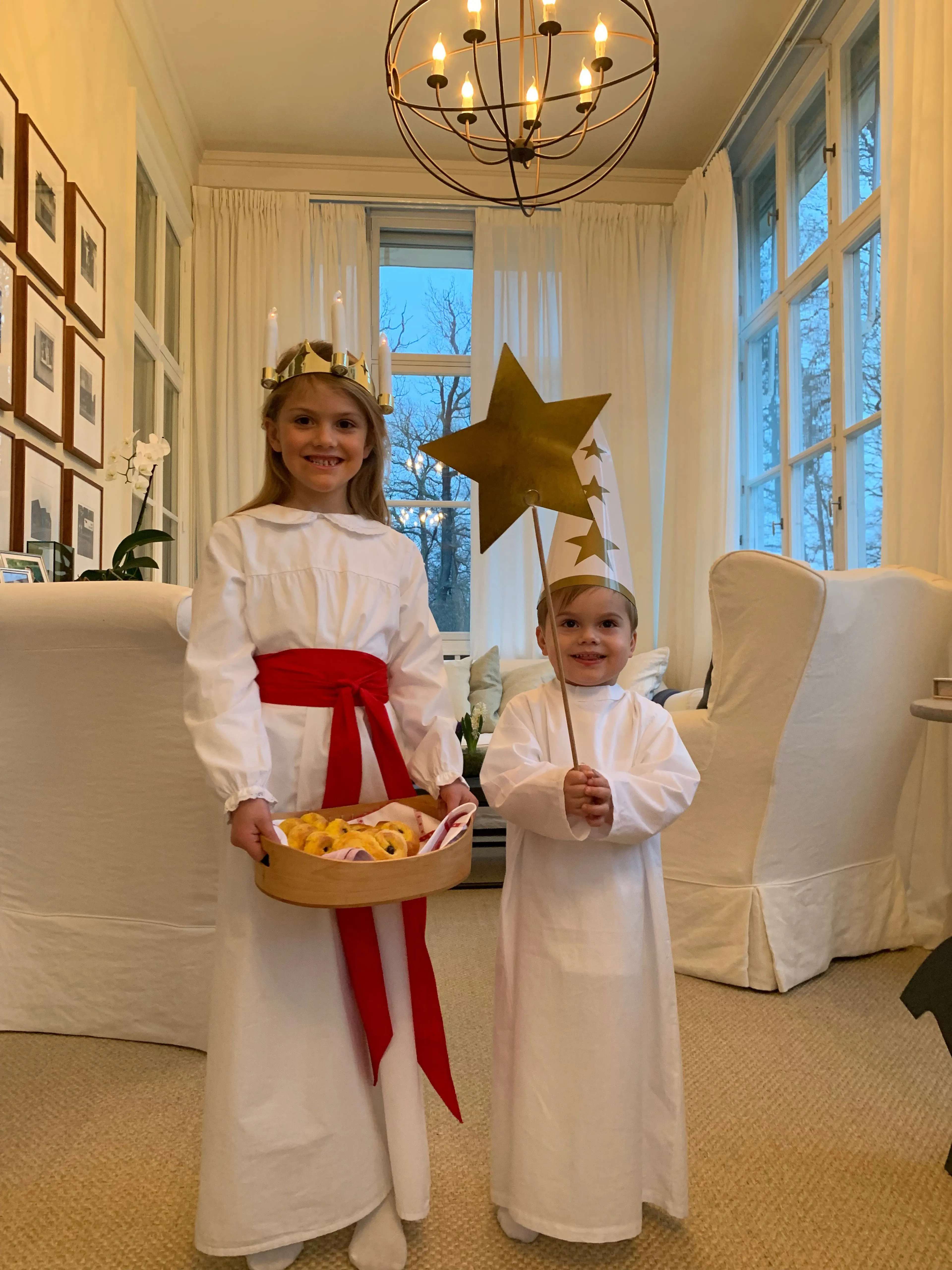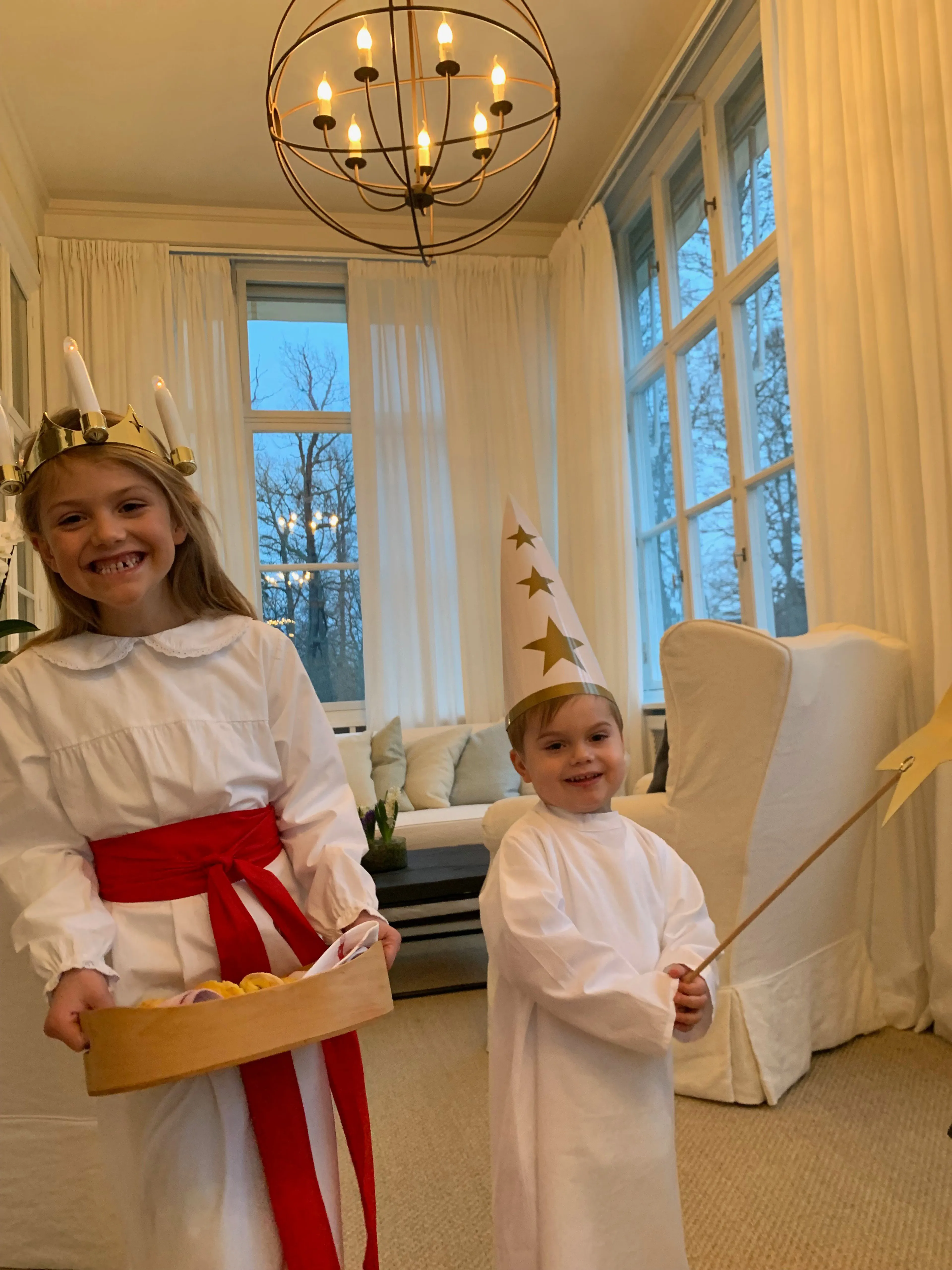 De Zweedse koninklijke familie viert, net als de rest van het land, het begin van de kerstperiode met het zogeheten Luciafeest. Kroonprinses Victoria deelt donderdag twee schattige foto's van haar kinderen die het feest meevieren.
