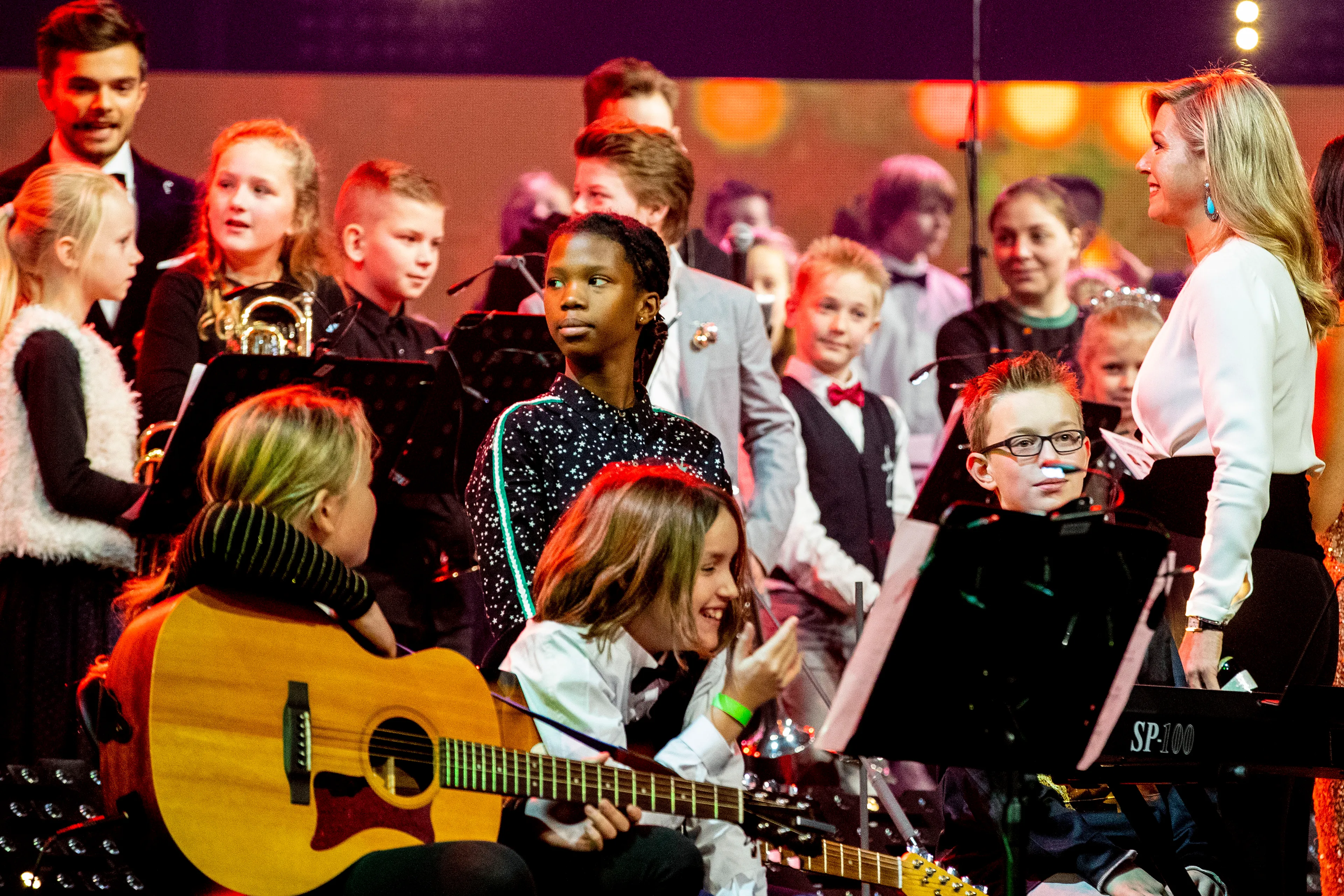 De koningin was in de Brabanthallen om de opnamen bij te wonen van het Kerst Muziekgala, waaraan onder meer de grootste schoolband van Nederland deelneemt. Die band wordt gevormd door de twaalf winnende schoolklassen van het tv-programma Lang Leve de Muziek Show. De koningin noemde het een groot voorrecht om aanwezig te zijn: er was een "grote droom" uitgekomen. Ze wenste de enthousiaste scholieren "heel veel succes."