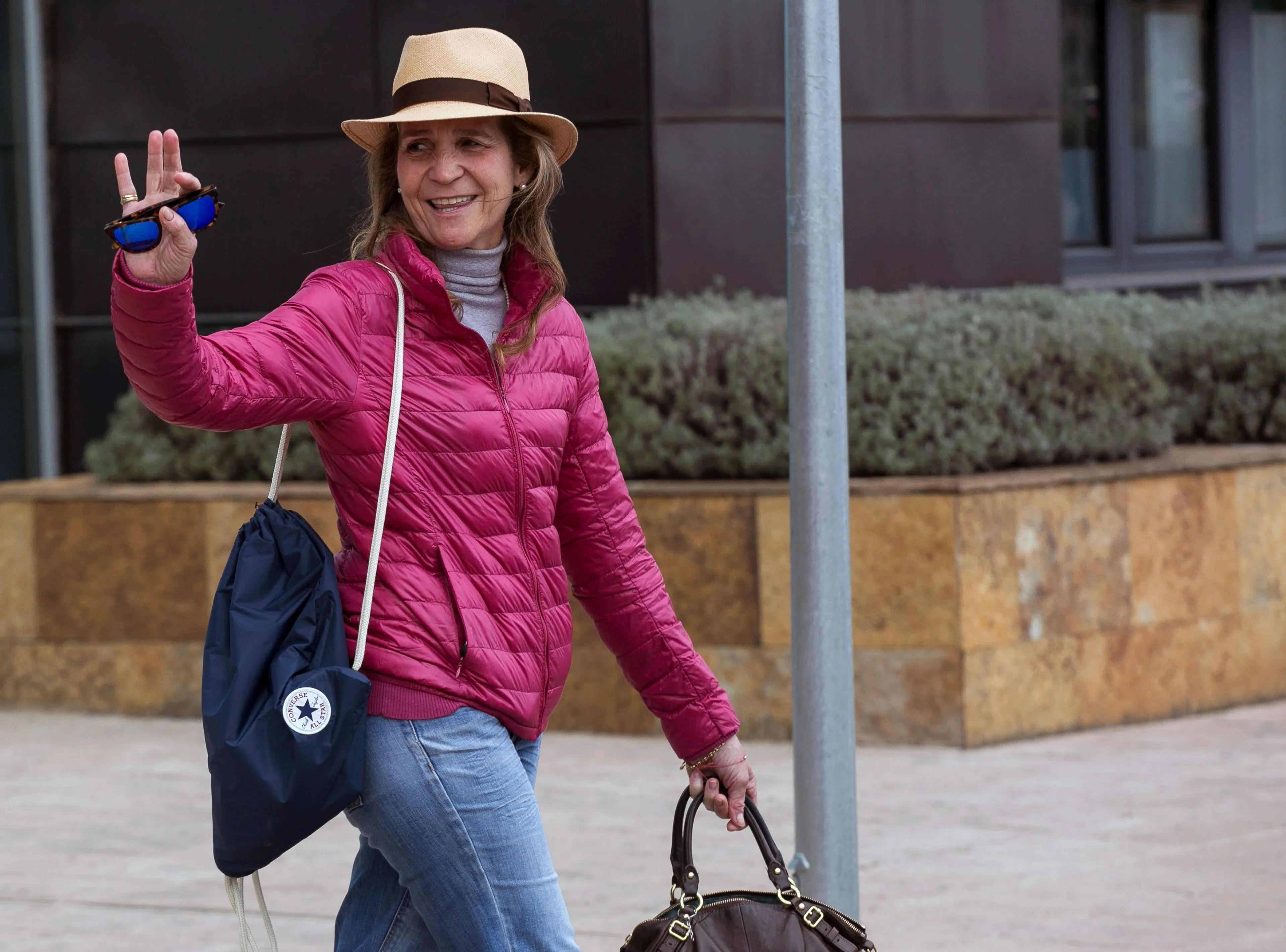 Zondagmiddag bracht ook prinses Elena een bezoekje aan haar vader Juan Carlos.