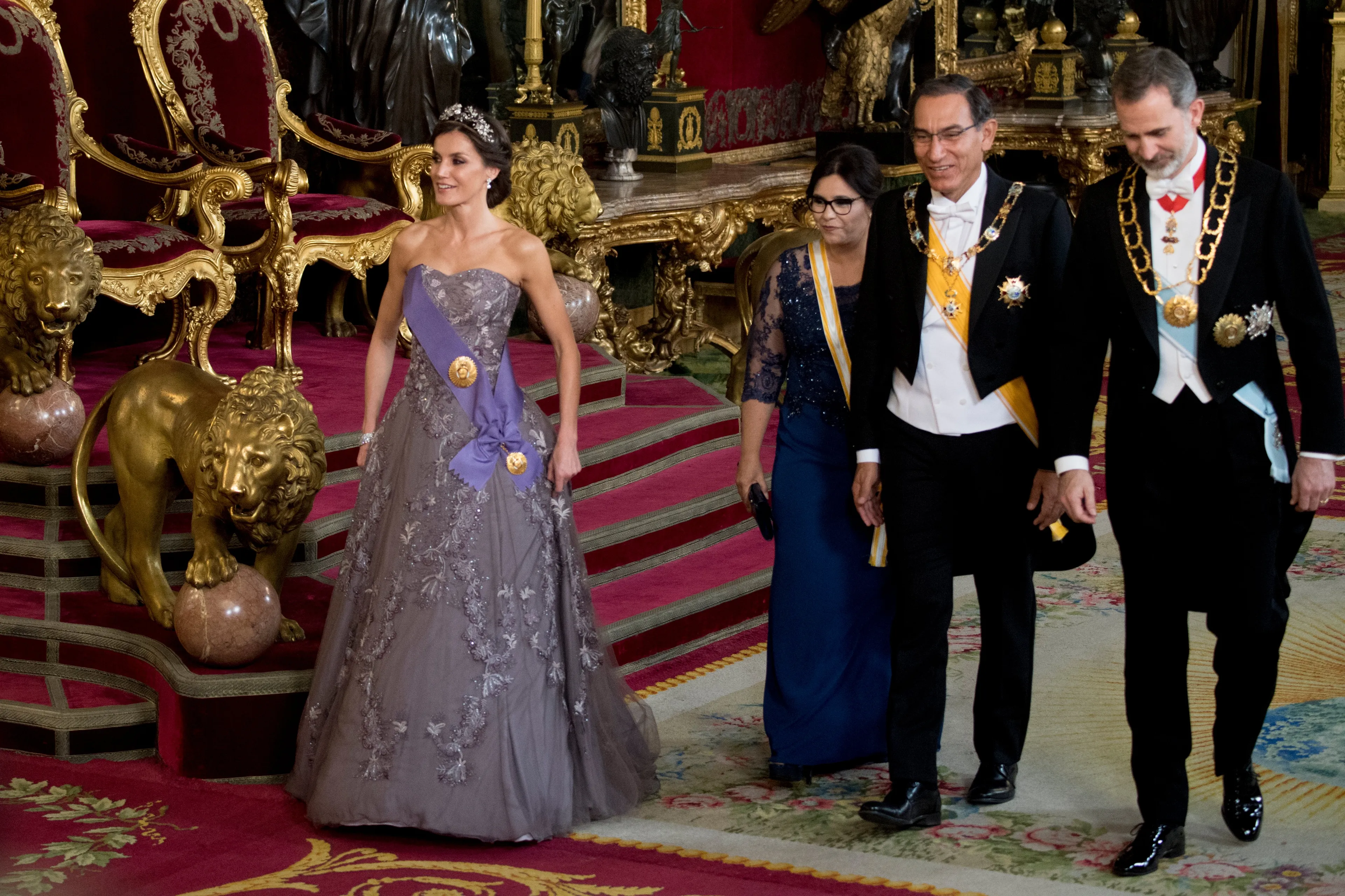 De Spaanse koning Felipe heeft woensdagavond in Madrid een staatsbanket aangeboden aan het presidentspaar van Peru, MartÃn Alberto Vizcarra en Maribel DÃaz. Zij zijn voor een tweedaags staatsbezoek in Spanje. De grote ster van de avond was koningin Letizia, die - zoals wij gisteren al voorspelde - werkelijk weer alles uit de kast trok om een verpletterende indruk te maken.