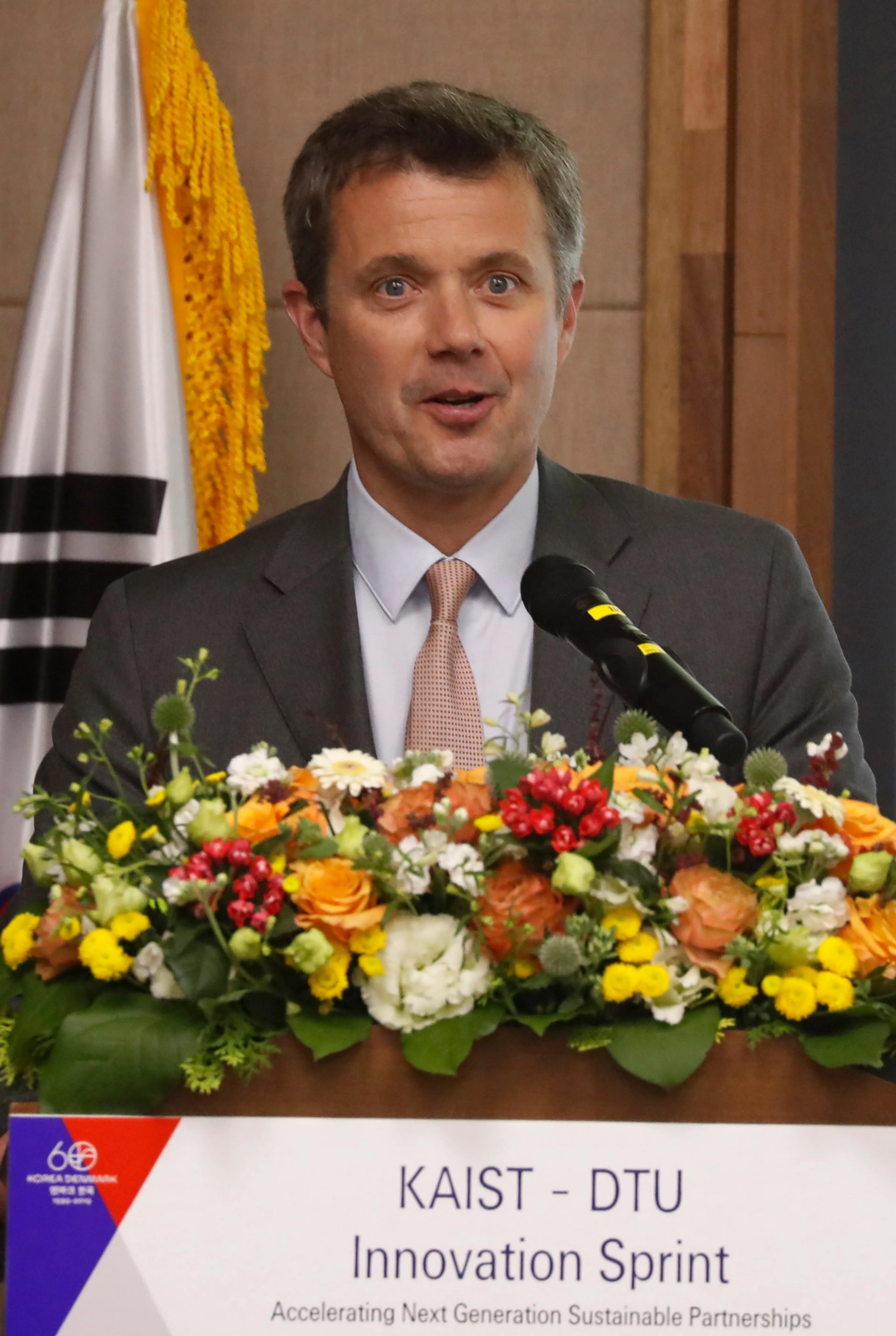 Op hetzelfde moment was Frederik met heel andere zaken bezig. Zo had hij een afspraak in de Lotte World Tower, het hoogste gebouw van Zuid-Korea en het op vier na hoogste gebouw ter wereld. In de wolkenkrabber opende de prins een seminar voor Deense bedrijven.