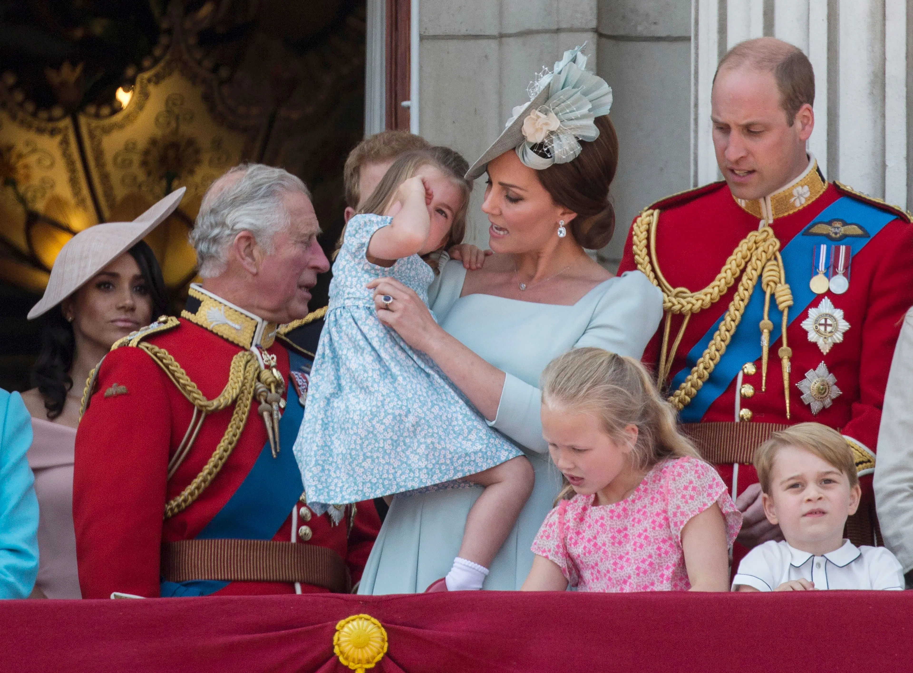 Terug bij Buckingham Palace volgde de traditionele balkonscène en het overvliegen van vliegtuigen van de Royal Air Force. Op het balkon was ook plek voor de allerjongste generatie; inclusief prins George en prinses Charlotte. De in april geboren prins Louis was er niet bij.