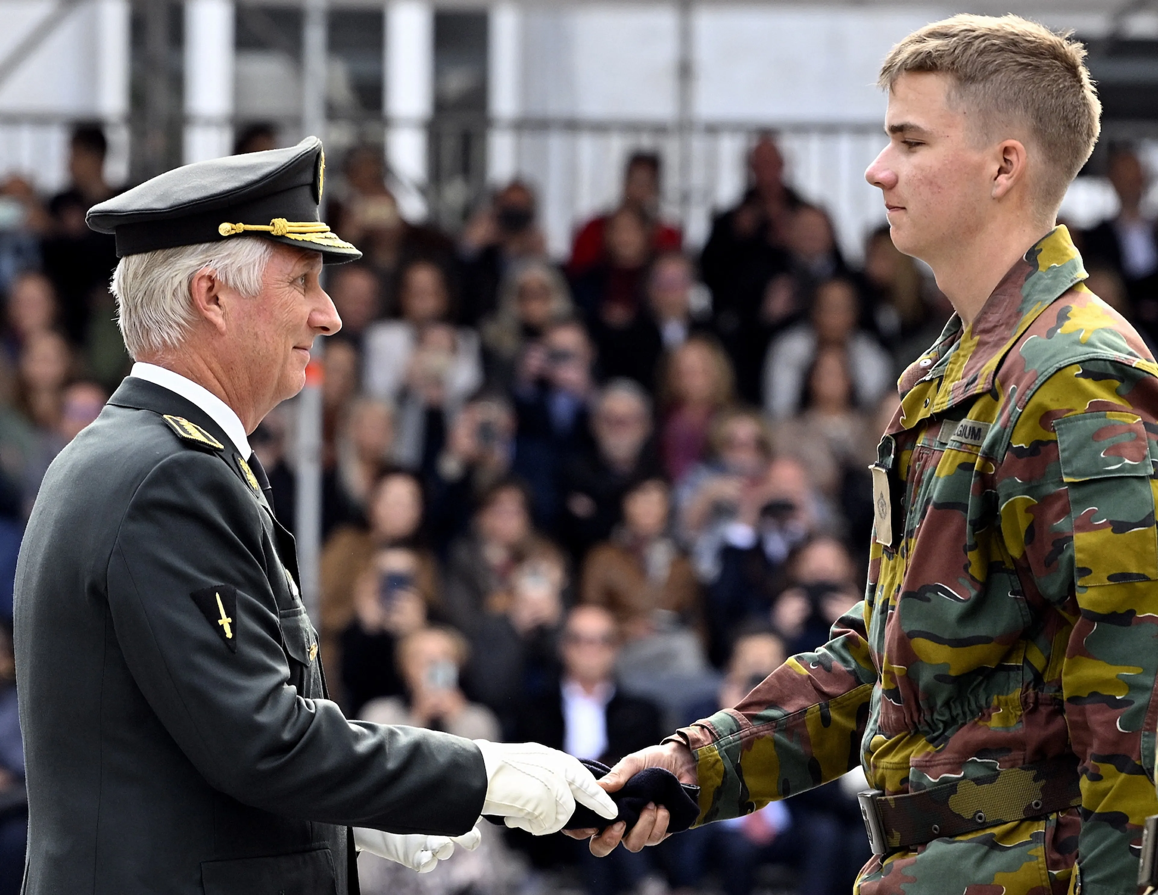 De medestudenten van Gabriël kregen hun blauwe baret eveneens uit handen van de Belgische koning. Bij de traditionele parade op de Koninklijke Militaire School (KMS) in Brussel waren ook koningin Mathilde en prinses Elisabeth aanwezig.