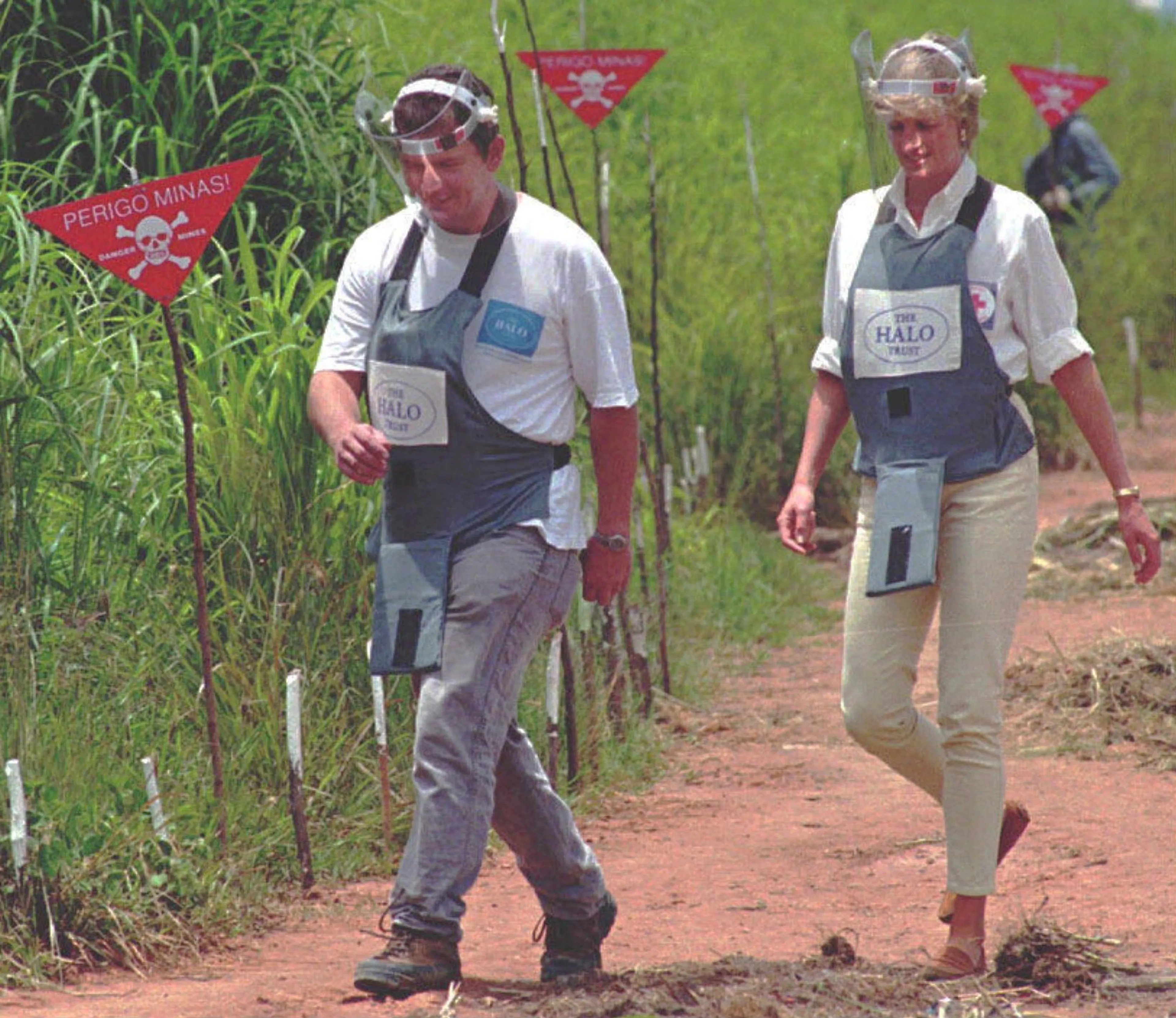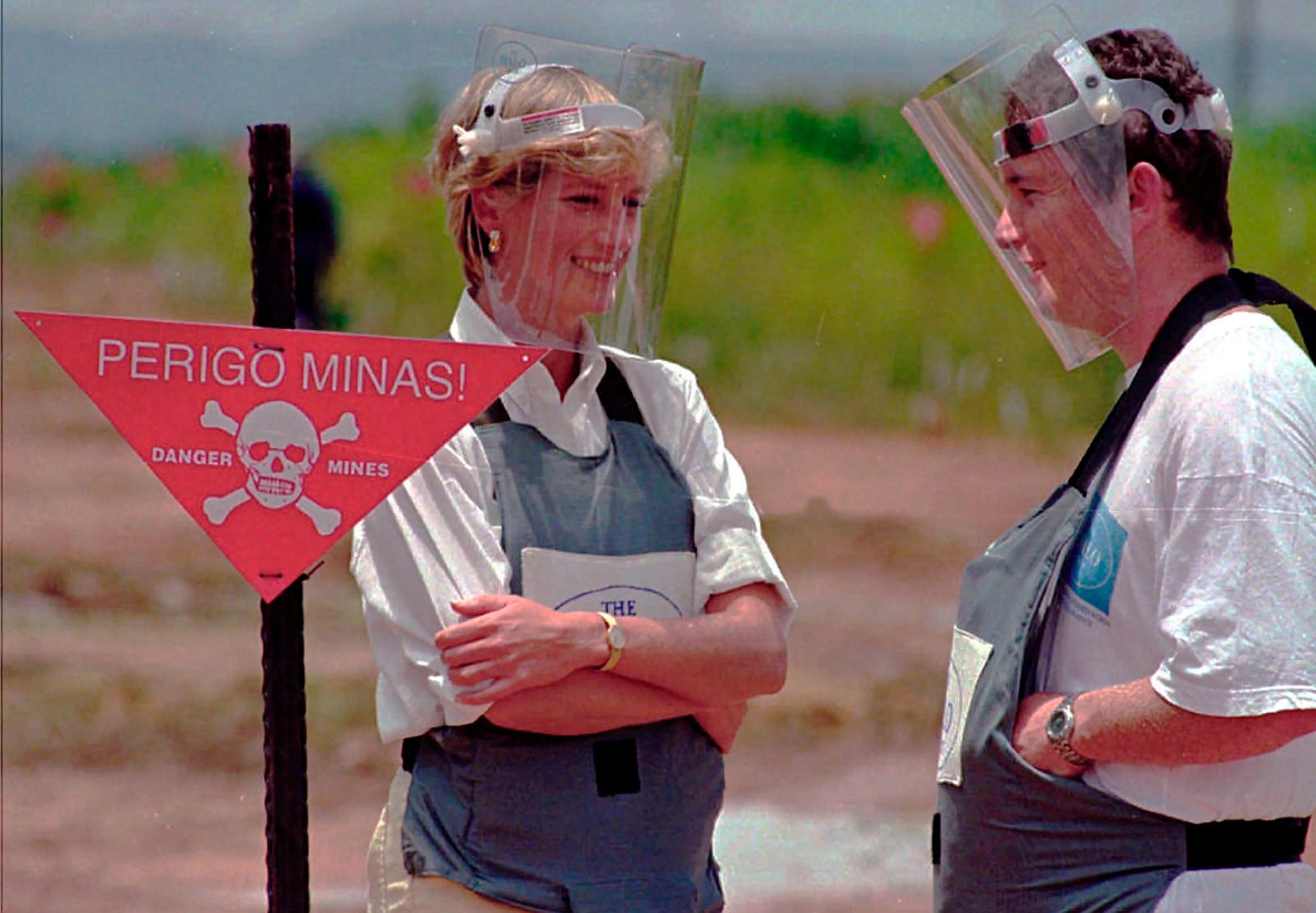 Diana bezocht in 1997 het landmijnenveld in Huambo, waar de iconische foto werd gemaakt van de prinses in beschermende kledij. Net als zoon Harry nu, zette de Britse prinses zich in voor het verwijderen van landmijnen. Tijdens haar bezoek deed Diana de beroemde uitspraak waarin ze mijnen een humanitaire en politieke issue noemde. Dit werd haar destijds niet door iedereen in dank afgenomen. Zo werd ze door een Britse minister 'een ongeleid projectiel' genoemd.