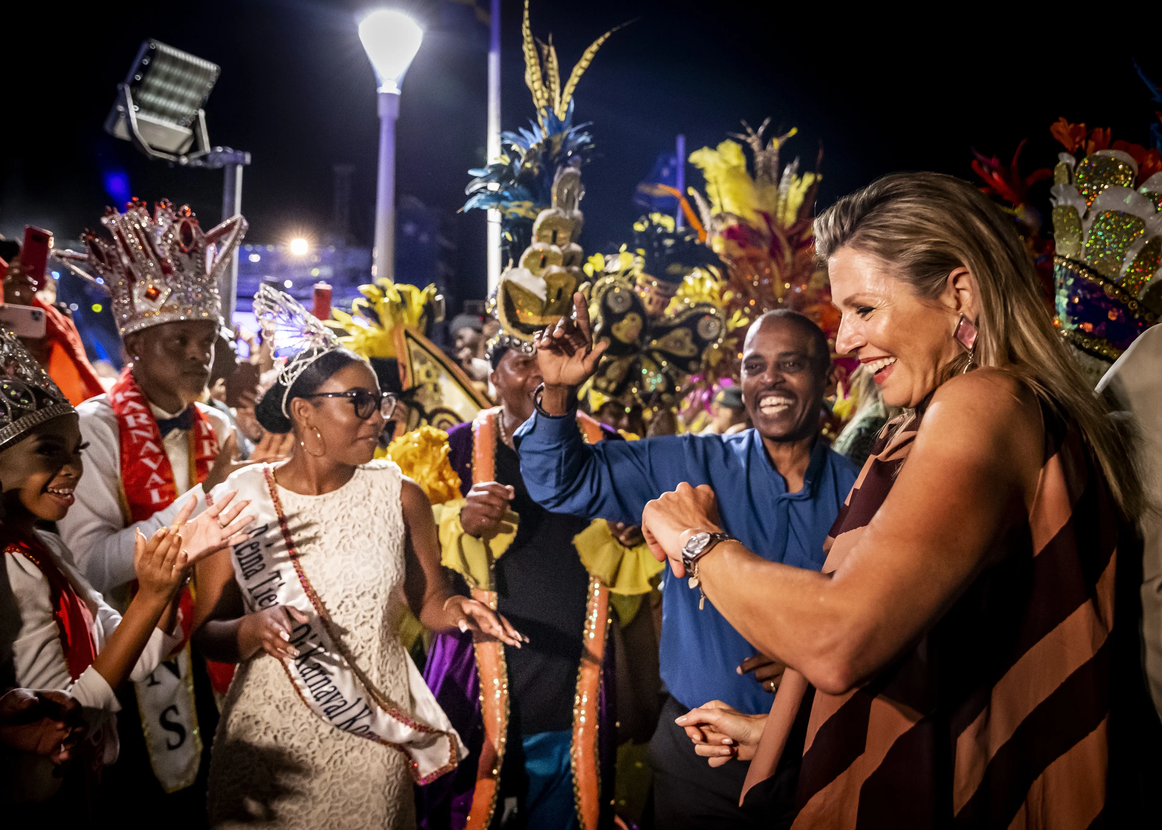 In de onderstaande galerij zien wij een dansende Beatrix en Claus tijdens het kennismakingsbezoek van Beatrix als vorstin in 1980. Tijdens eerdere bezoeken in 2011 en 2018 zijn het Willem-Alexander en Máxima die hun danskunsten laten zien. Dit jaar is het Amalia die tijdens haar kennismakingsbezoek voor het eerst mee doet aan een Caribische carnavalsdans!