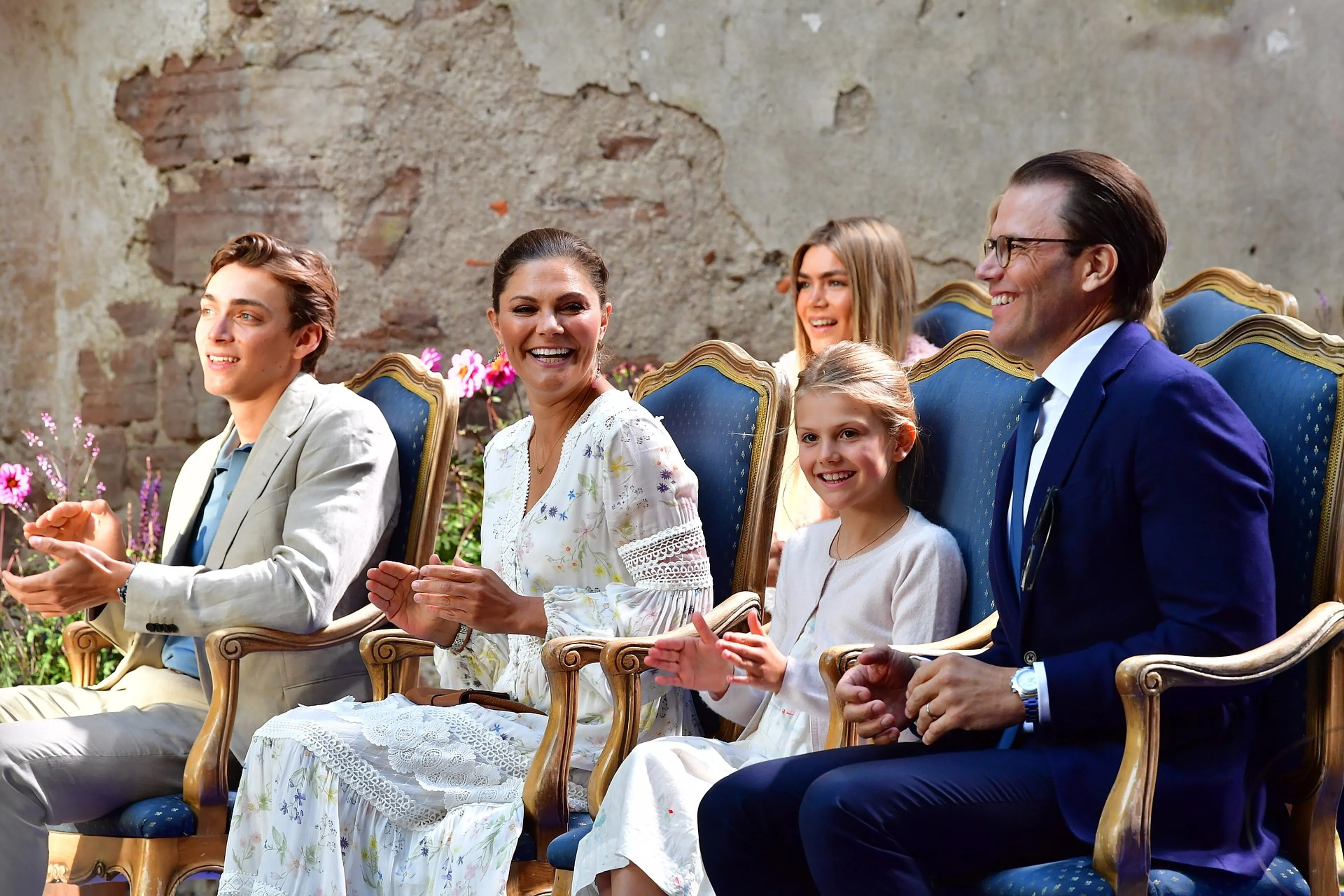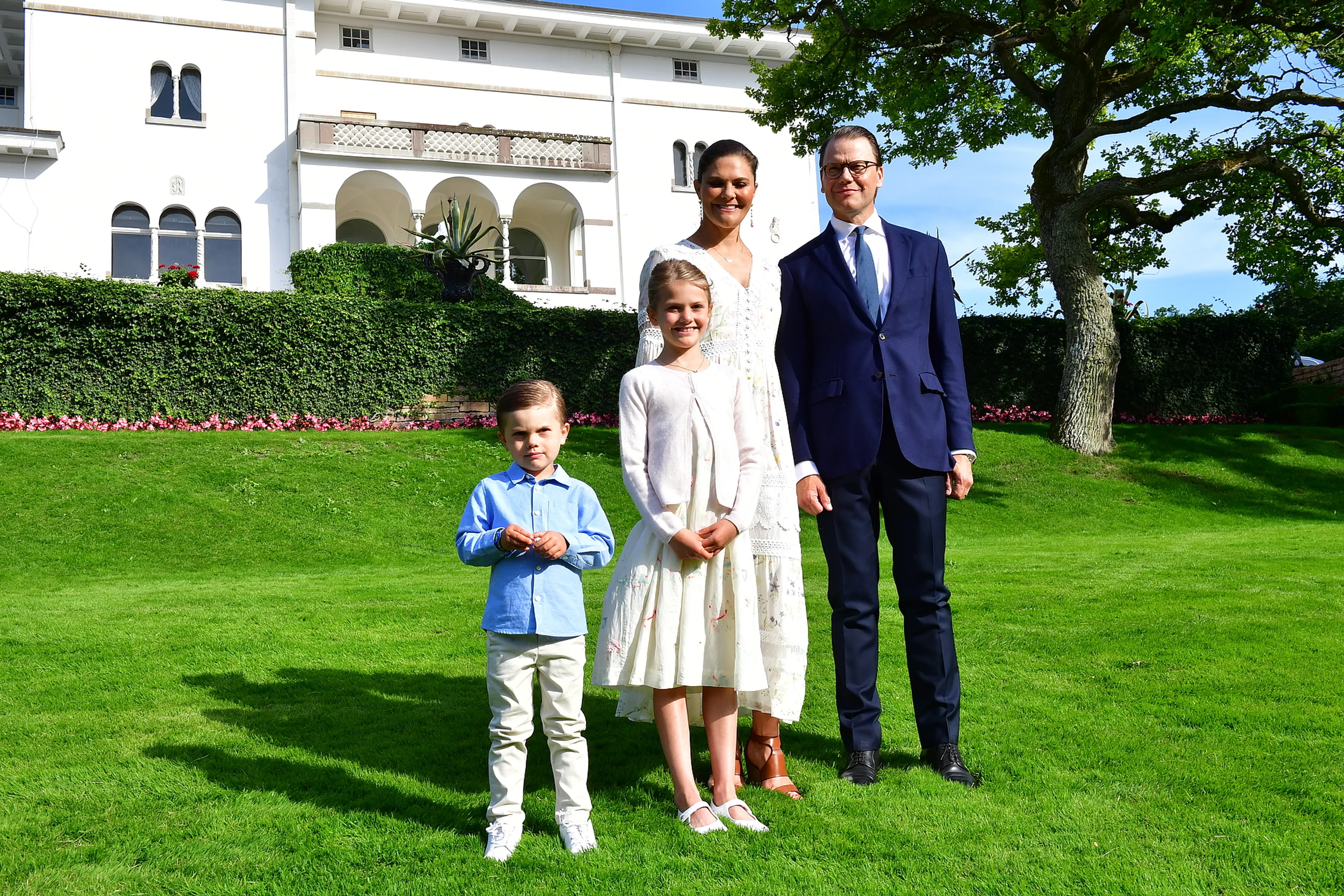 Victoria (43) werd bij de voorstelling vergezeld door echtgenoot prins Daniel, dochter prinses Estelle, en broer prins Carl Philip met diens vrouw prinses Sofia. Het gezelschap poseerde bij aankomst bij het kasteel, dat naast het koninklijk zomerverblijf Solliden ligt, nog even voor de beperkt toegelaten Zweedse media.
