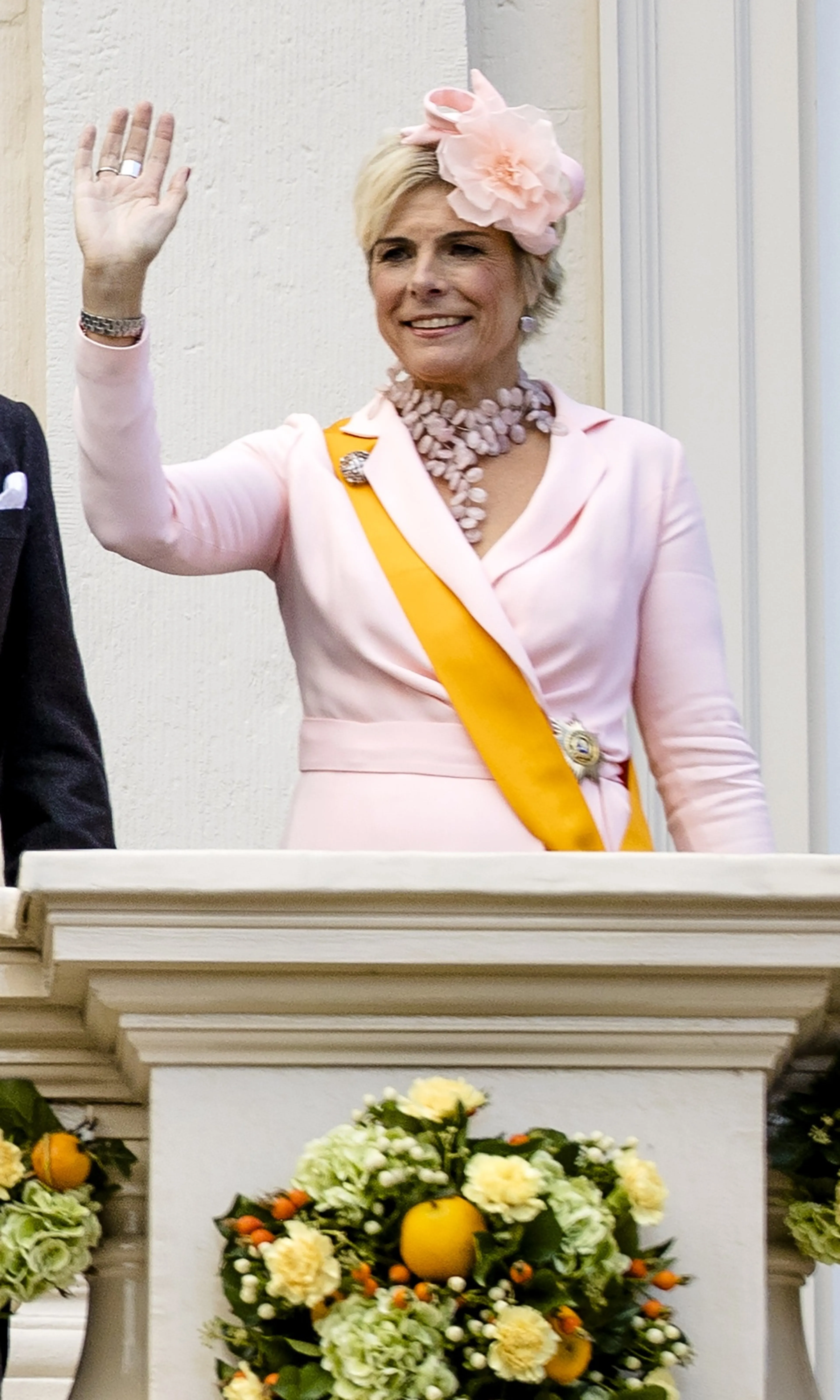 Prinses Laurentien straalde in een lichtroze jurk. De japon is gemaakt van crêpe cady. Haar hoed is versierd met een zijden bloem. Volgens modejournalist Josine Droogendijk is de jurk van Hardies Mode uit Den Haag. De echtgenote van prins Constantijn mag graag kleding dragen van het Haagse modehuis. Laurentien droeg de versierselen behorende bij het Grootkruis in de Huisorde van Oranje.