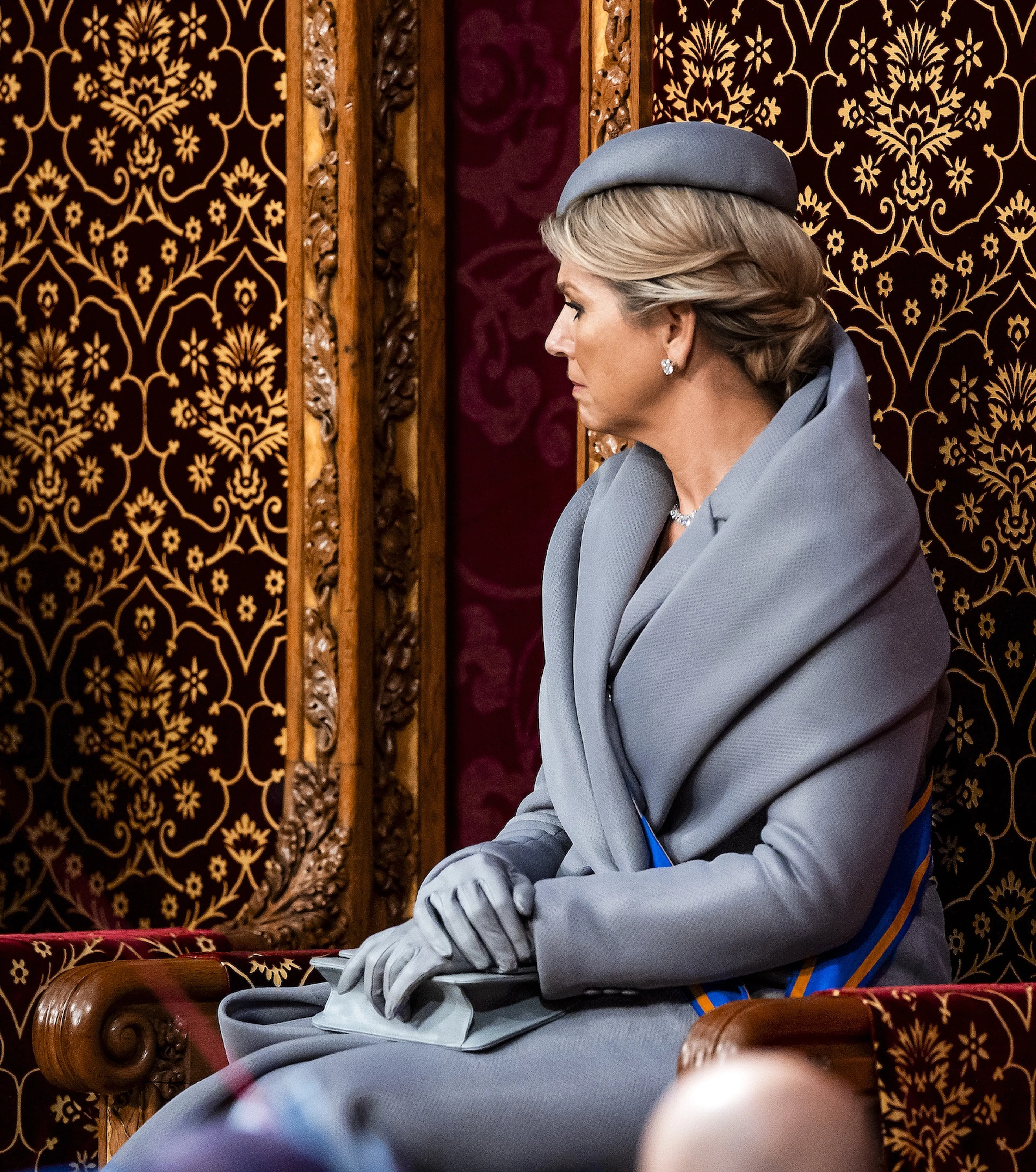 Koningin Máxima ging deze Prinsjesdag voor de kleur grijs. De ijsgrijze japonmantel met wikkelsjaal is gemaakt van air-mesh/neoprene met bijpassende hoed. De stof is gemaakt van gerecycled materiaal. De robe manteau is een ontwerp van Benchellal, een Nederlandse ontwerper met Marokkaanse roots. De koningin droeg het Ordelint en de Ster van het Grootkruis der Orde van de Nederlandse Leeuw.