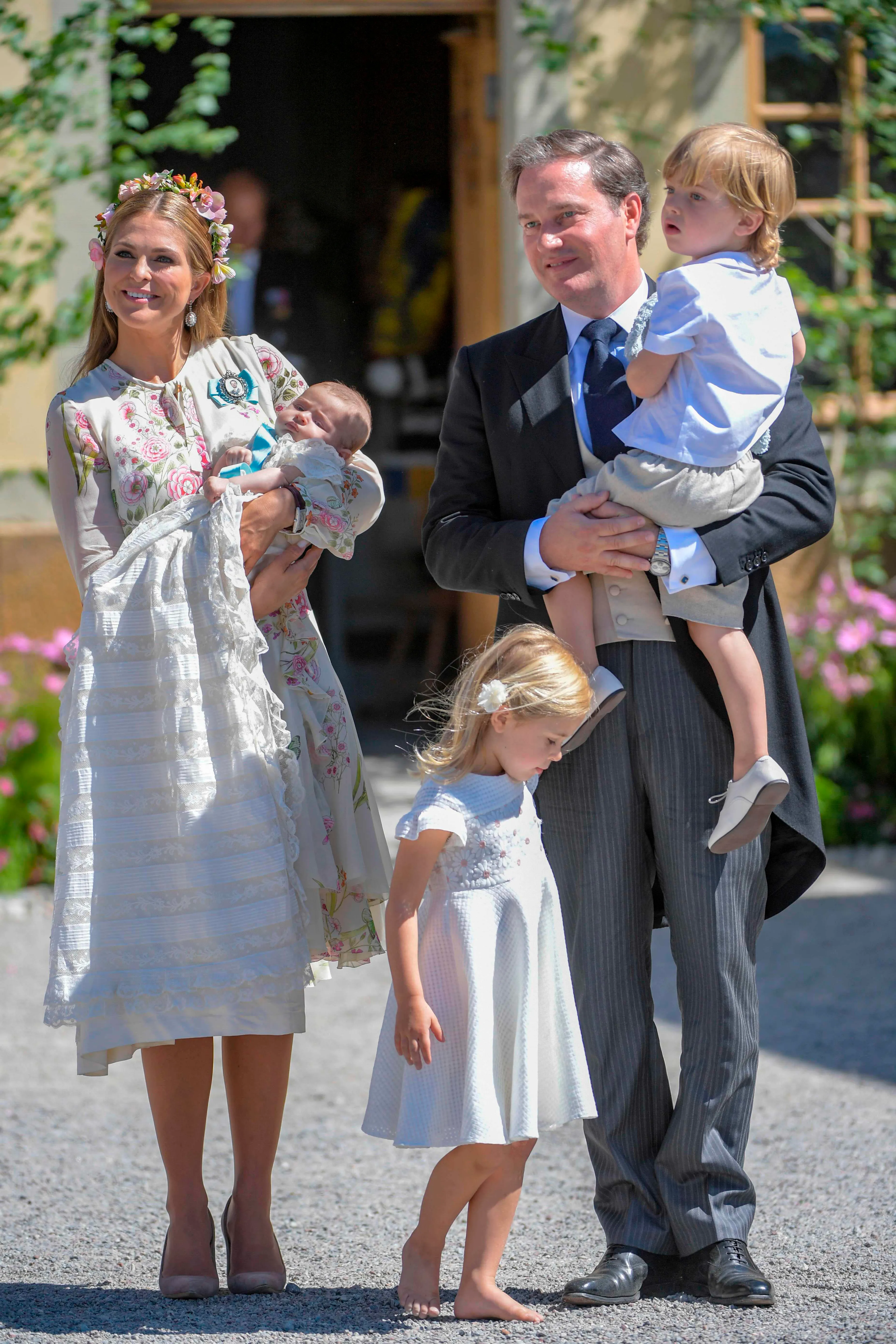 Na de ceremonie poseerde het gezin - met de vierjarige Leonore op blote voetjes - buiten bij de kapel. Daarna volgde er een receptie met lunch voor genodigden.