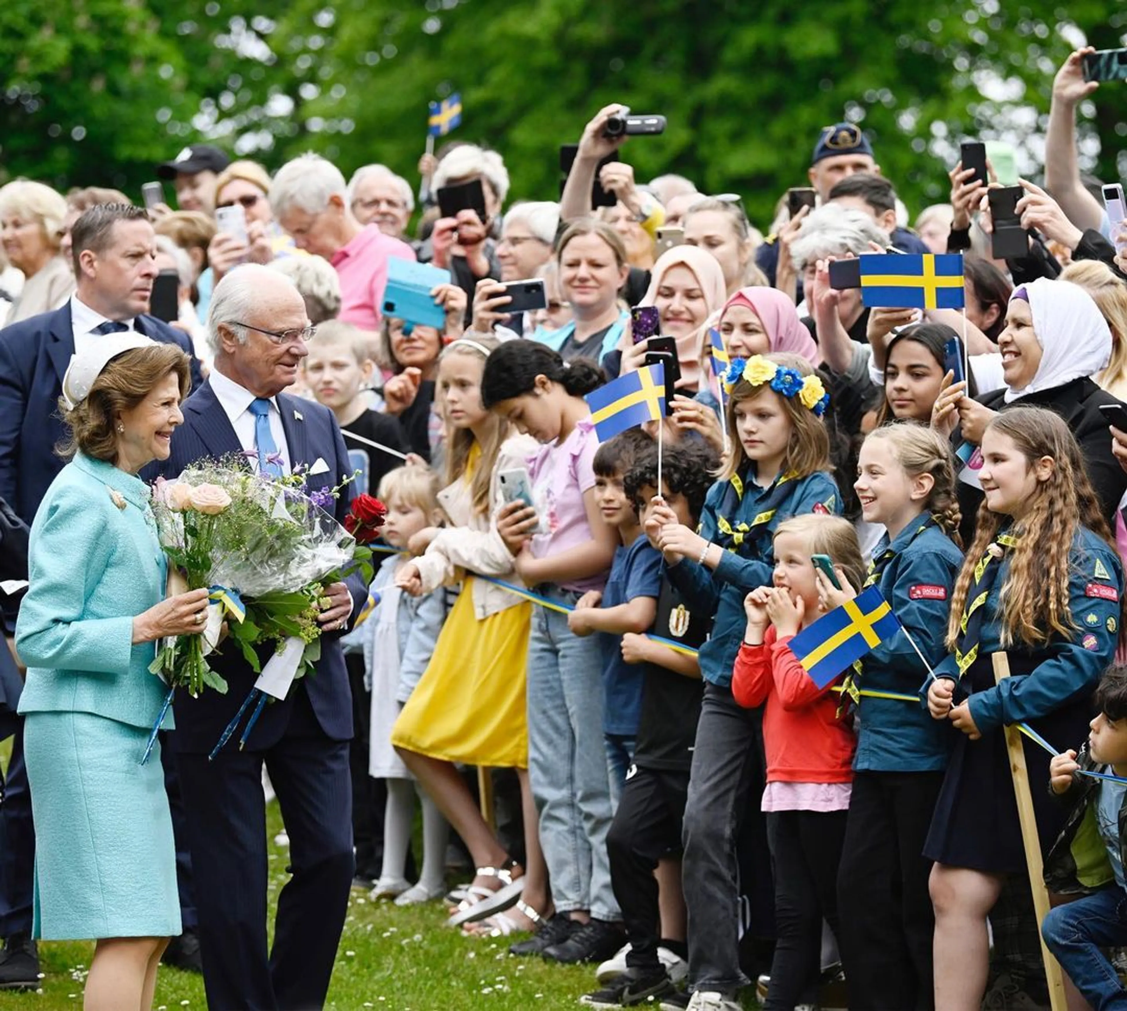 Het kroonprinselijk gezin verwelkomde maandagochtend lachend het Zweedse volk, dat ter ere van de nationale feestdag gratis een bezoek kon brengen aan het koninklijk paleis. De Zweden konden speciaal voor de gelegenheid de paleistuin en de bibliotheek bezoeken die normaal gesproken voor het publiek niet toegankelijk zijn.