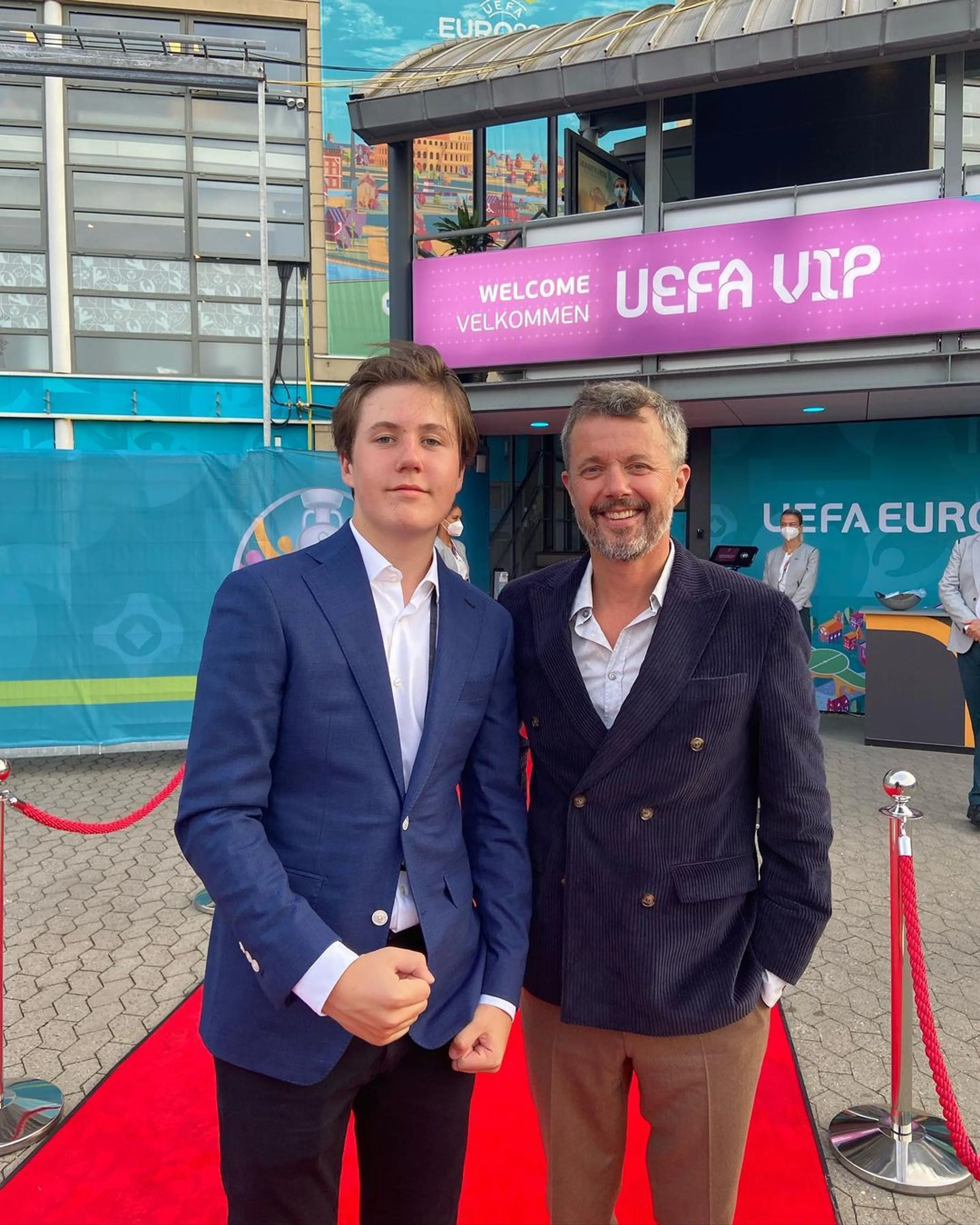 De Europese royals genieten massaal van het EK voetbal deze week. De Deense kroonprins Frederik en zijn oudste zoon, prins Christian, keken maandagavond naar de wedstrijd Denemarken-Rusland in Kopenhagen.
