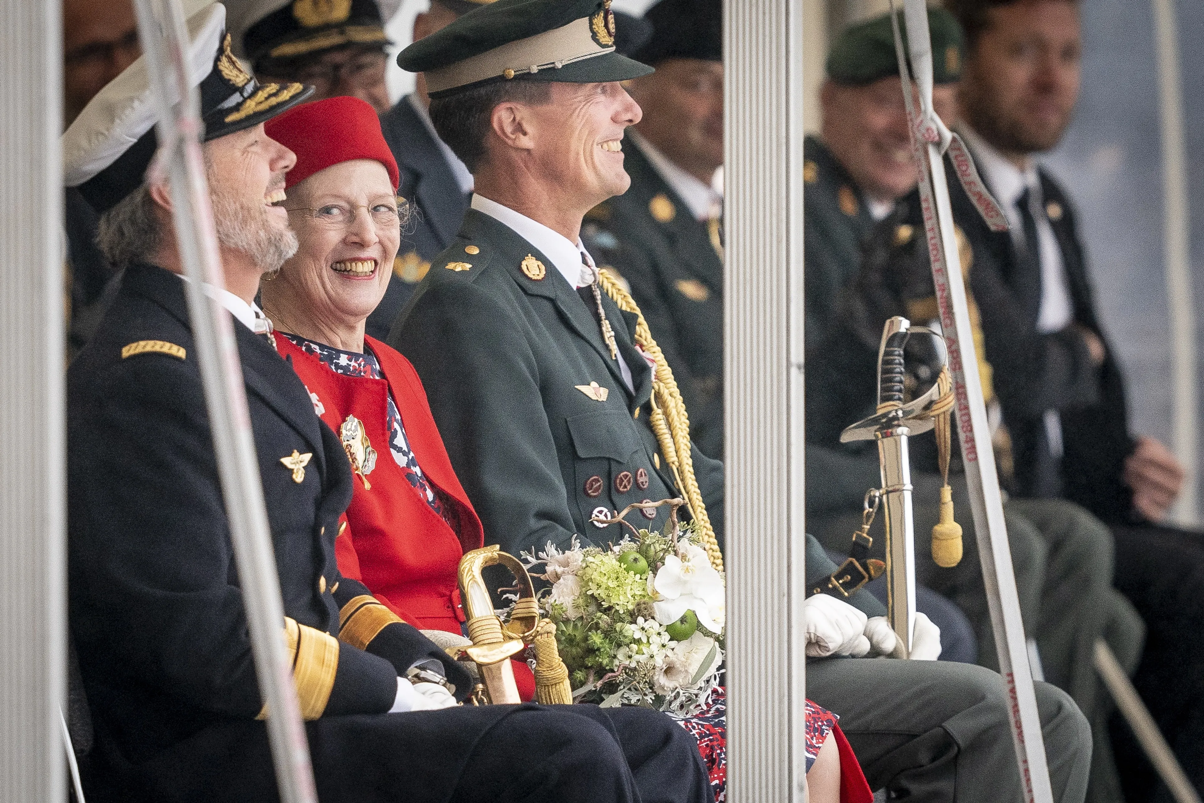 Het was een grote verrassing voor de koningin dat haar twee zoons, kroonprins Frederik en prins Joachim, deelnamen aan de militaire parade.