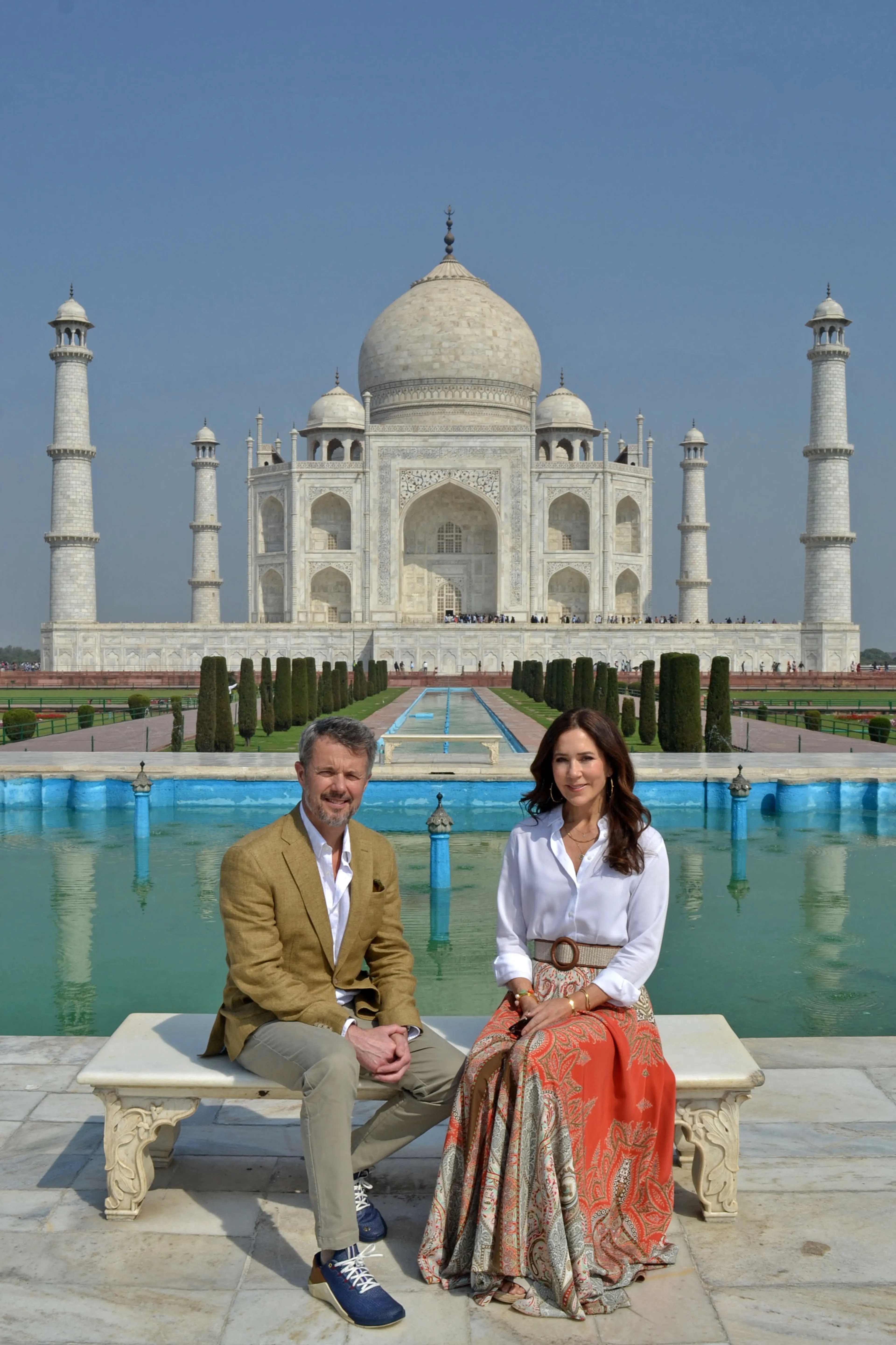 De Deense kroonprins Frederik en kroonprinses Mary hebben een bezoek gebracht aan de Taj Mahal in India, zo is te zien op een foto van het stel voor het wereldberoemde gebouw. Frederik en Mary brengen van zondag tot woensdag een officieel bezoek aan India.
