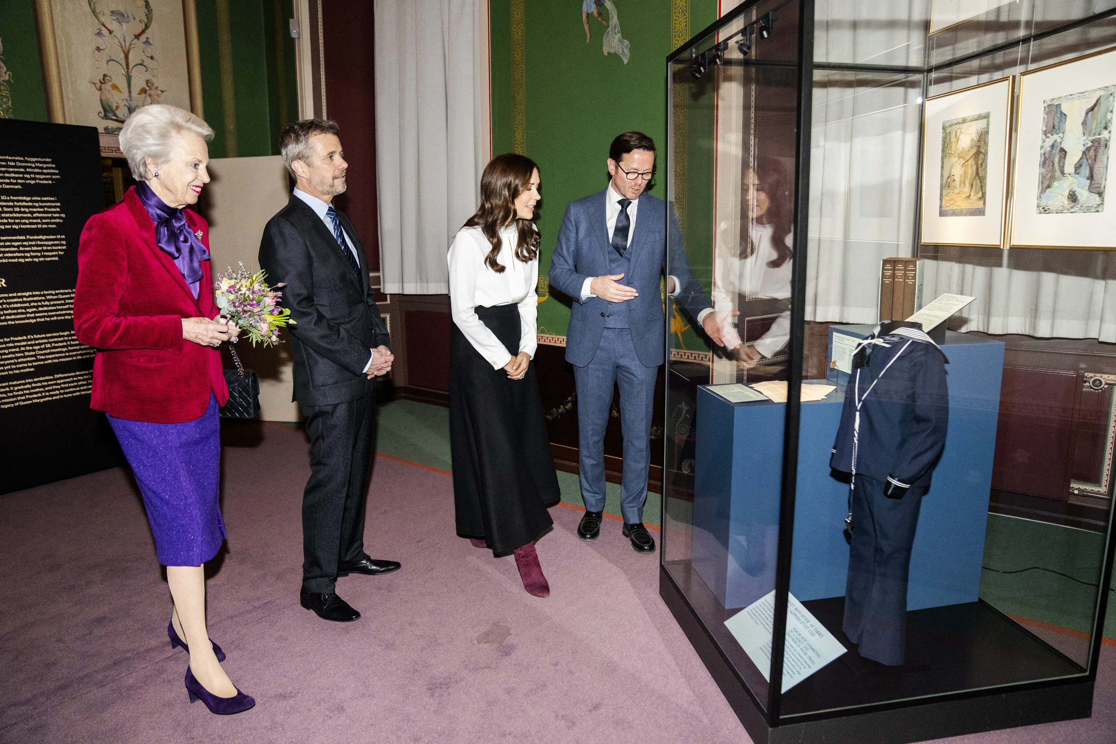 Koning Frederik en koningin Mary kwamen donderdag aan in het museum van Amalienborg in het paleis van Christian VIII (één van de vier paleizen van Amalienborg). De tante van koning Frederik, prinses Benedikte, was ook aanwezig bij de opening van de tentoonstelling.
