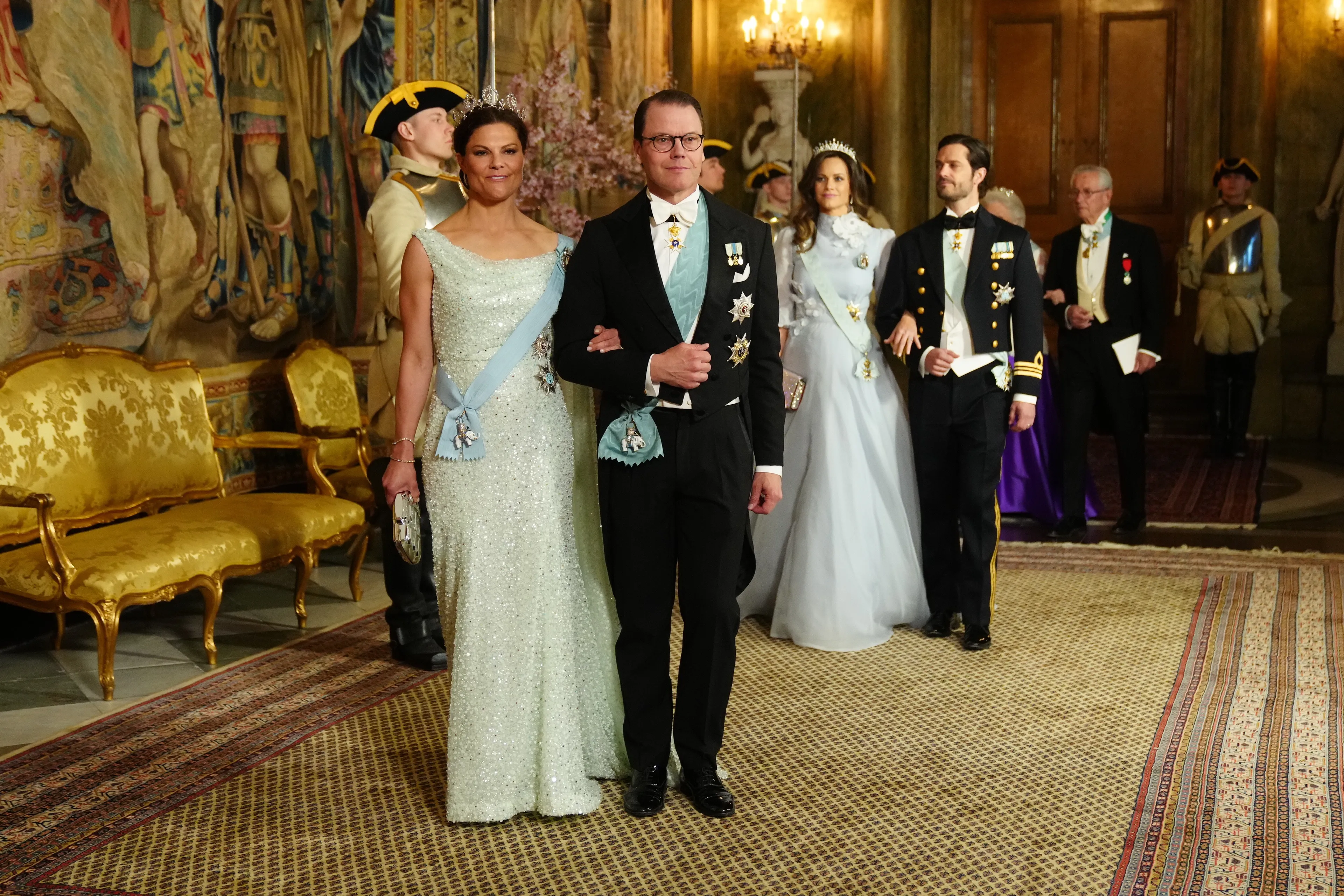 Tijdens het staatsbanket dineren Frederik en Mary met leden van de Zweedse koninklijke familie. Naast koning Carl Gustaf en koningin Silvia, schuiven ook kroonprinses Victoria en prins Daniel aan. Evenals prins Carl Philip en prinses Sofia. De gasten verschijnen geheel volgens protocol in galakleding, kijk maar!