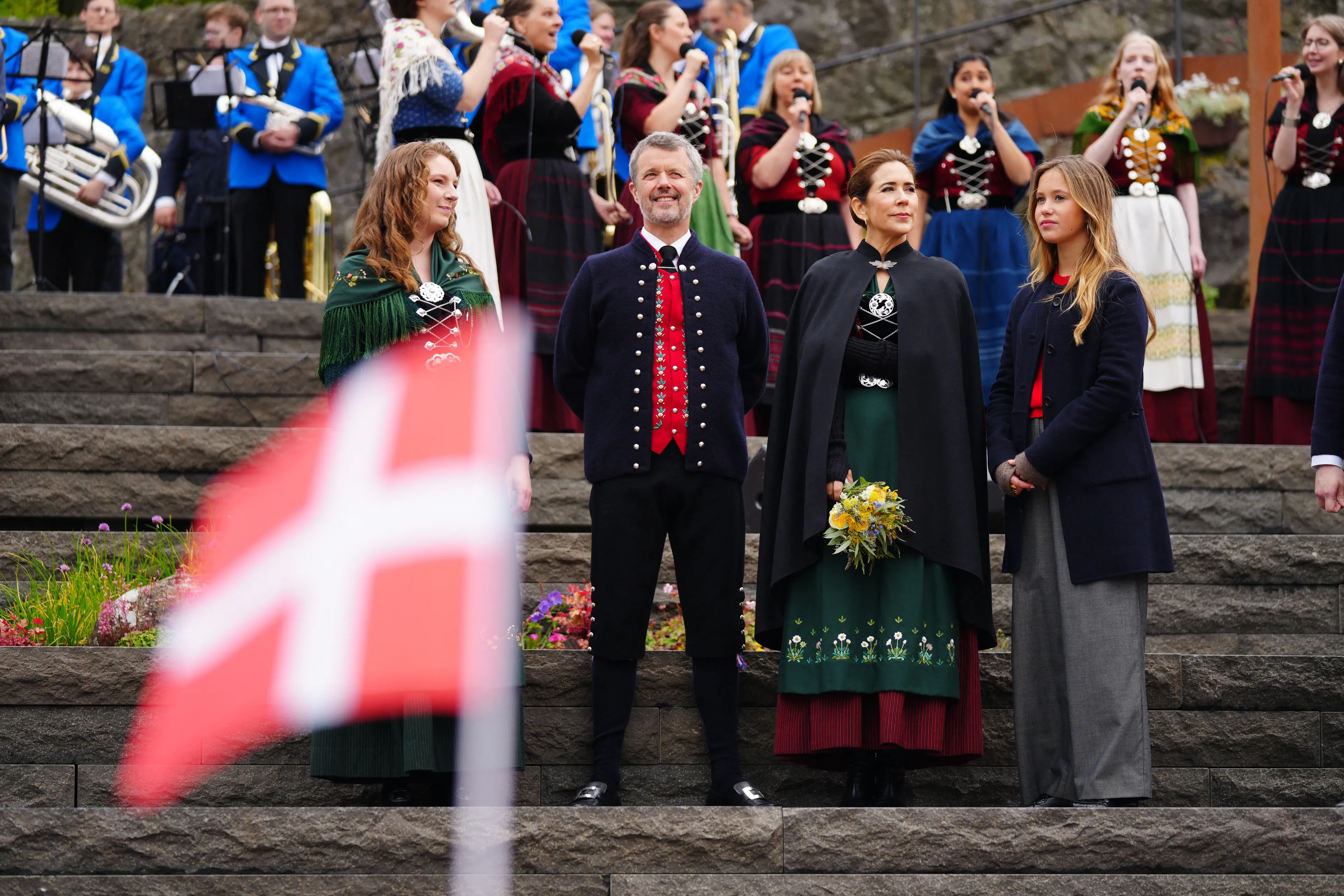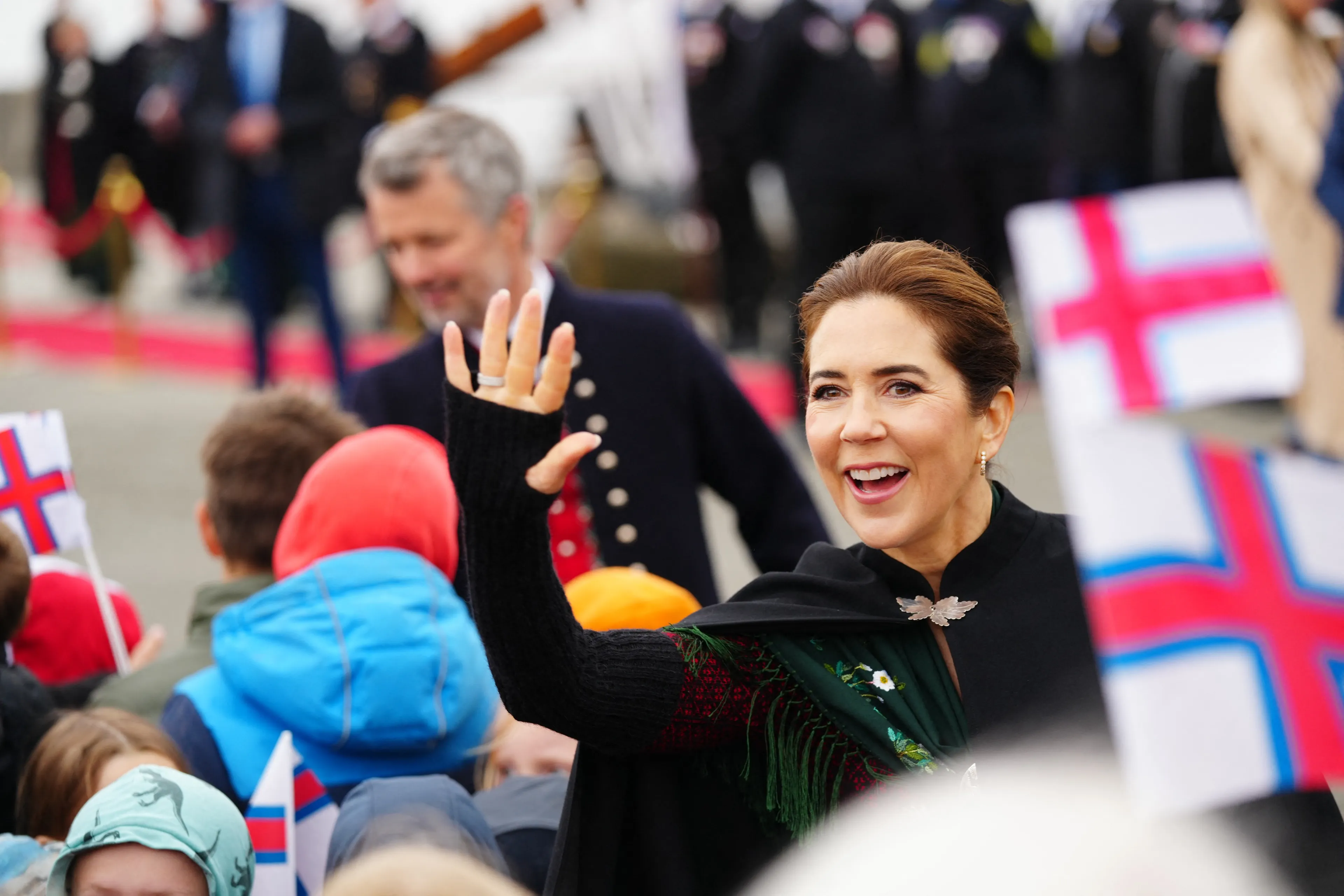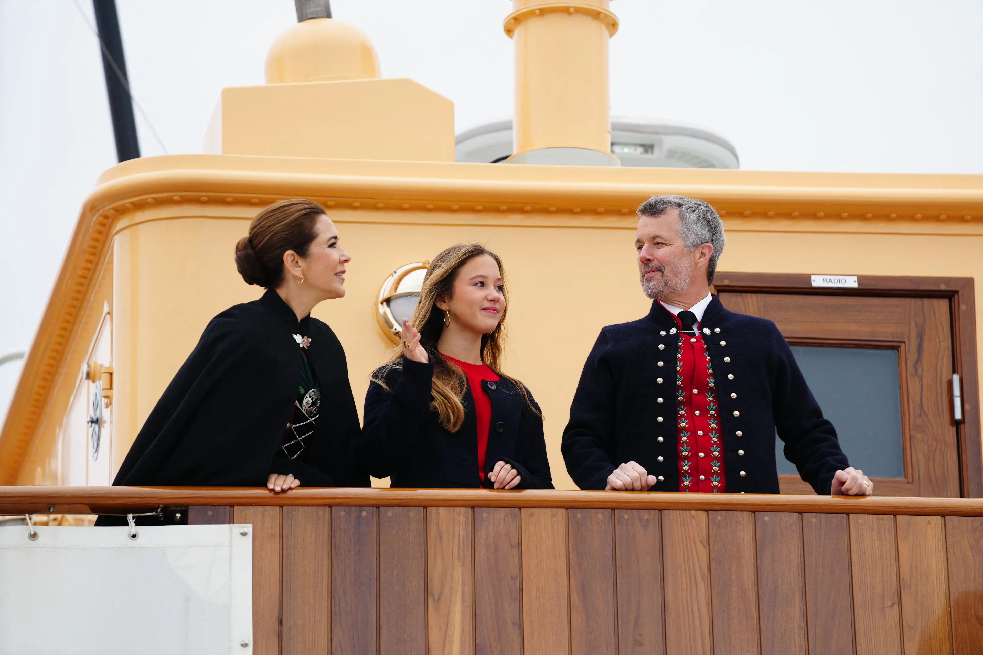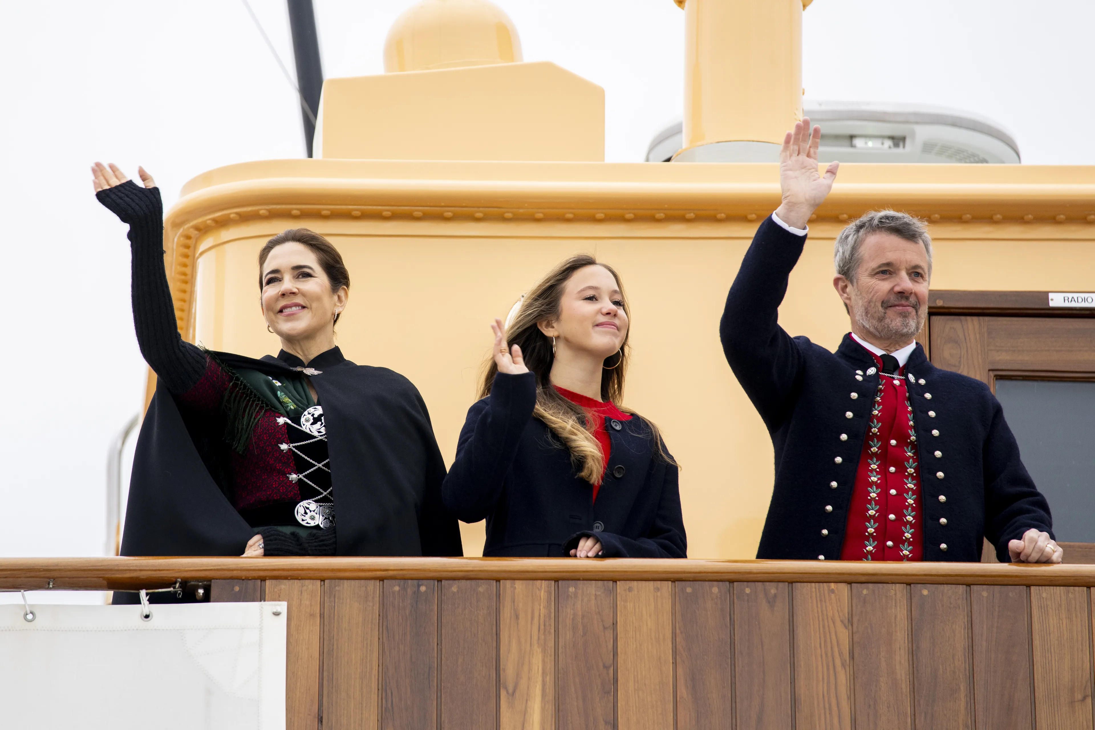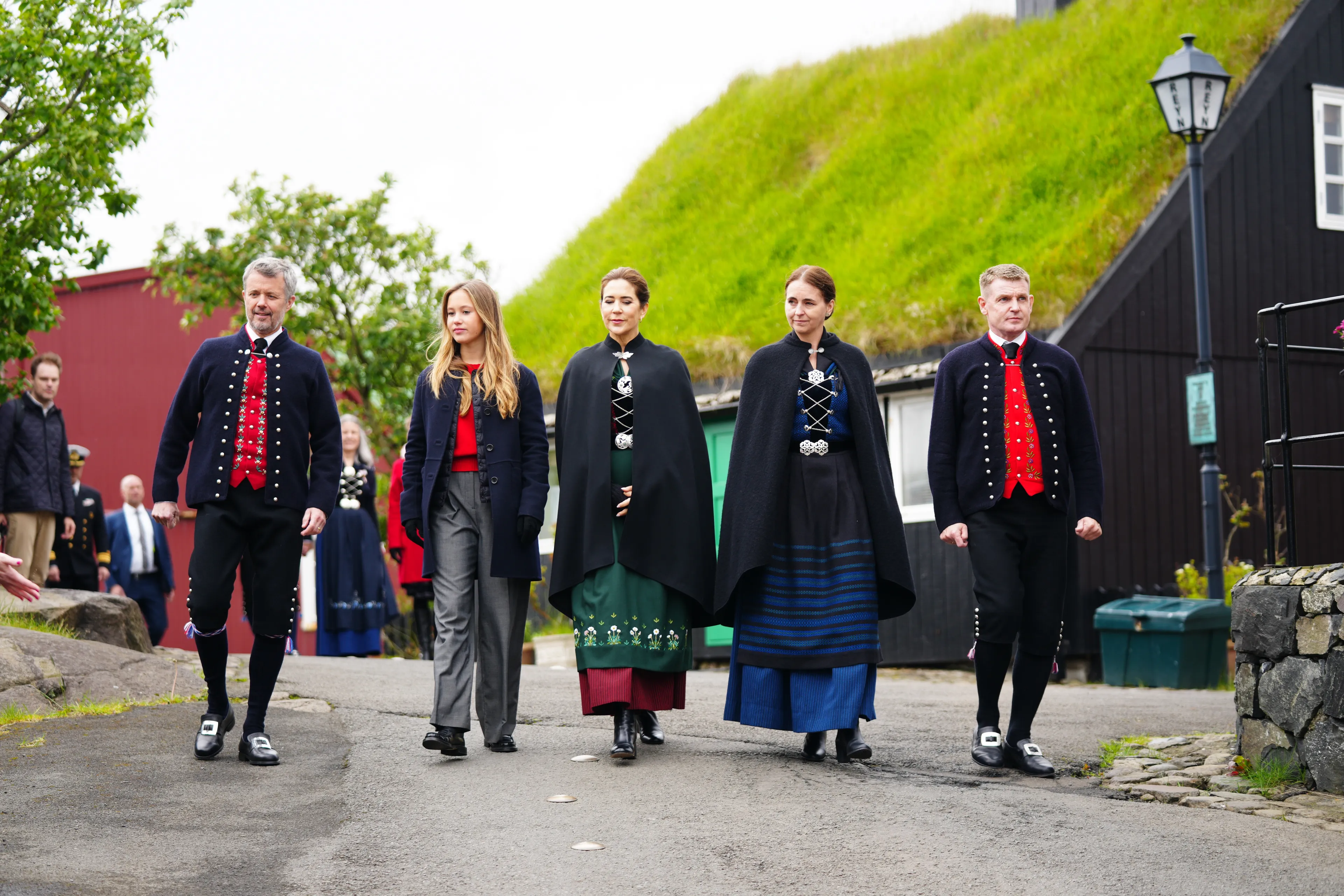 Met het koninklijke schip de Dannebrog arriveerde het drietal woensdag op de Faeröer in hoofdstad Tórshavn. Koning Frederik en koningin Mary waren gekleed in traditionele kleding en zwaaiden met hun dochter vanaf het dek naar het publiek op de kade. Eenmaal aan land, nam het drietal de tijd om de lokale bevolking te ontmoeten. Het is gebruikelijk dat de koning en koningin de nationale klederdracht dragen van de eilandengroep, dit schrijft de traditie immers voor. "Het maken van een compleet kostuum kan enkele maanden tot een heel jaar duren", zo meldt het hof op social media.
