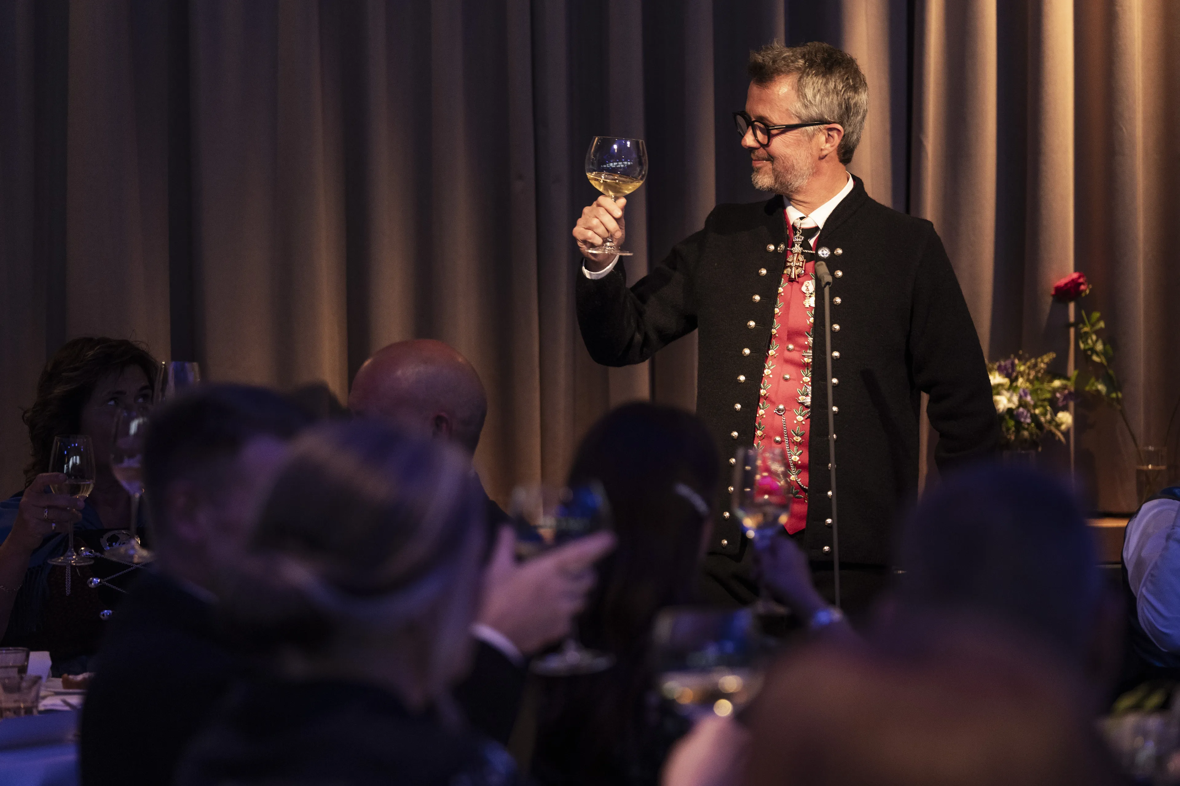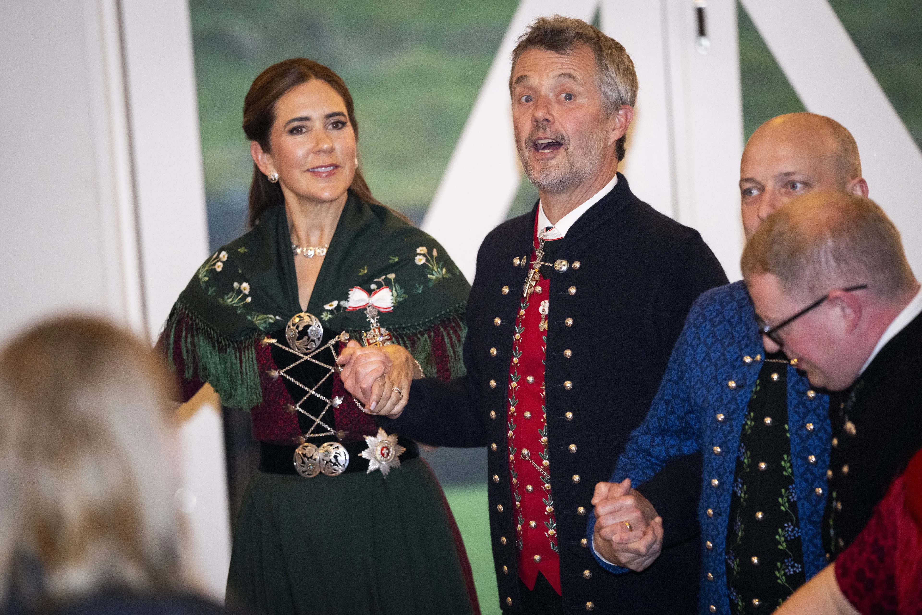 Woensdagavond vertelde Frederik iets over zijn eigen herinneringen aan de eilandengroep. "Ik was tien jaar oud toen ik voor het eerst de eilanden meemaakte met mijn ouders en broer. Met de nationale klederdracht aan en een flinke dosis verlegenheid. Ik was vanaf het allereerste begin geboeid", zei Frederik. Er werd die avond ook volop gedanst. Frederik en Mary waagden zich aan de traditionele dans van de Faeröer.