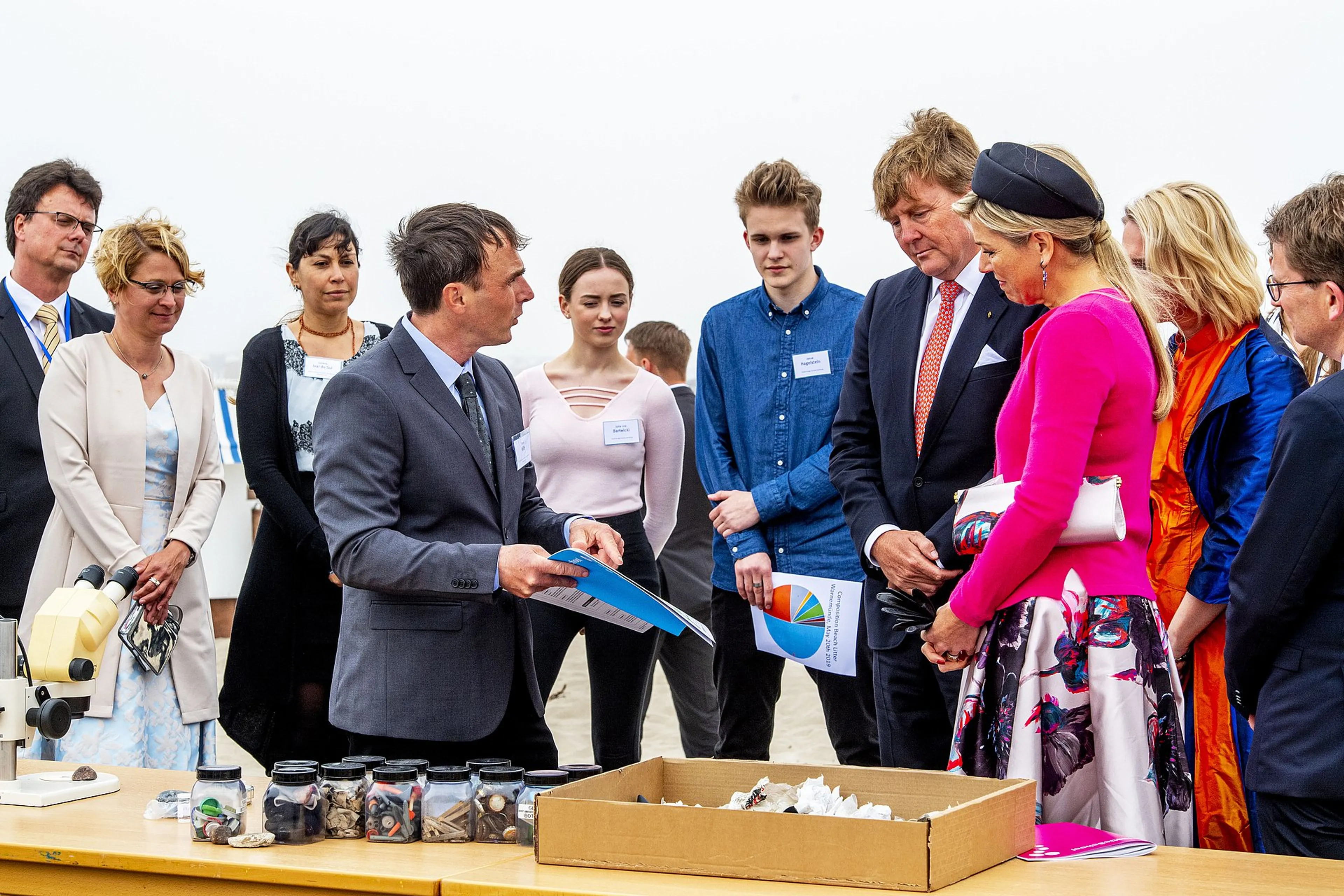 In de populaire badplaats bezochten Willem-Alexander en Máxima het vooraanstaande Leibnitz Instituut voor Oostzee-onderzoek (IOW), dat zich onder meer richt op de vervuiling van de kust en zee door macro- en microplastic.